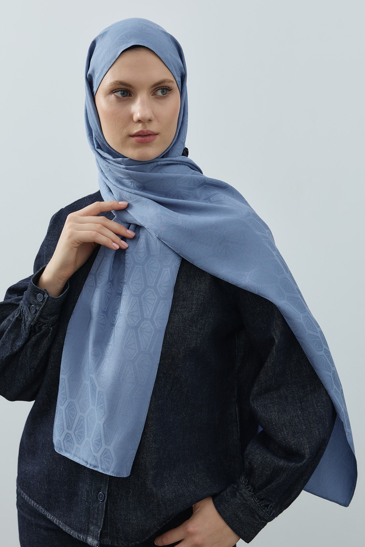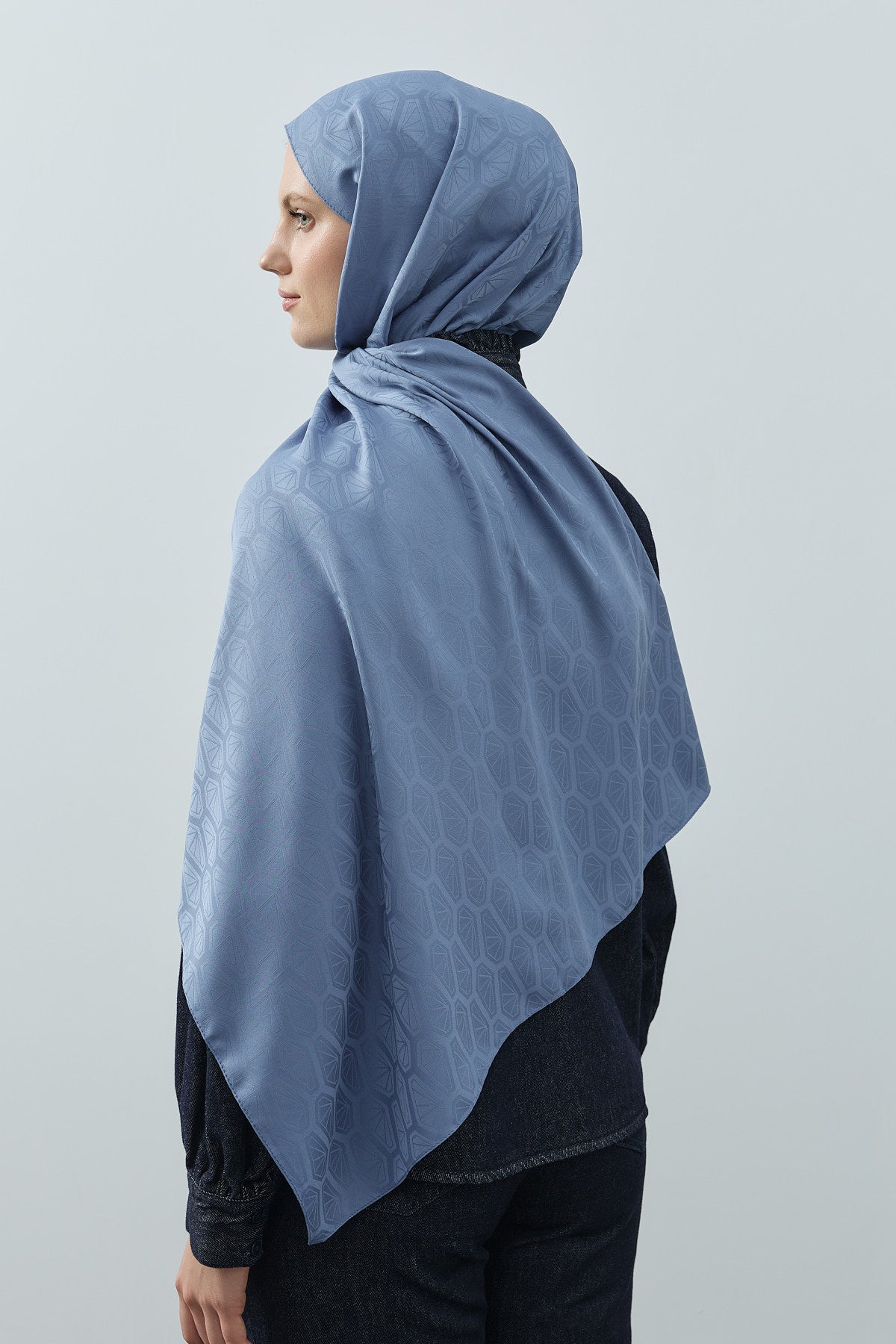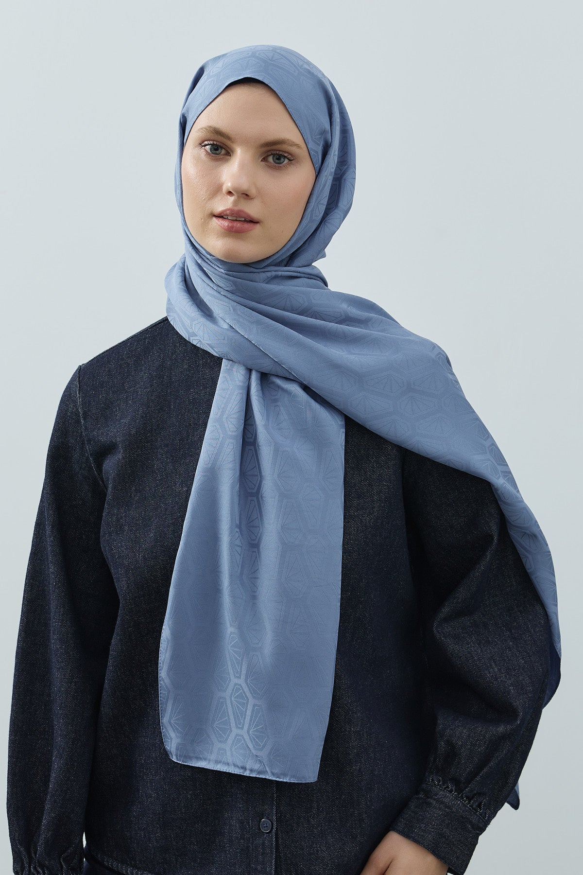 Elmas Desen İpeksi Jakar Şal Mavi Elmas Desen İpe...
