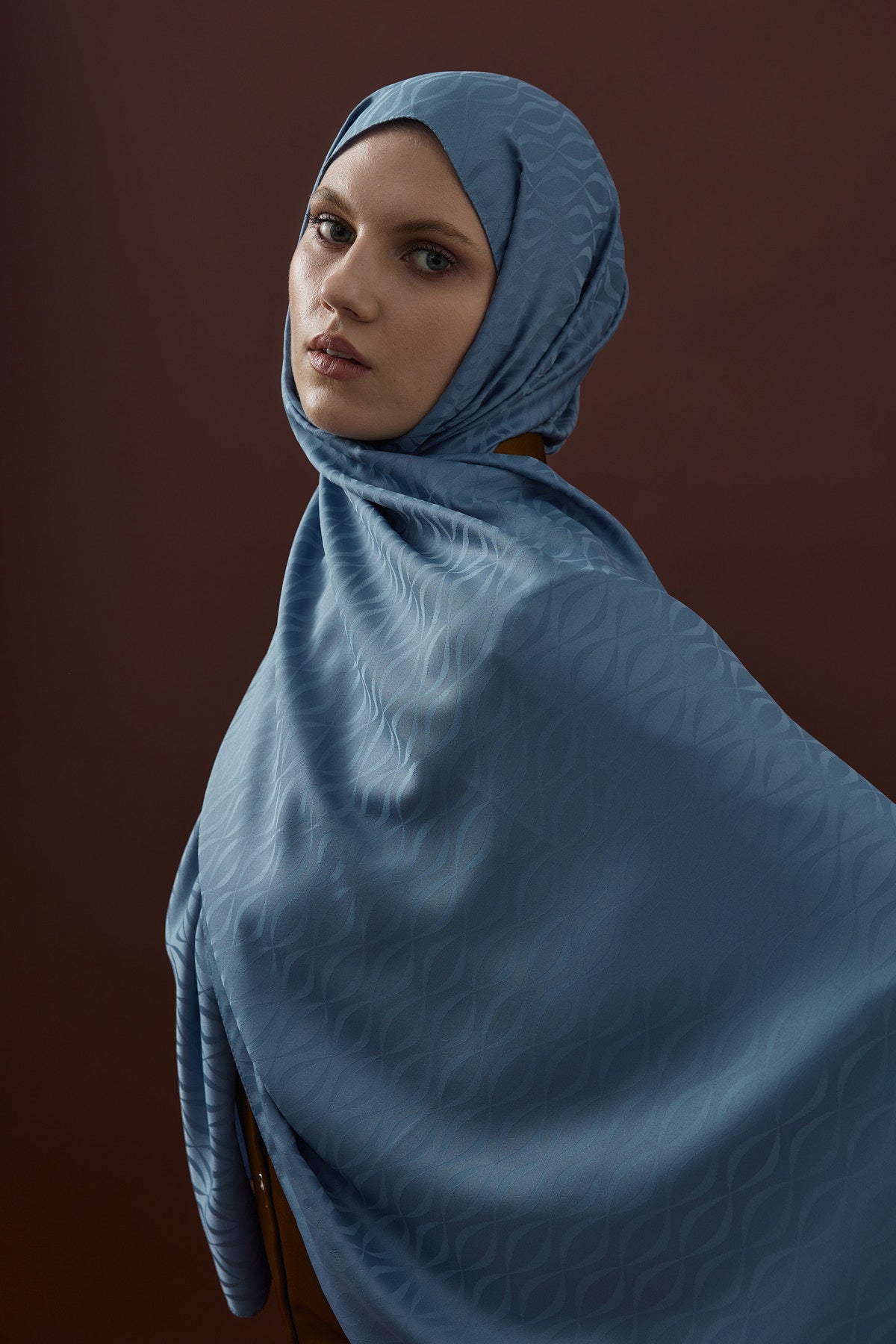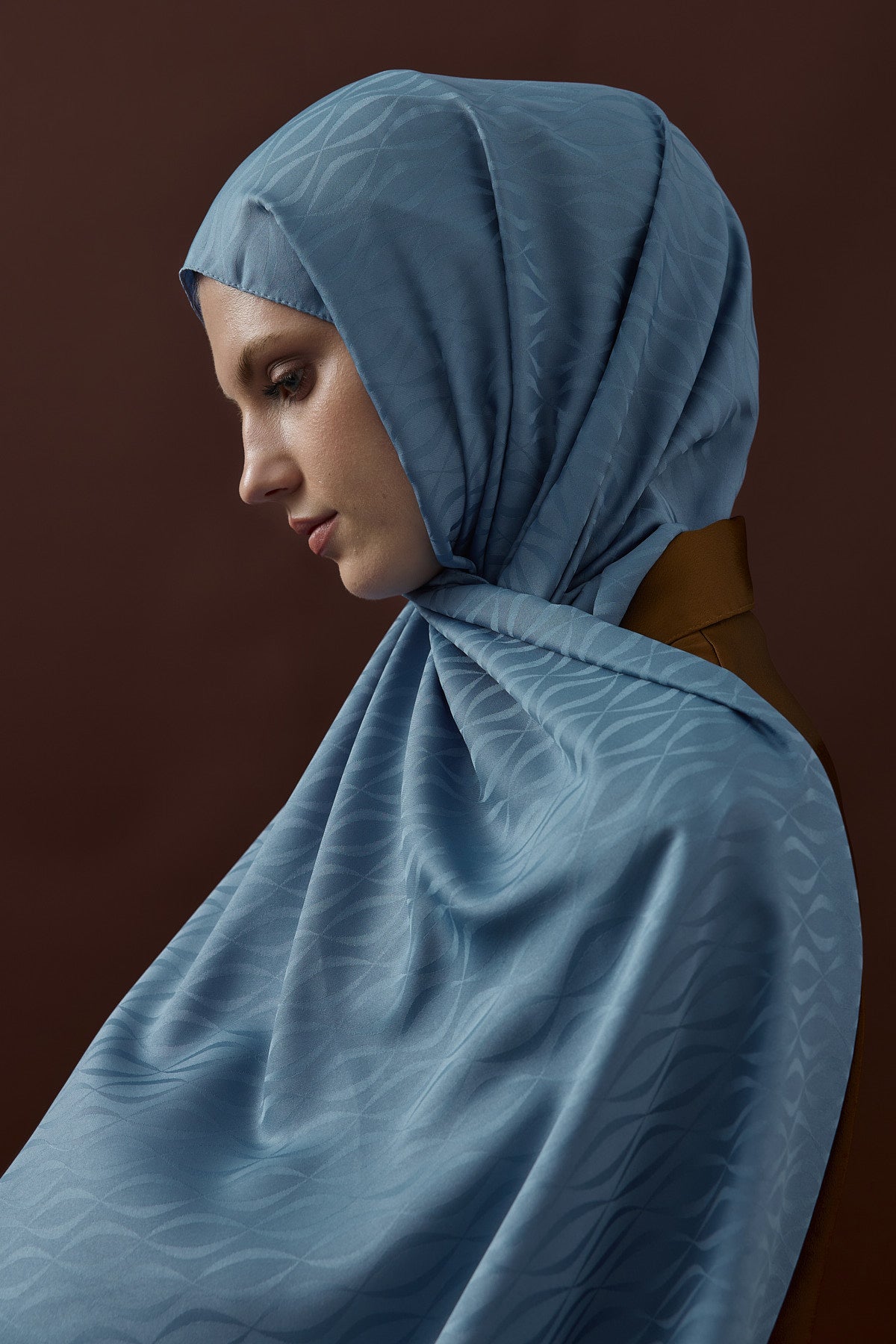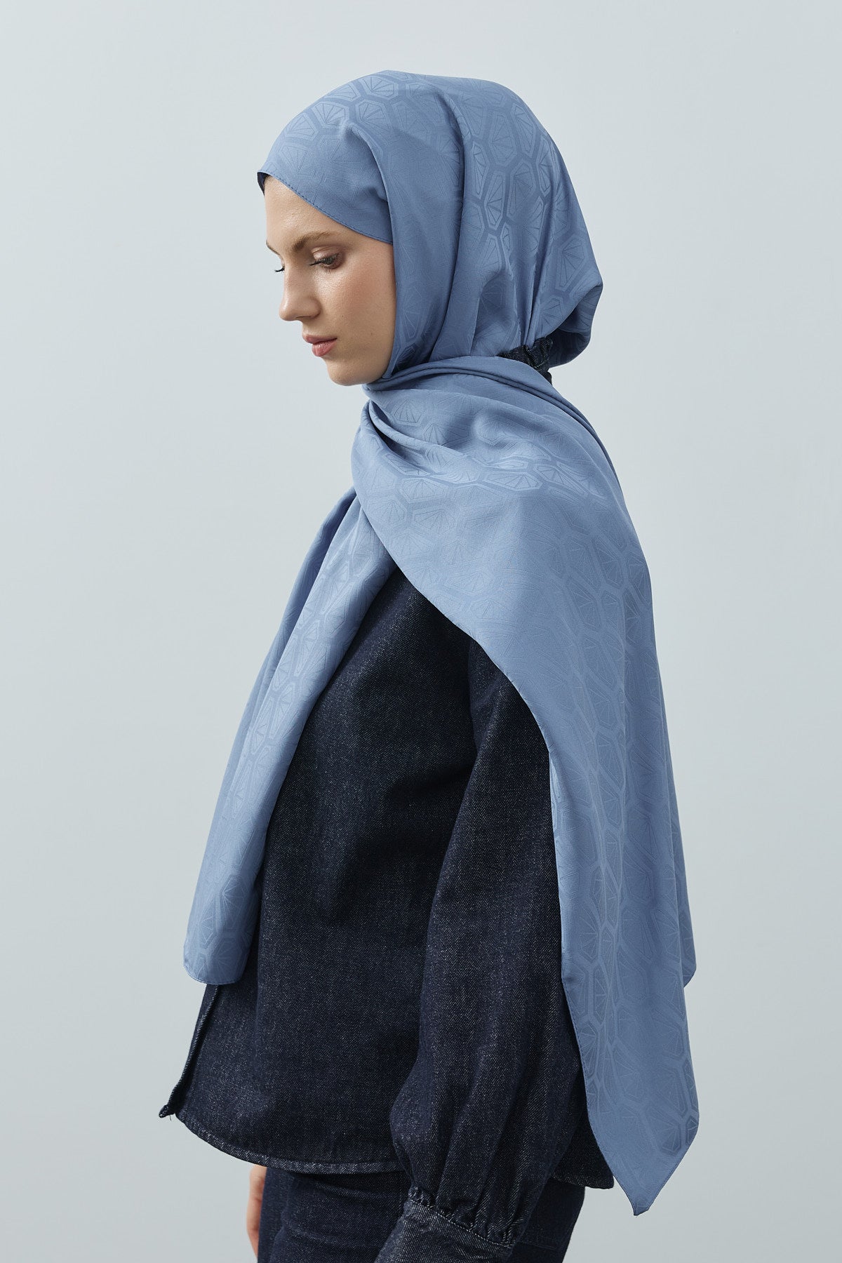 Elmas Desen İpeksi Jakar Şal Mavi Elmas Desen İpe...