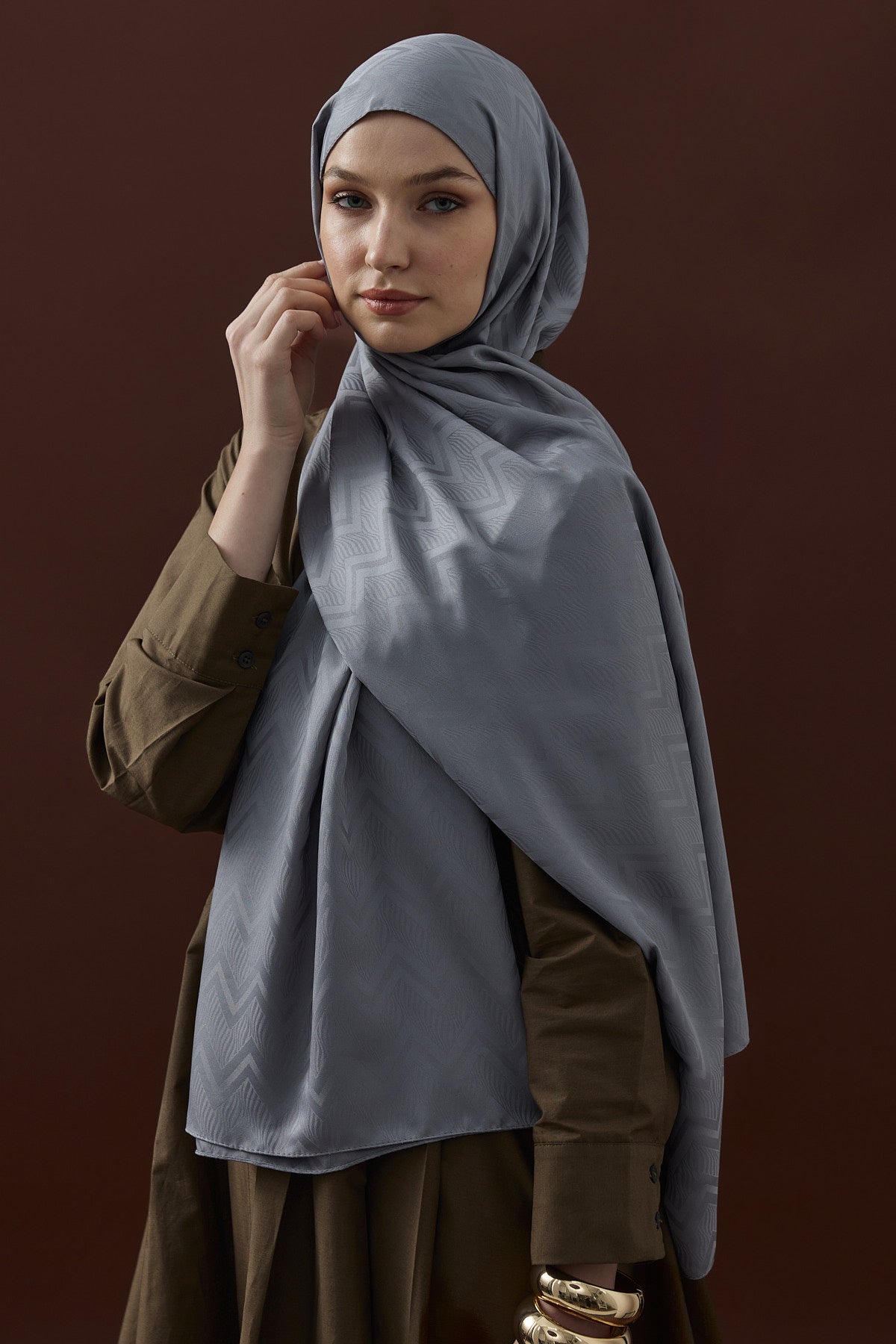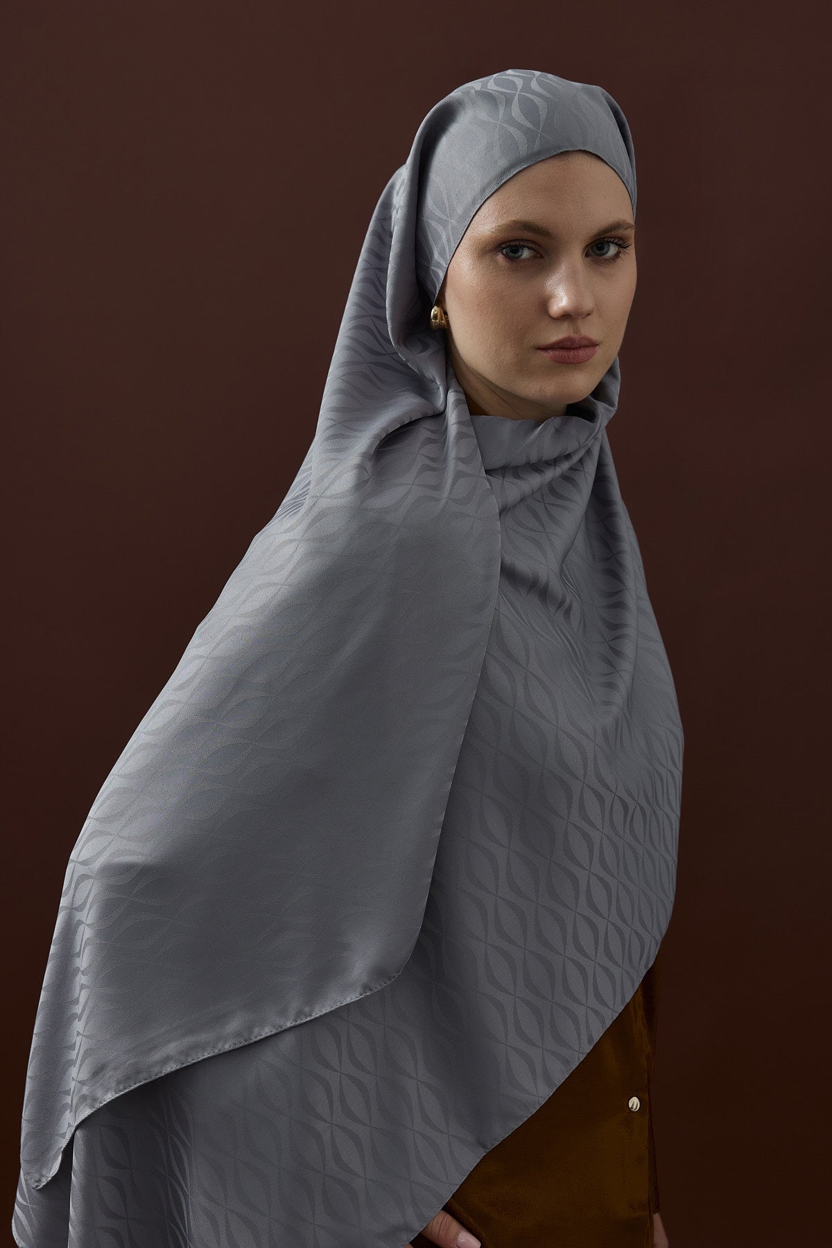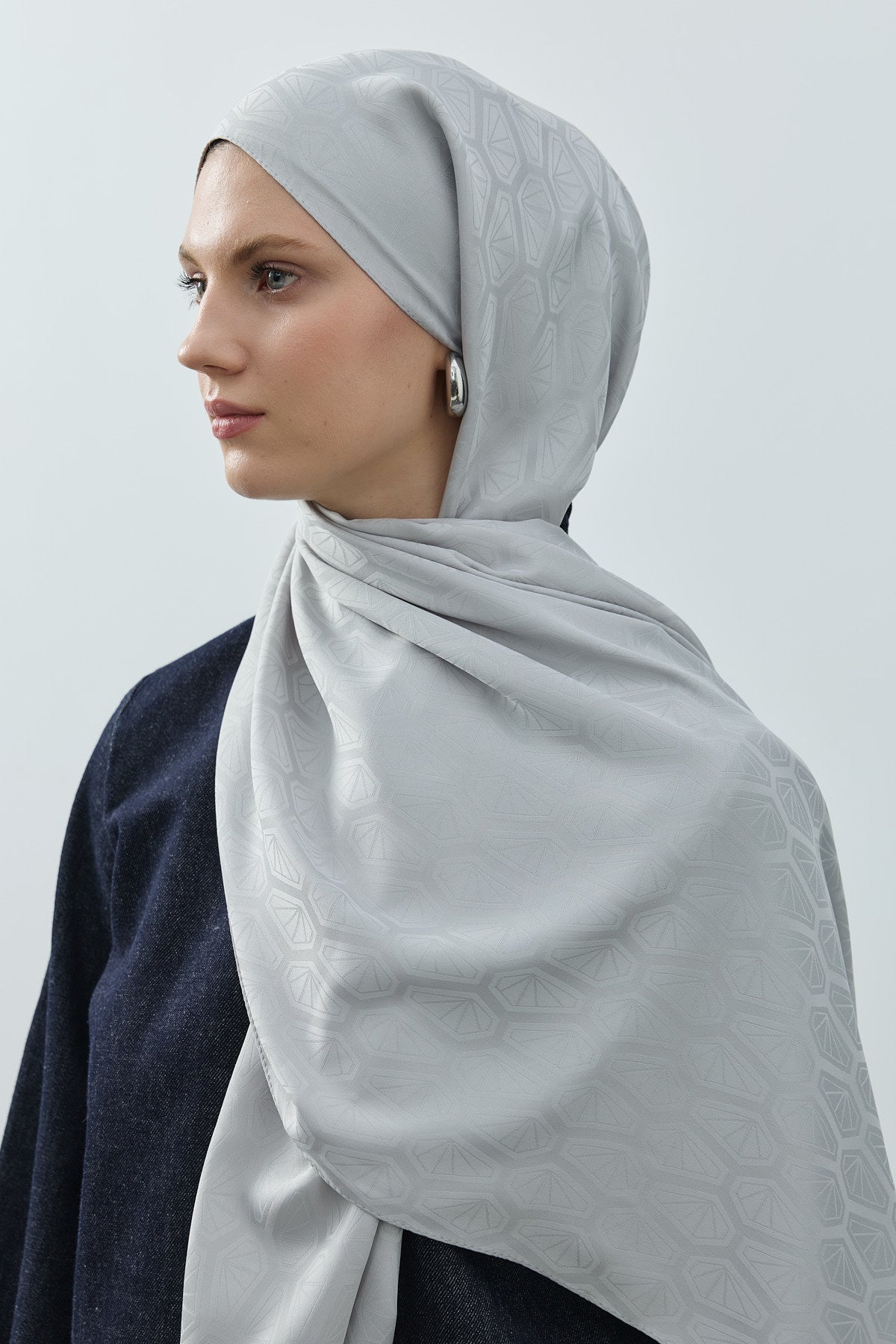 Elmas Desen İpeksi Jakar Şal Gümüş Gri Elmas Desen İpe...