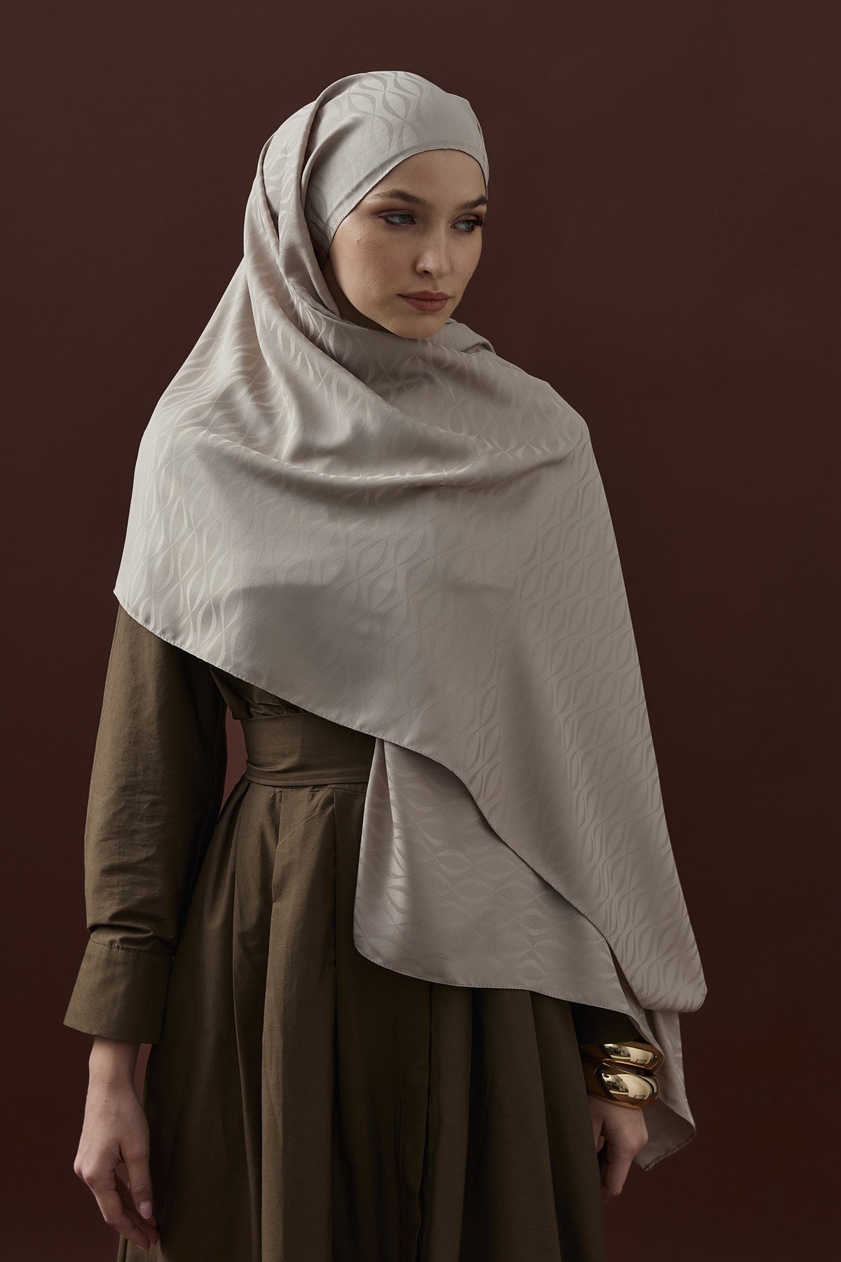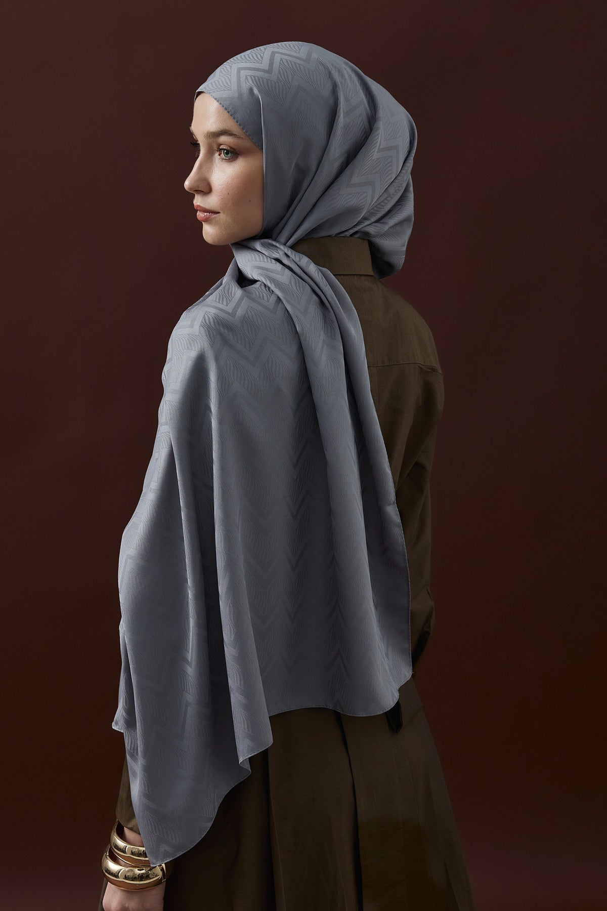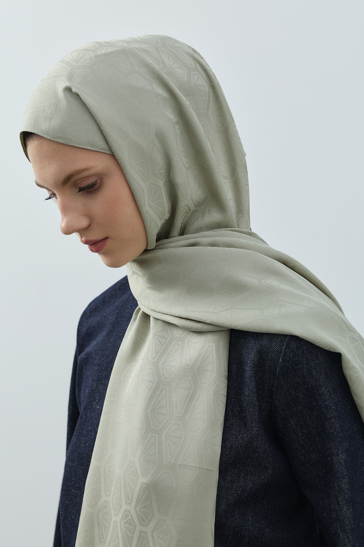 Elmas Desen İpeksi Jakar Şal Gümüş Gri Elmas Desen İpe...