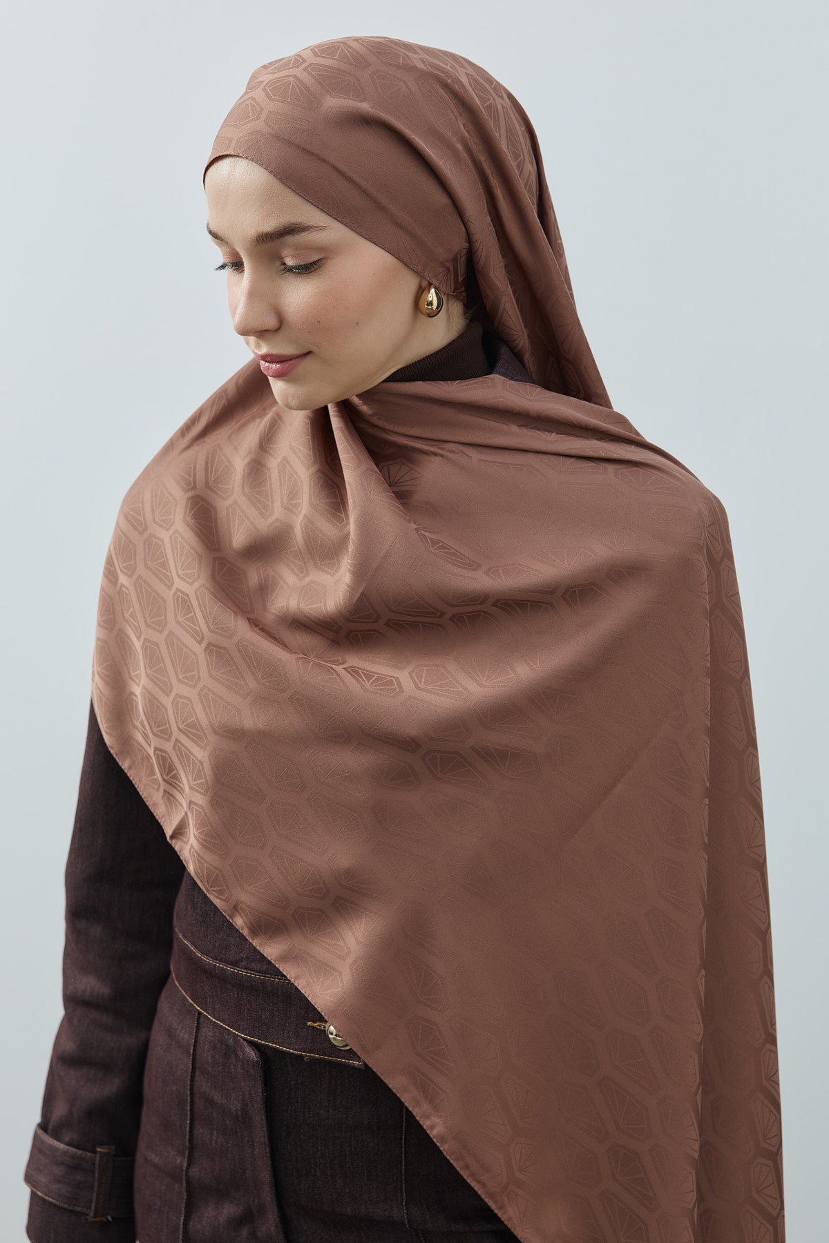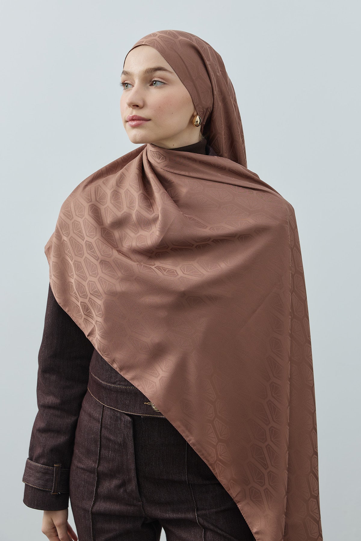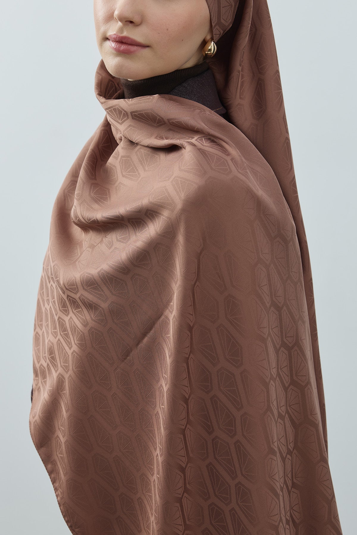 Elmas Desen İpeksi Jakar Şal Çikolata Kahve Elmas Desen İpe...
