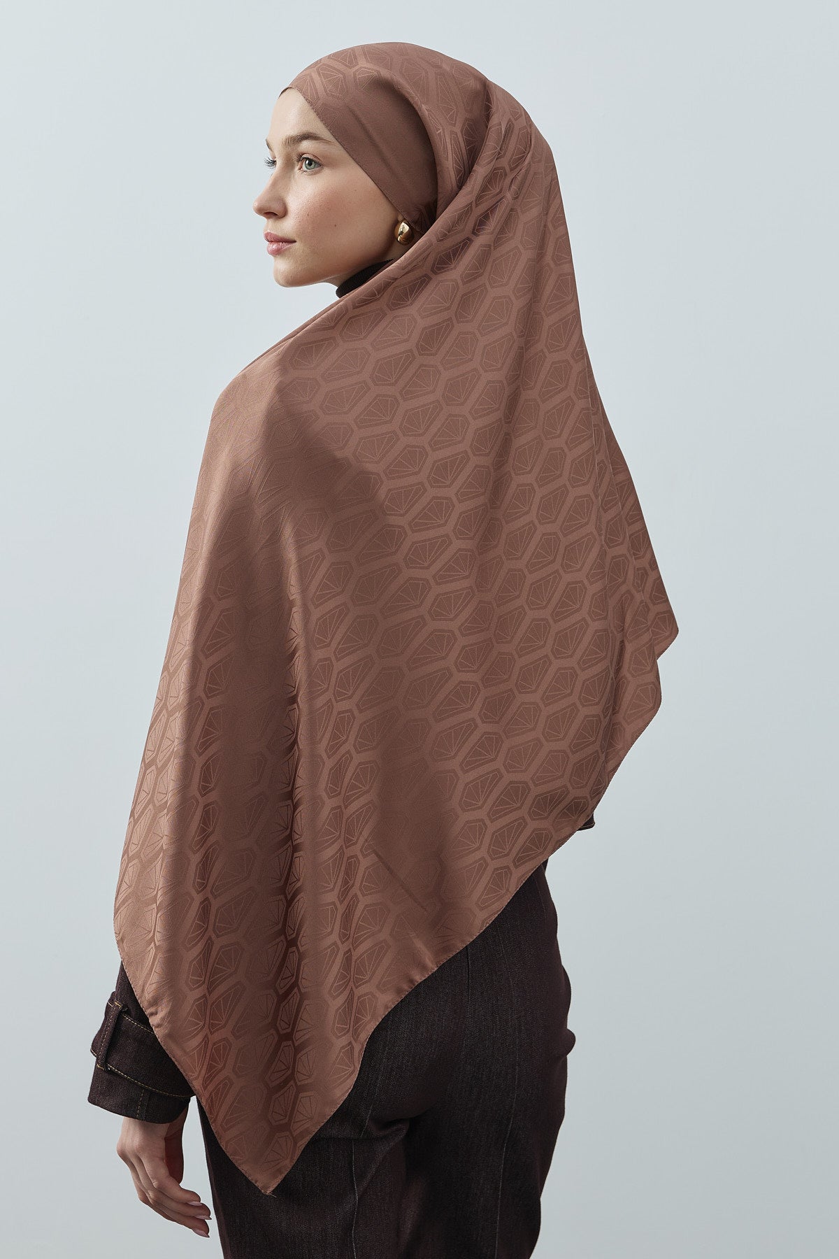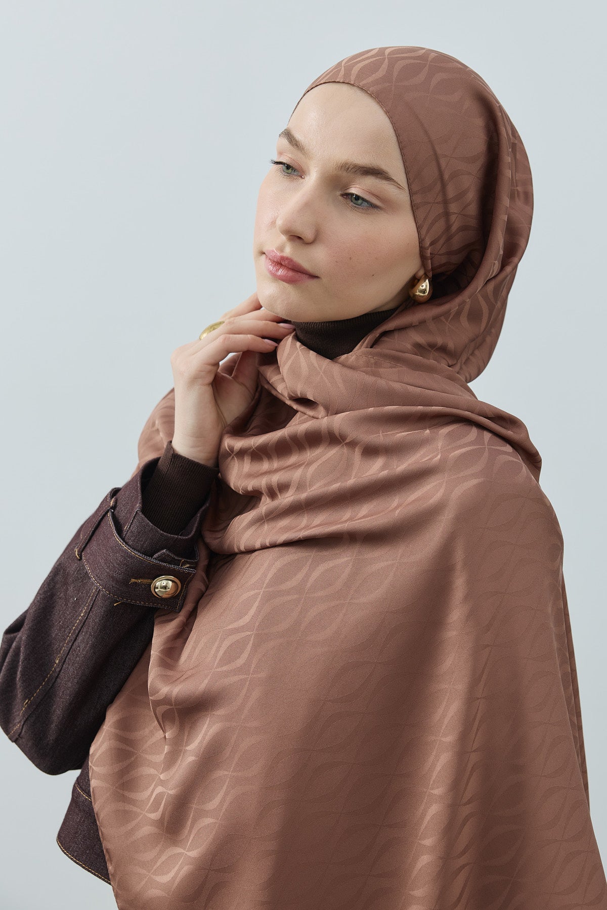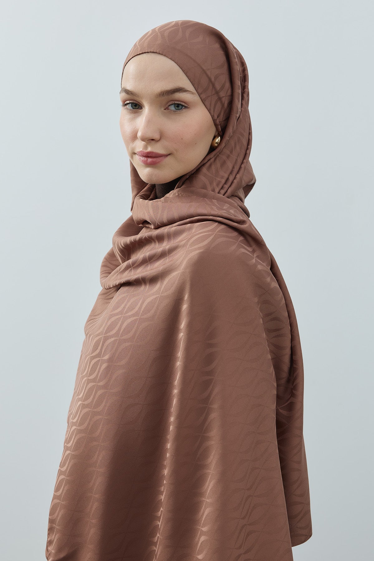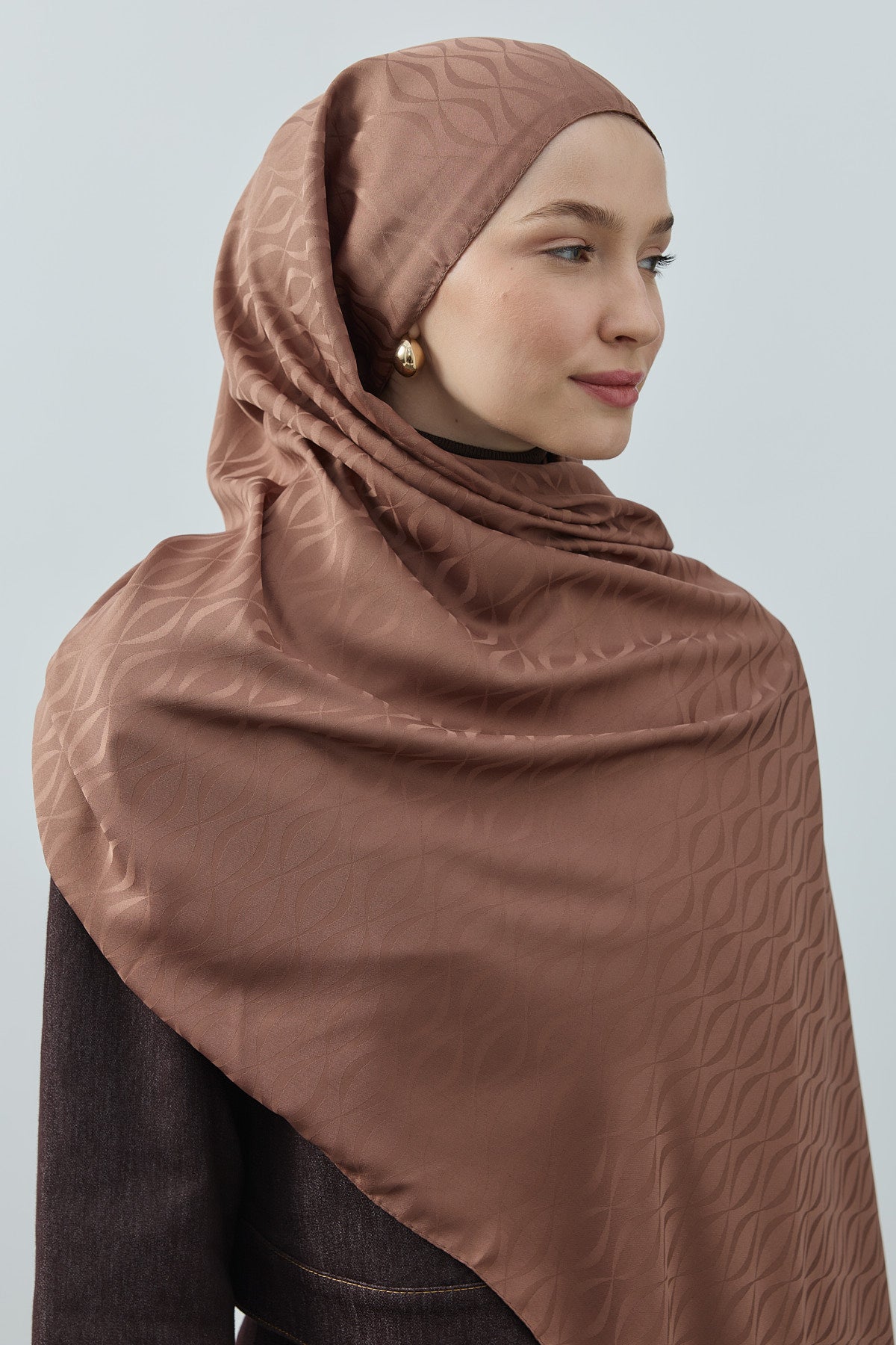Elmas Desen İpeksi Jakar Şal Çikolata Kahve Elmas Desen İpe...