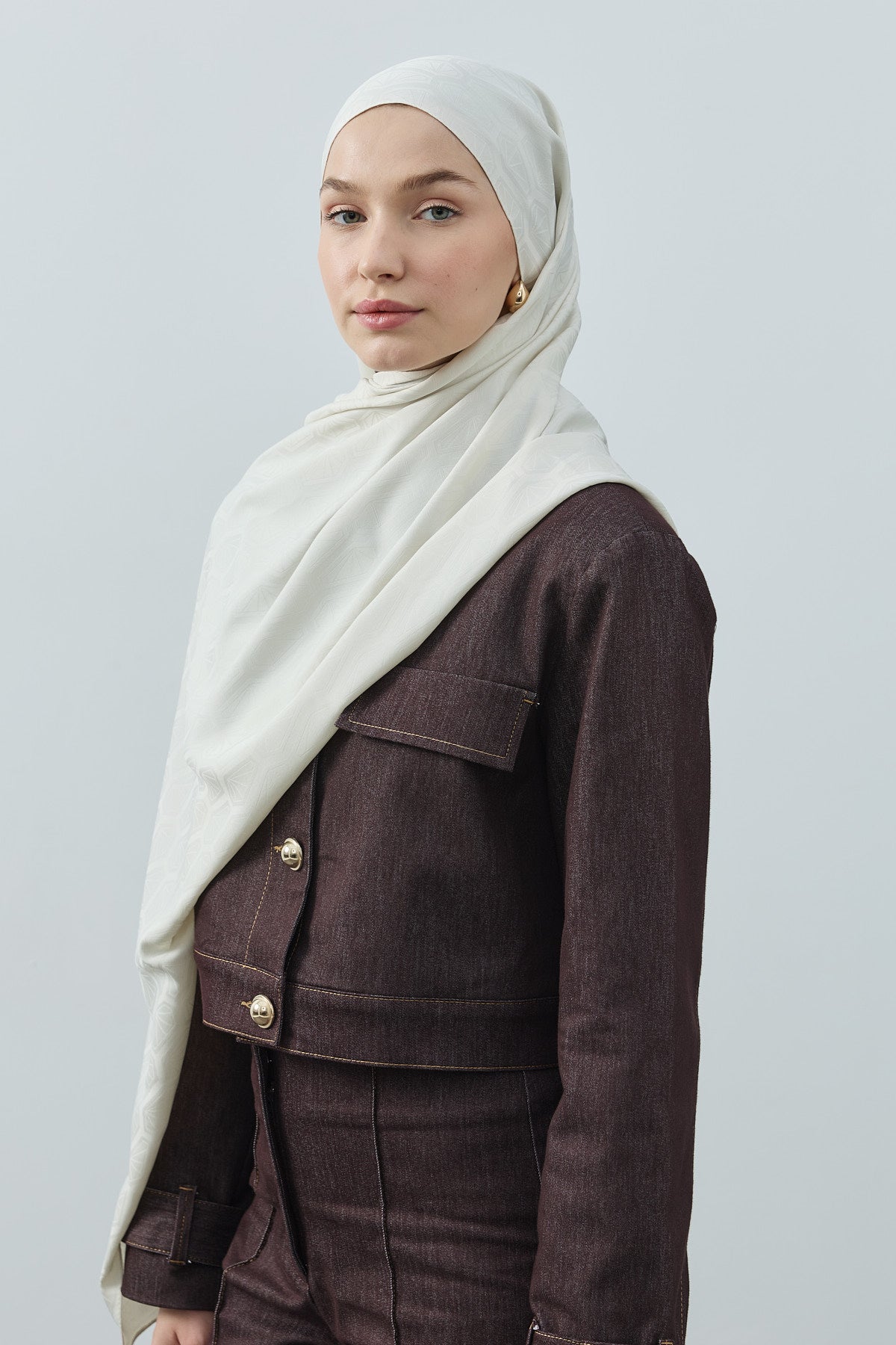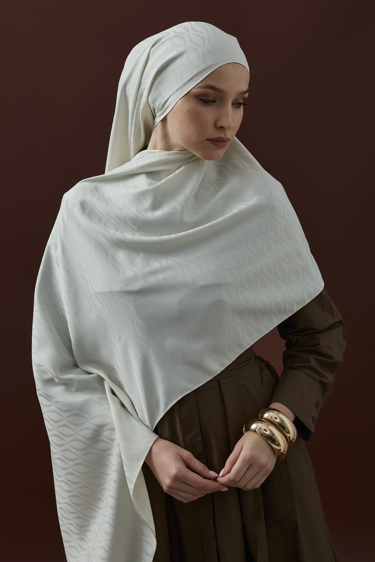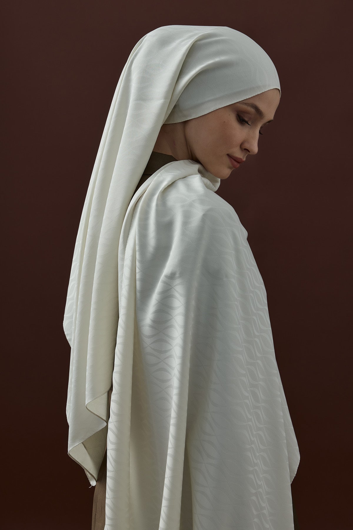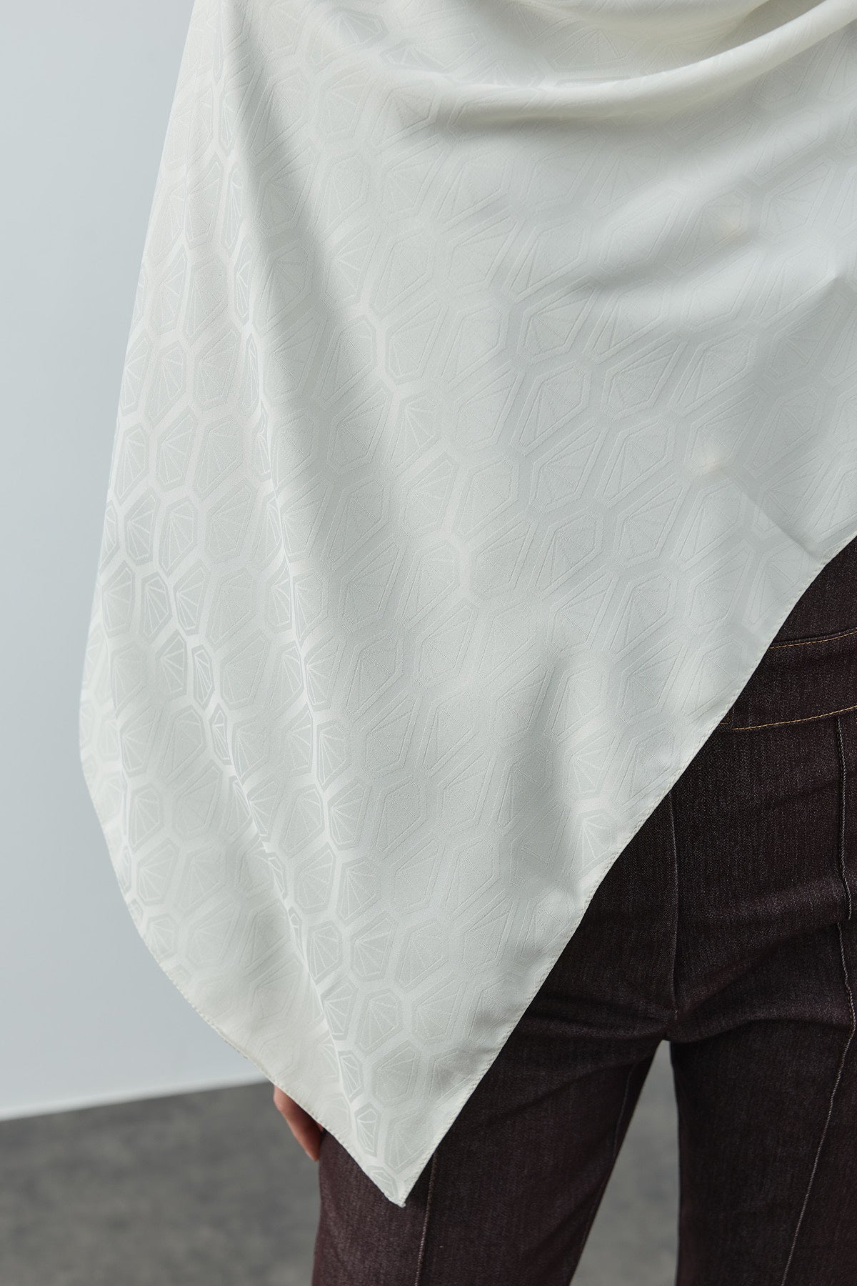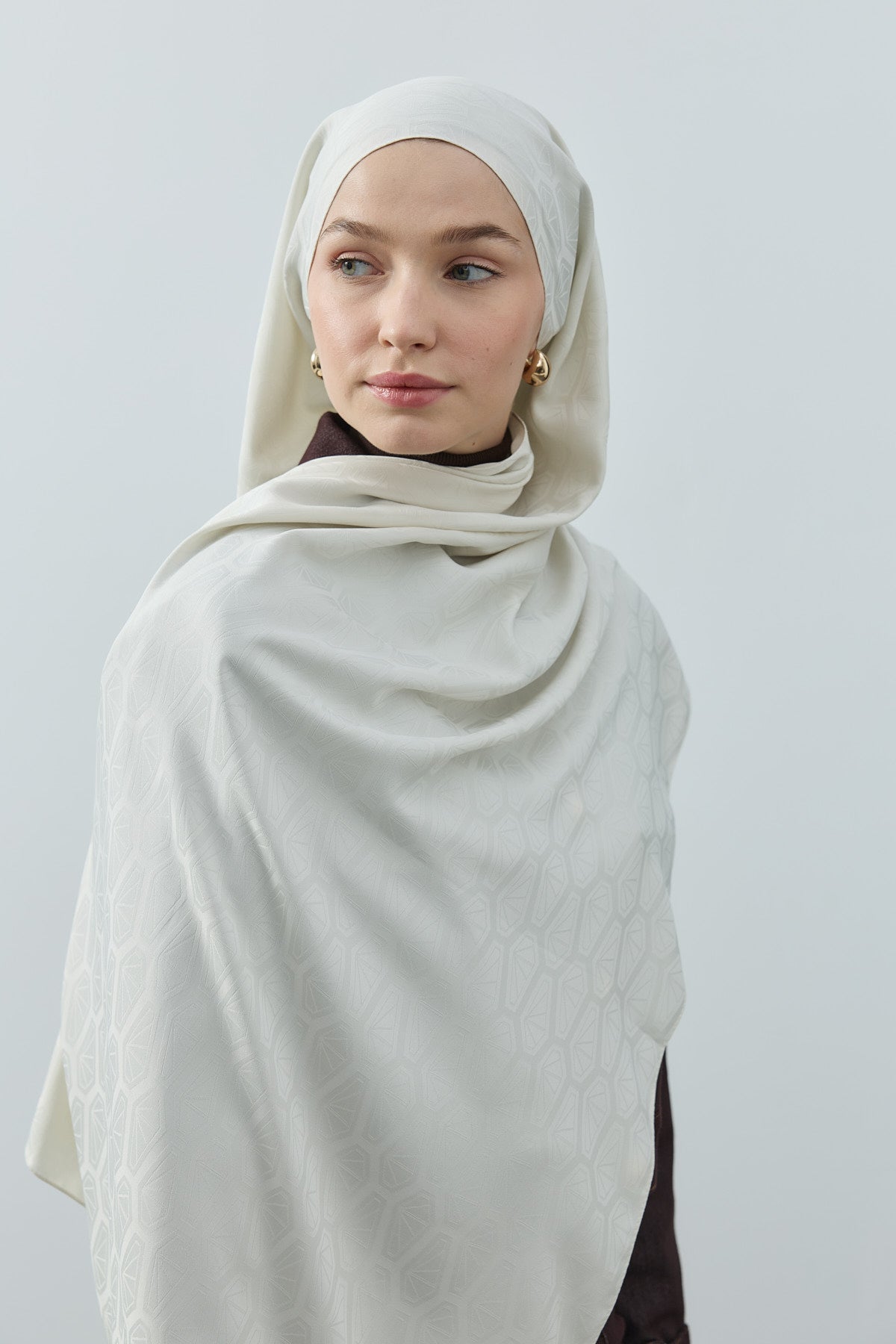 Elmas Desen İpeksi Jakar Şal Ekru Elmas Desen İpe...