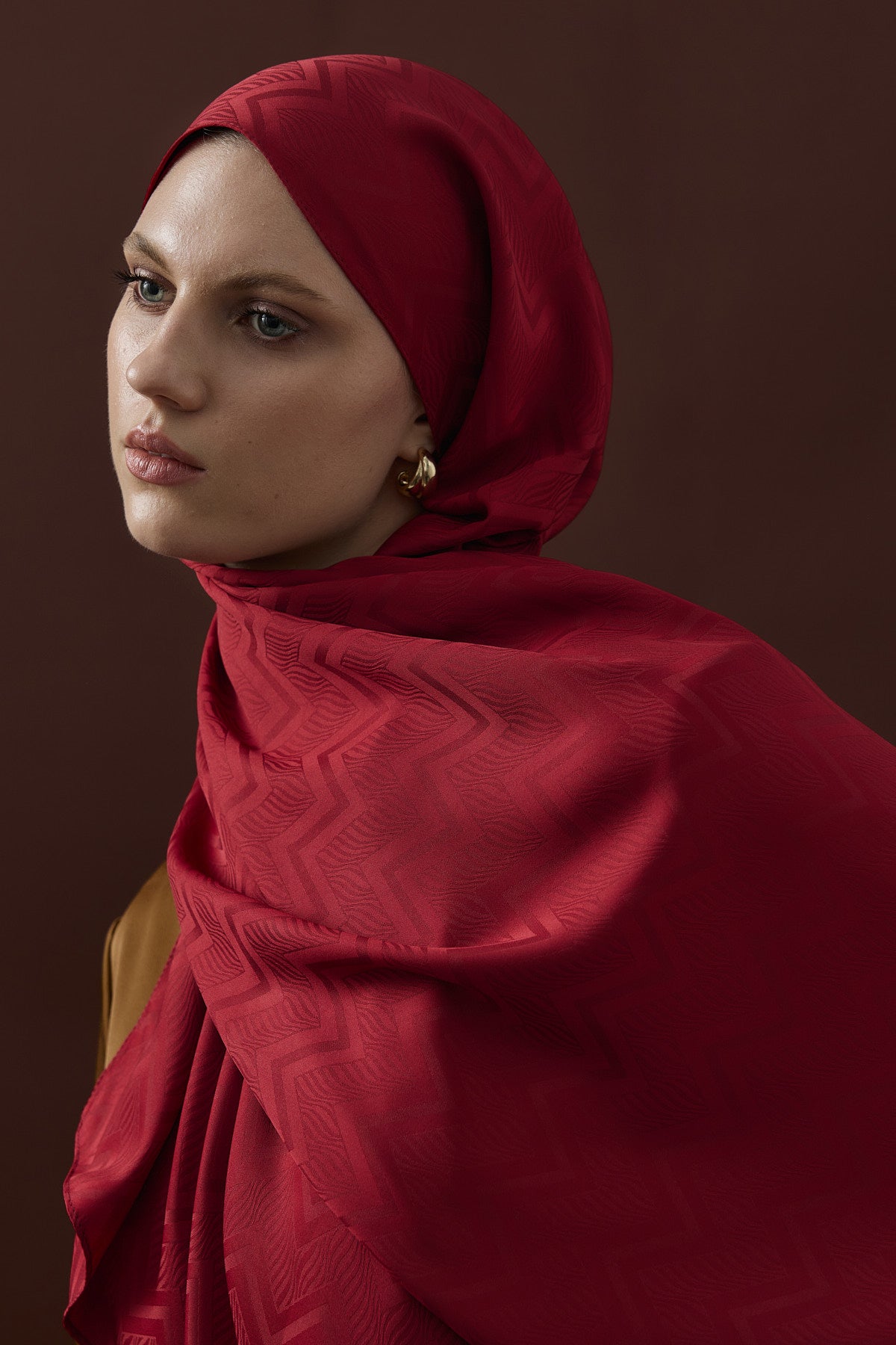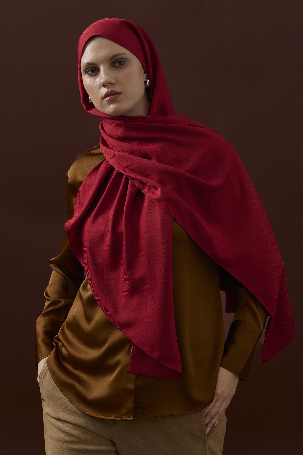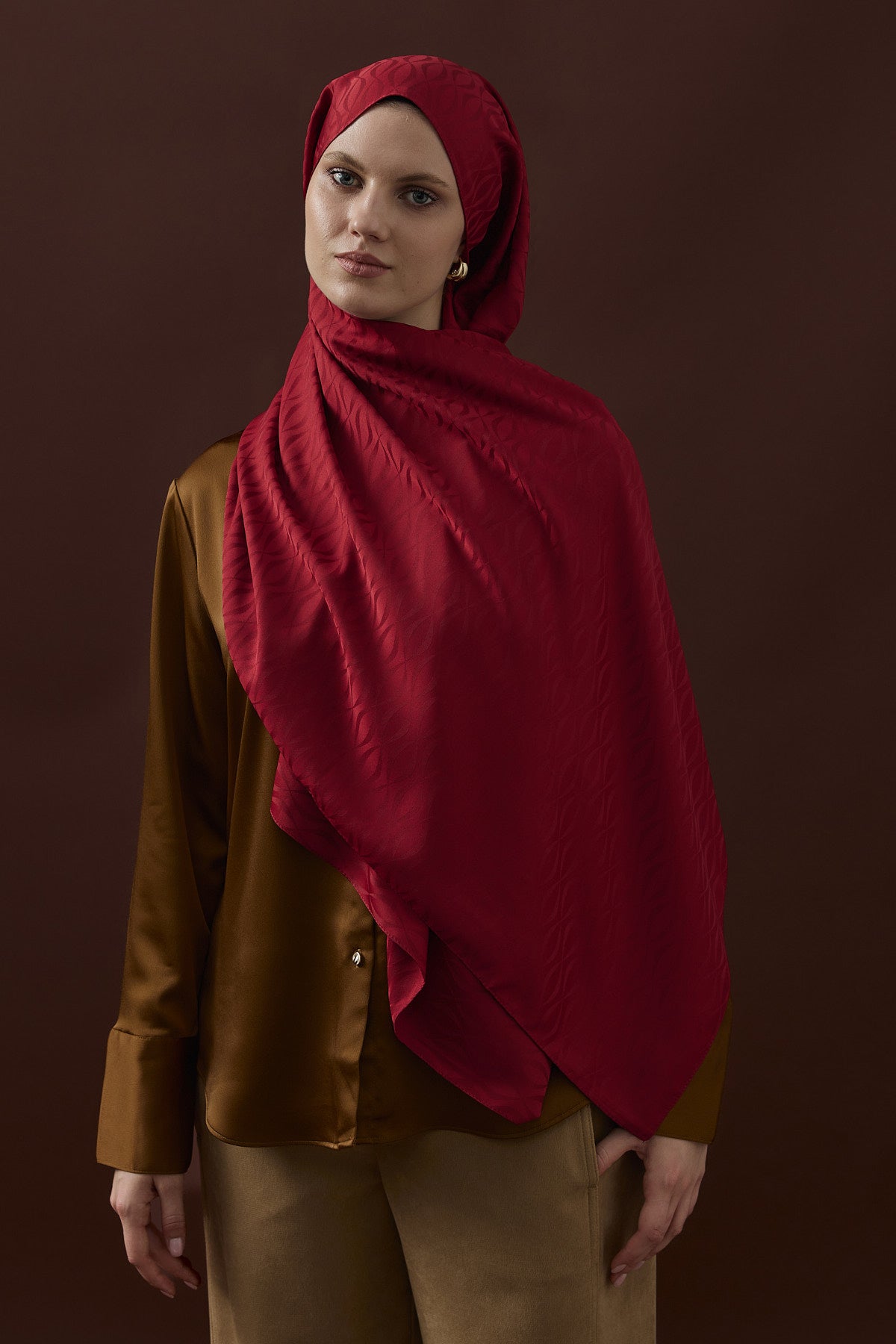 Velvet Lines Desen İpeksi Jakar Şal Bordo Velvet Lines De...