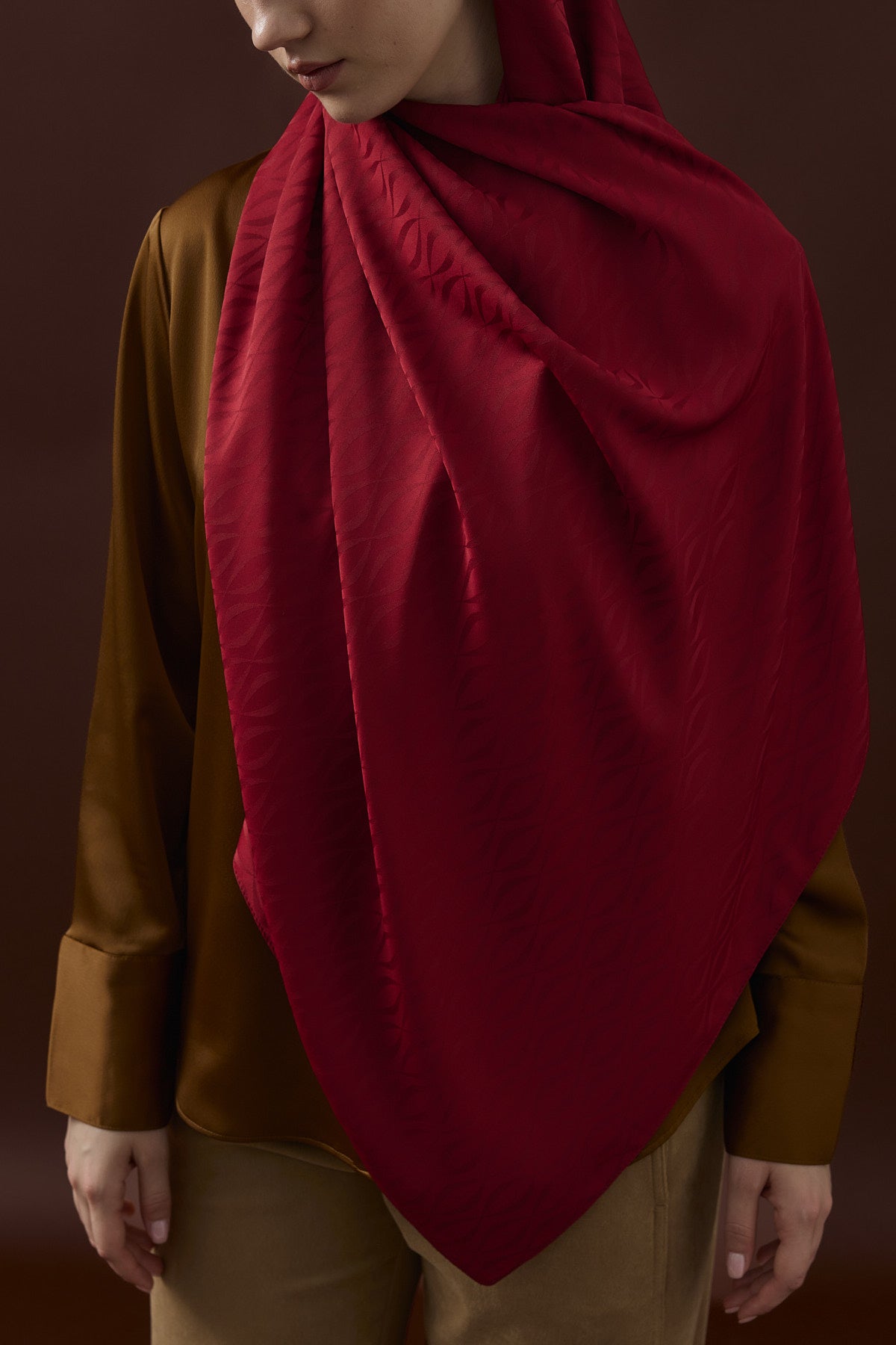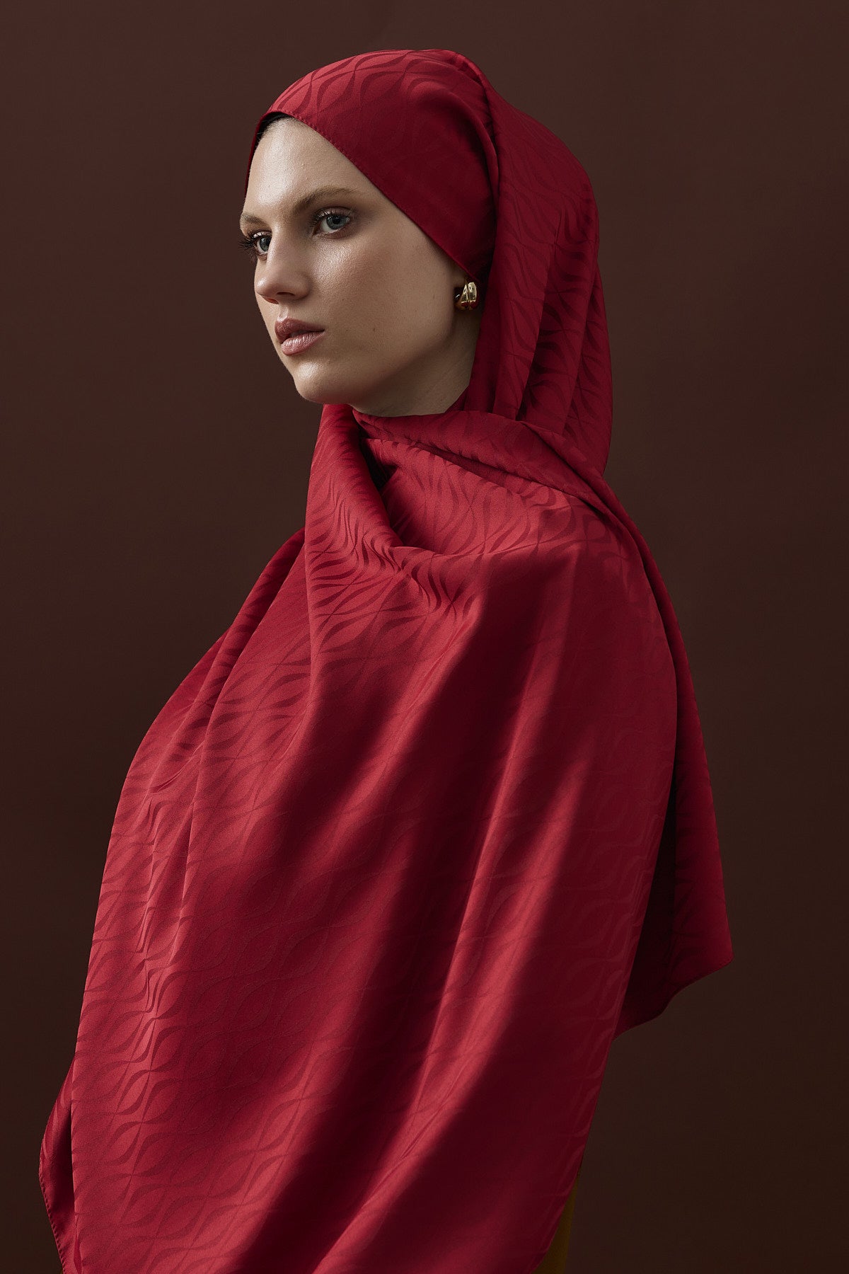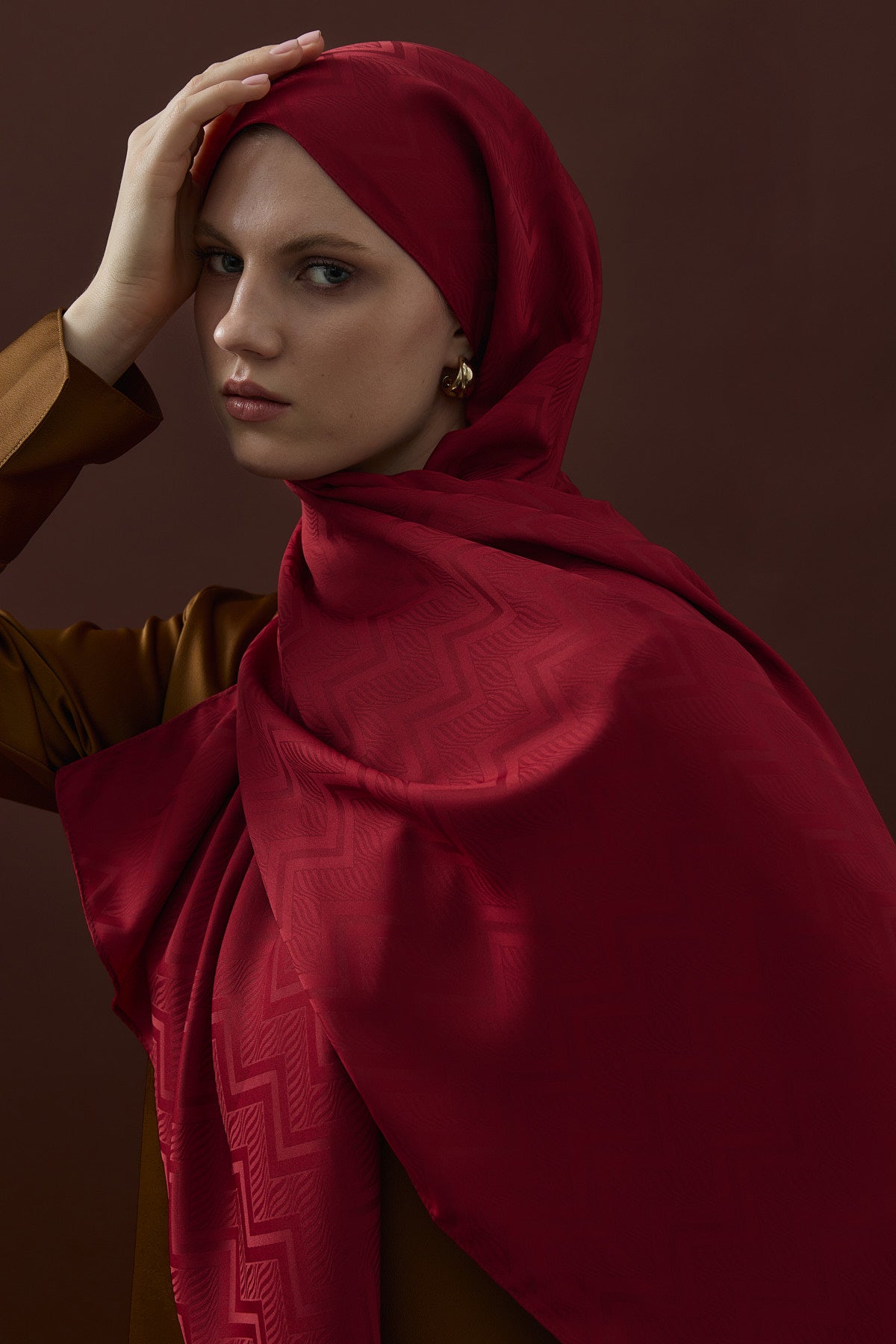 Velvet Lines Desen İpeksi Jakar Şal Bordo Velvet Lines De...