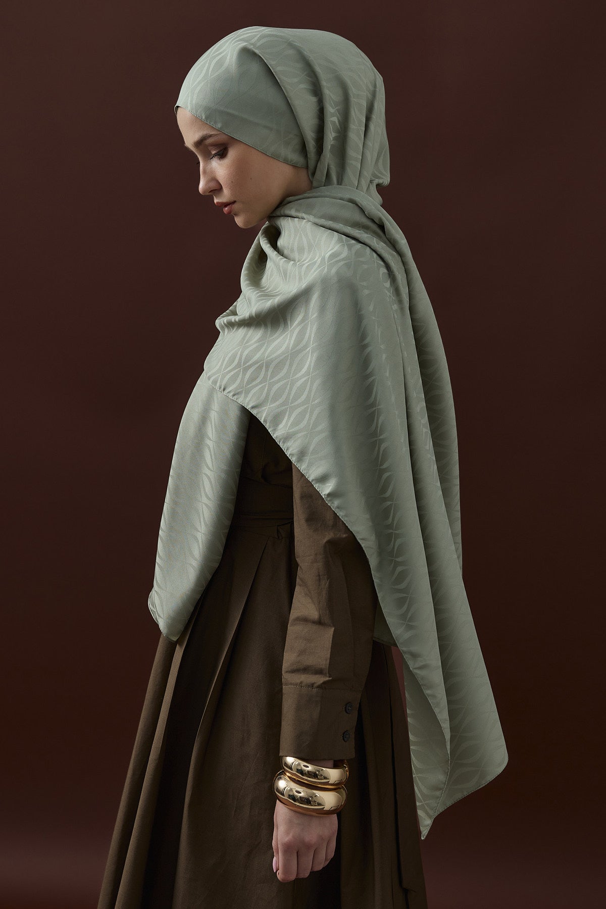 Elmas Desen İpeksi Jakar Şal Mint Elmas Desen İpe...