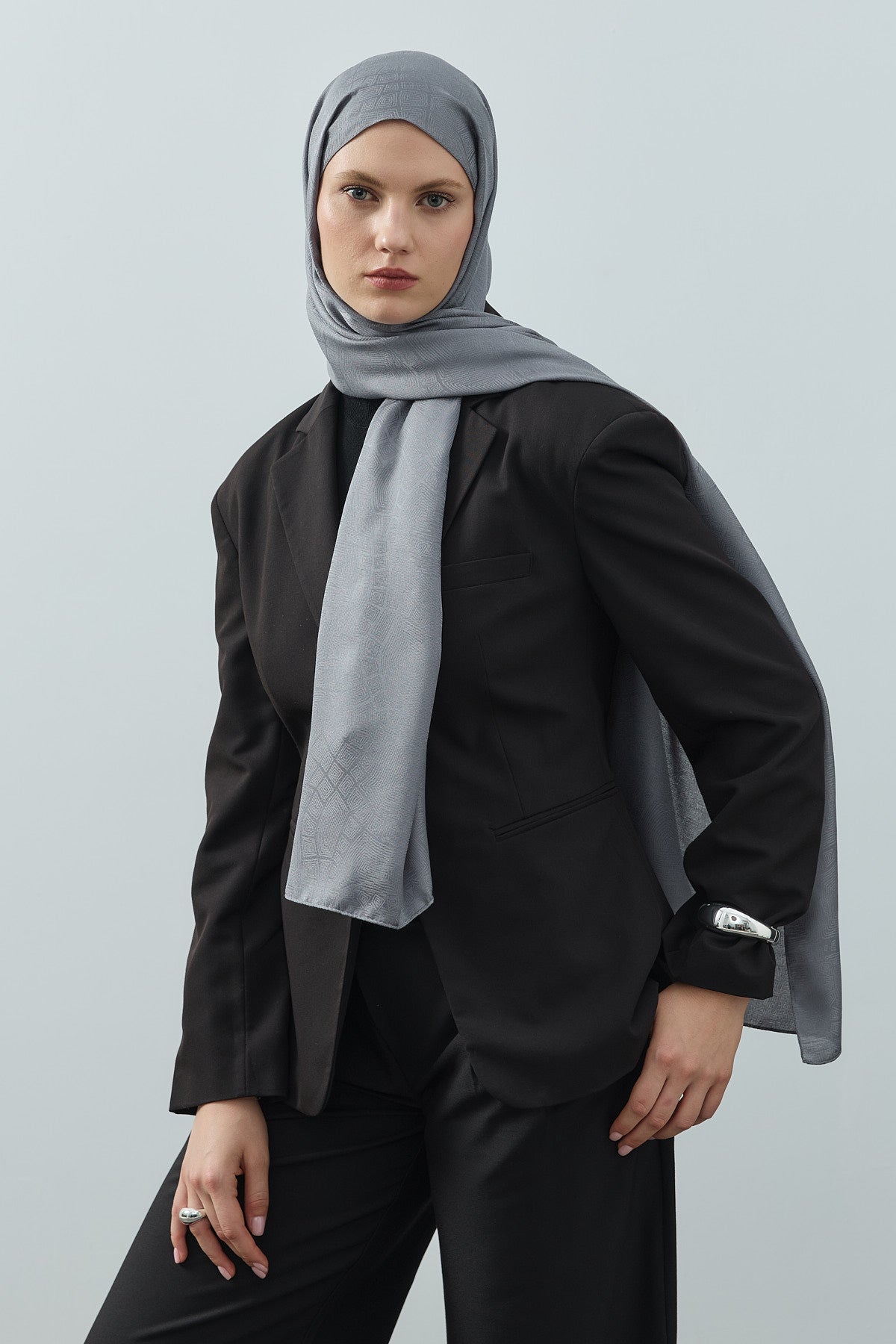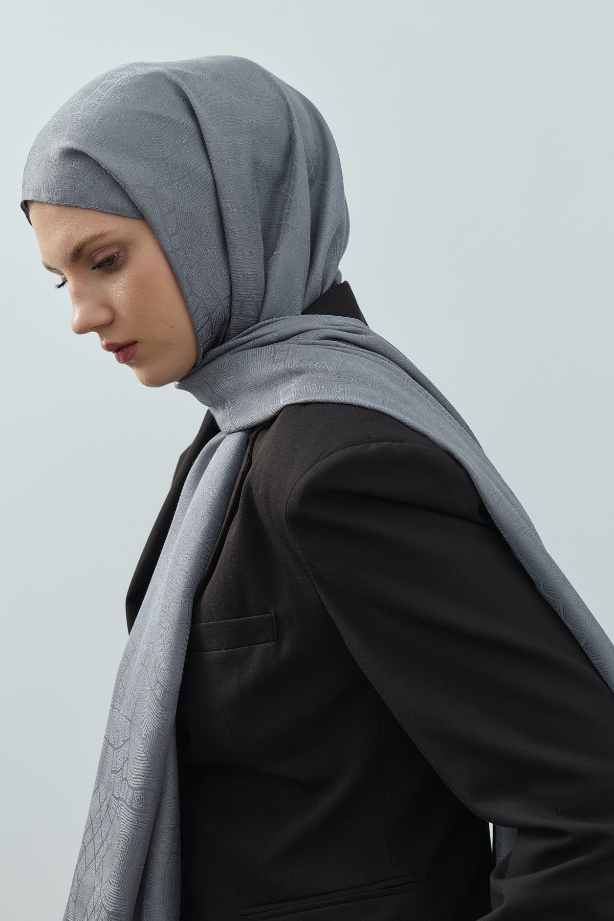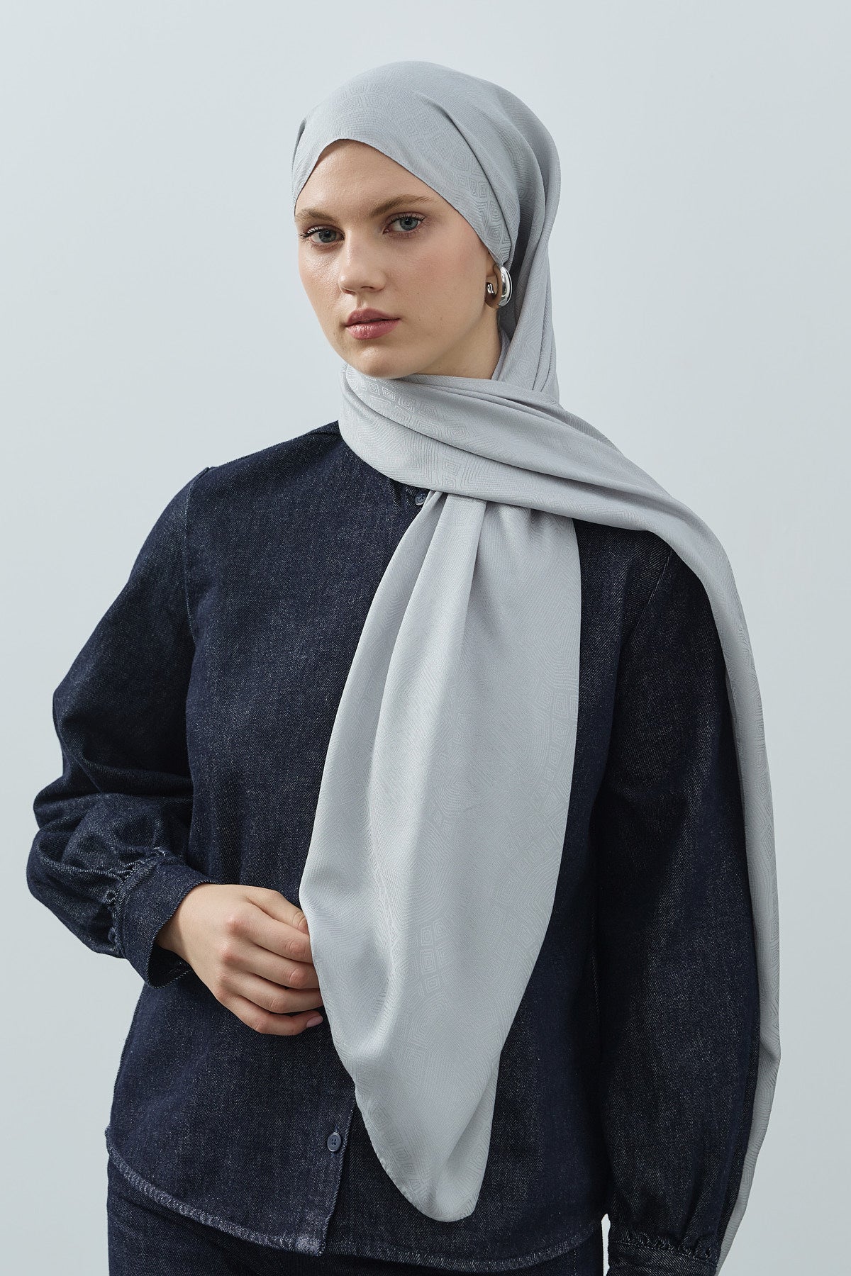 Nihavend Monogram Desen Şal Gümüş Gri Nihavend Monogr...