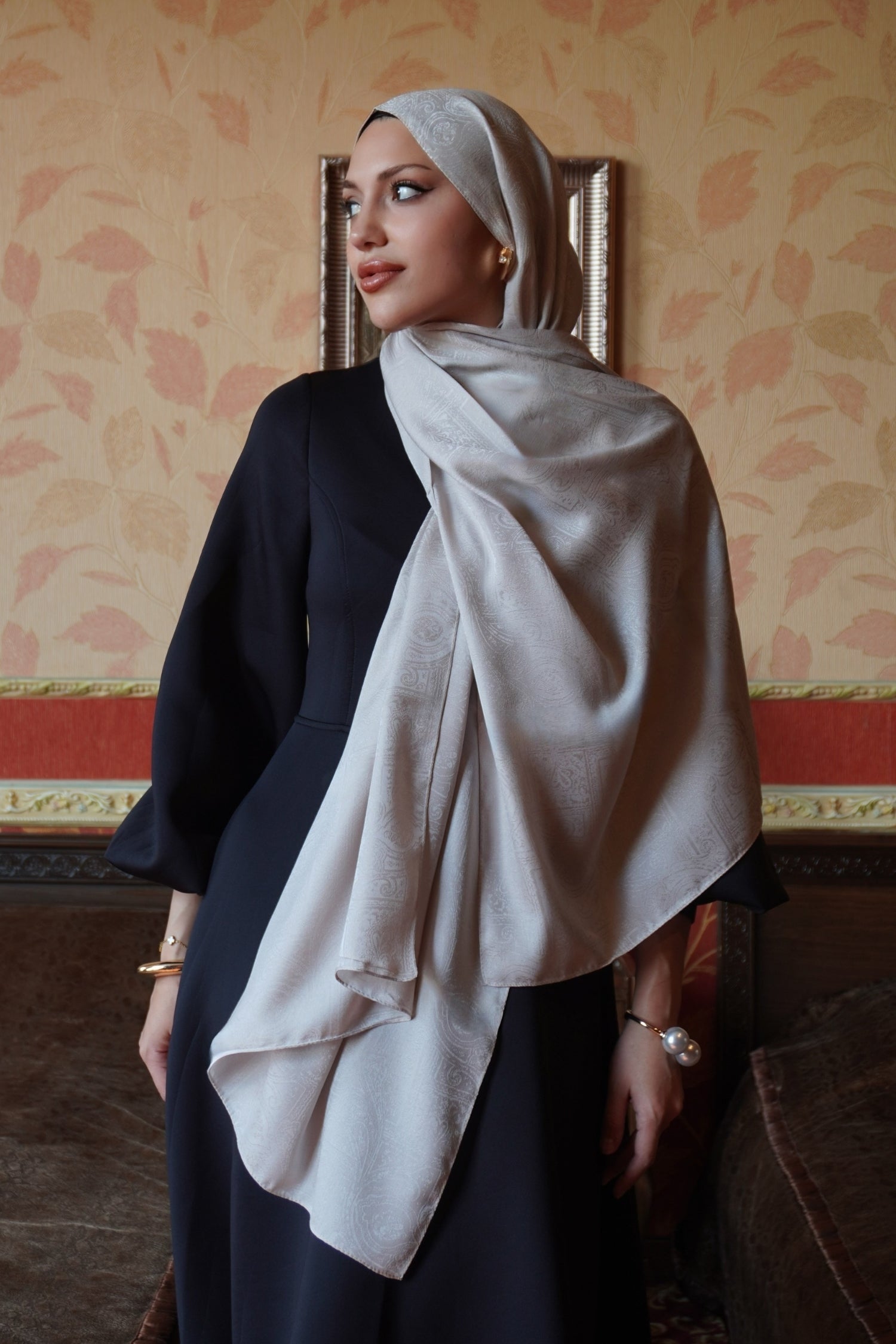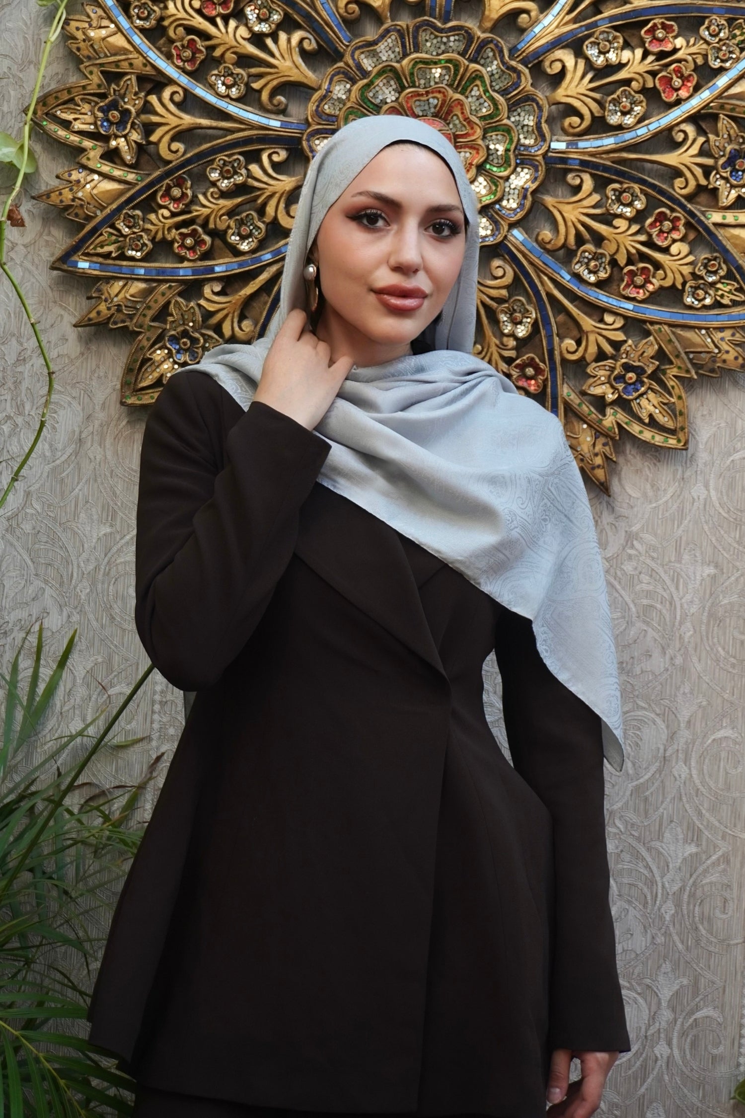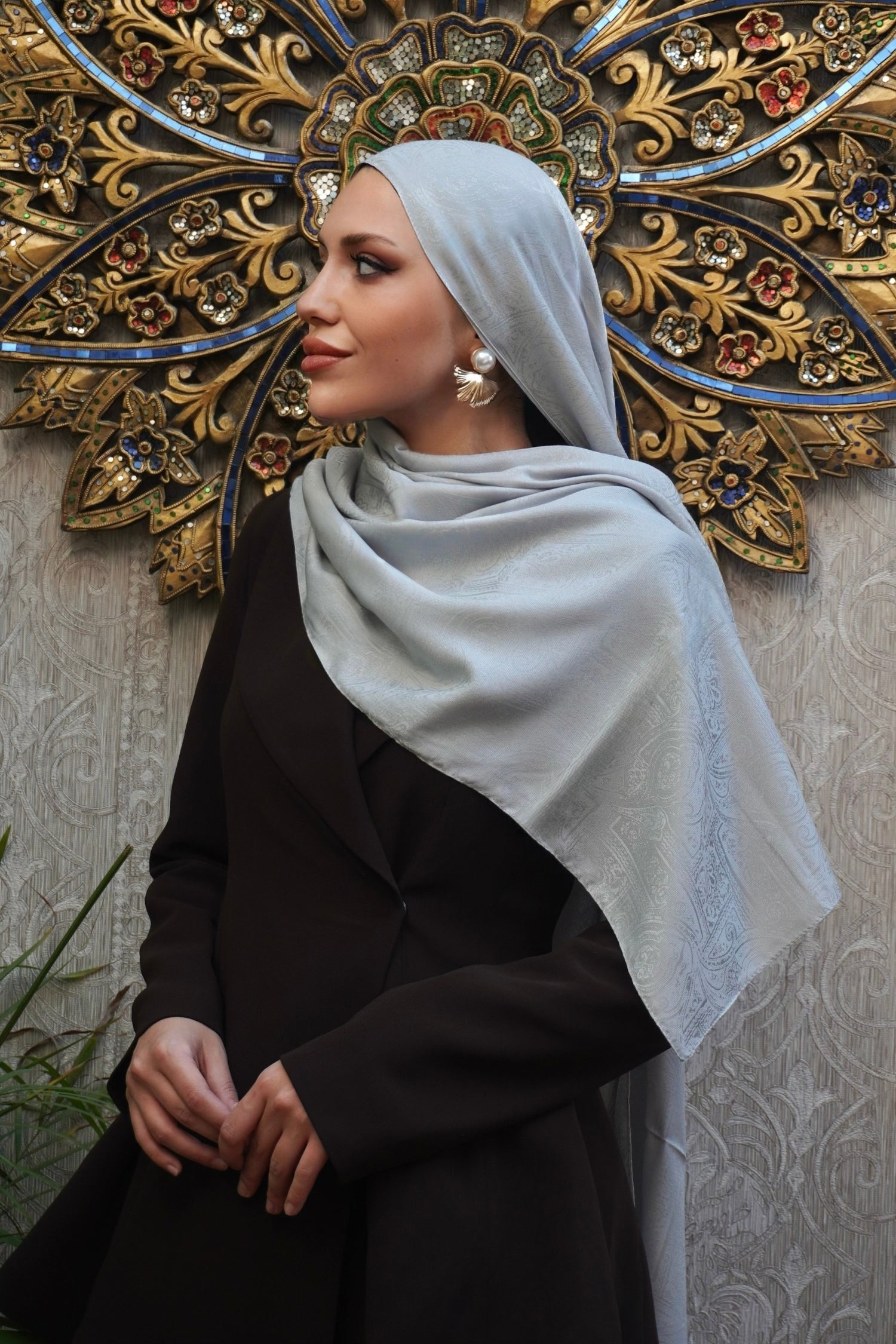 Nihavend Monogram Desen Şal Gümüş Gri Nihavend Monogr...