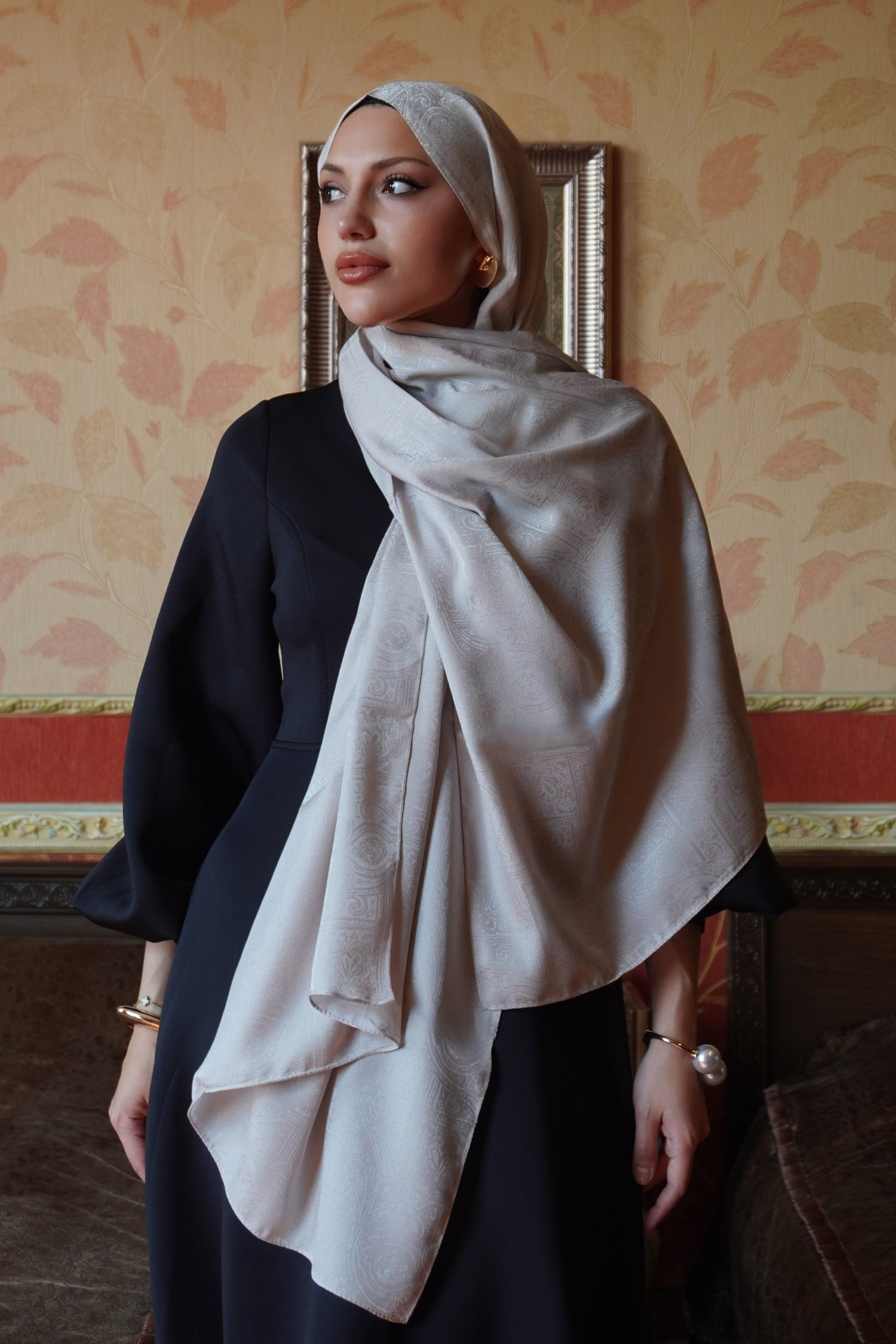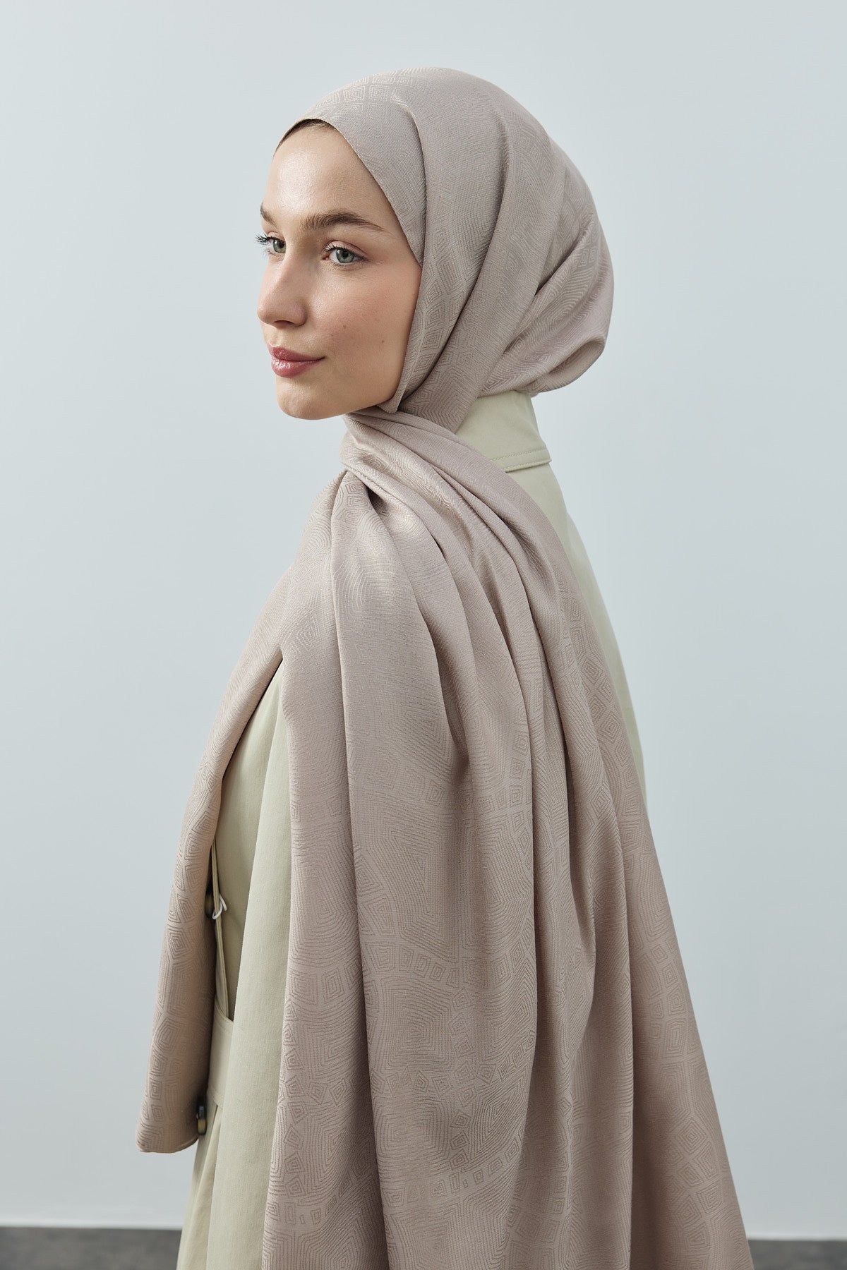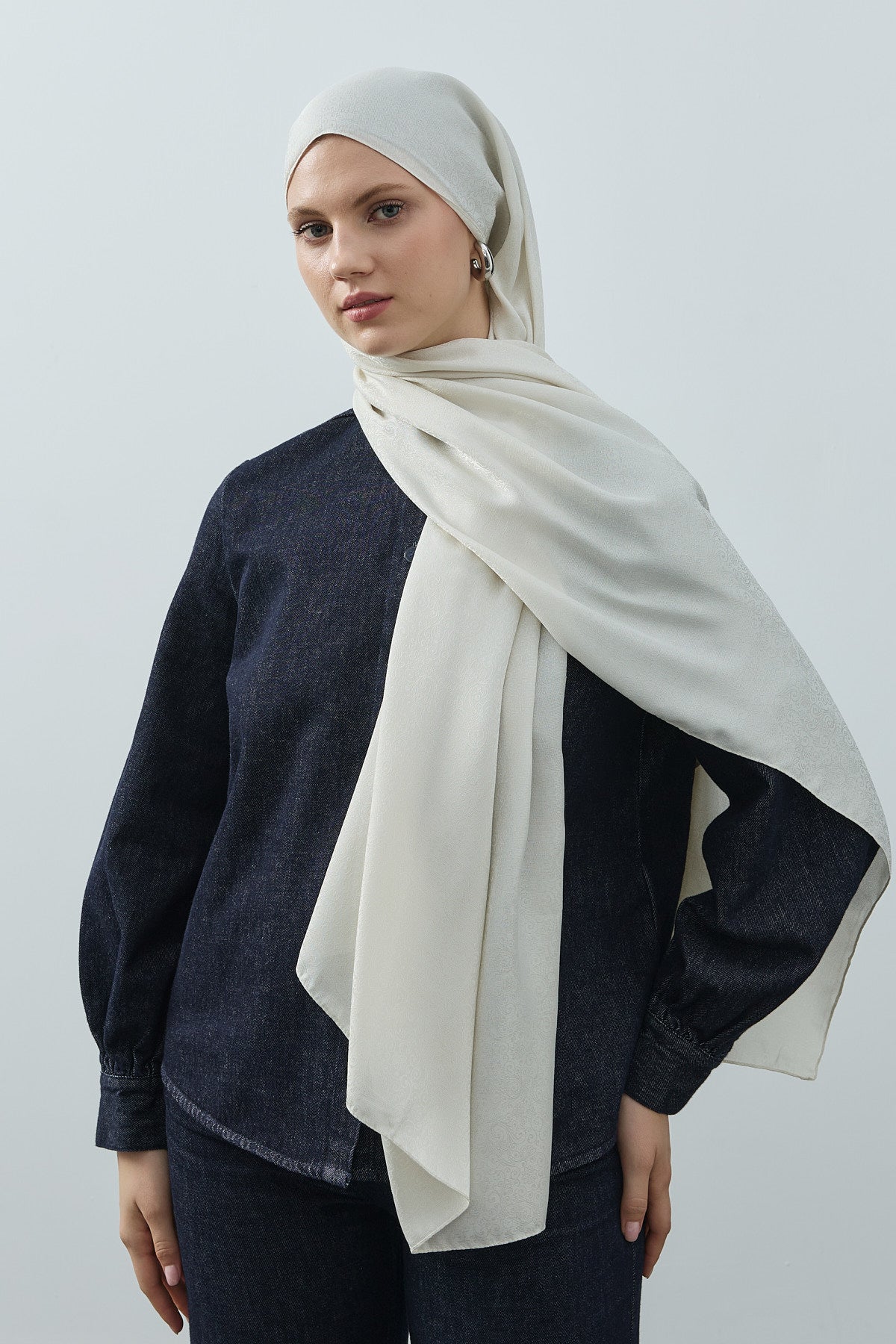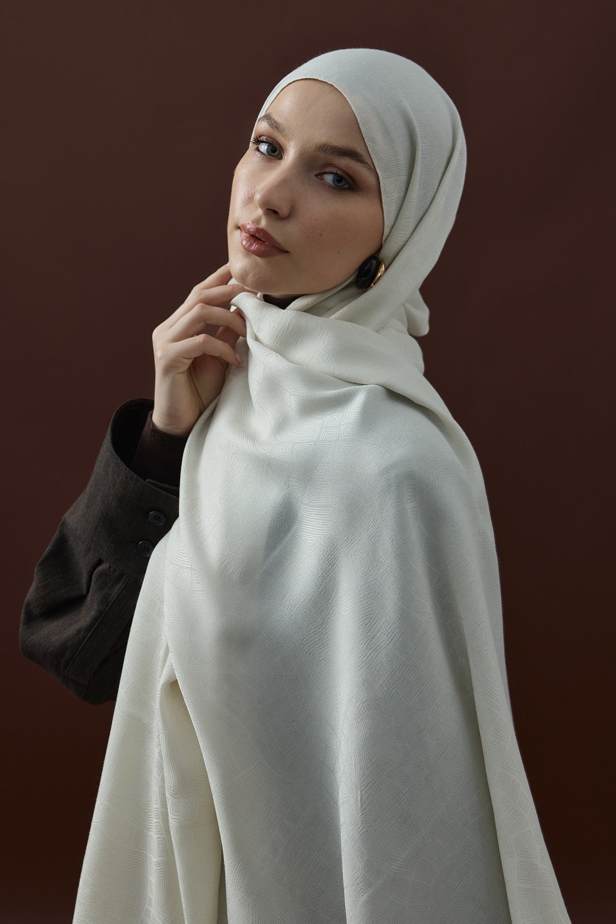 Nihavend Monogram Desen Şal Ekru Nihavend Monogr...