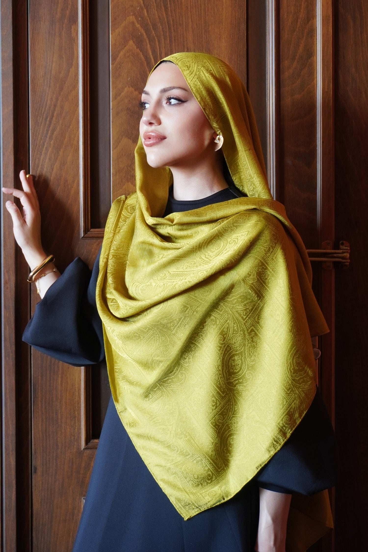 Fern Monogram Desen Şal Yağ Yeşili Fern Monogram D...