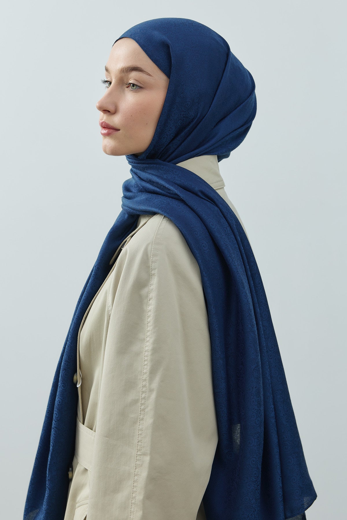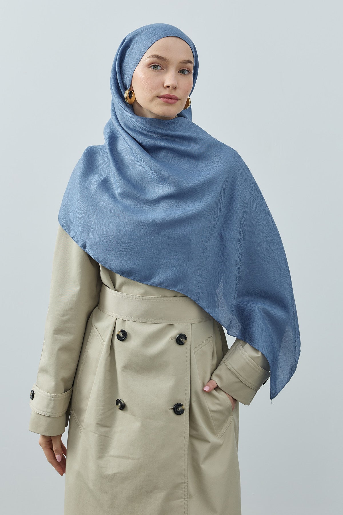 Nihavend Monogram Desen Şal Mavi Nihavend Monogr...
