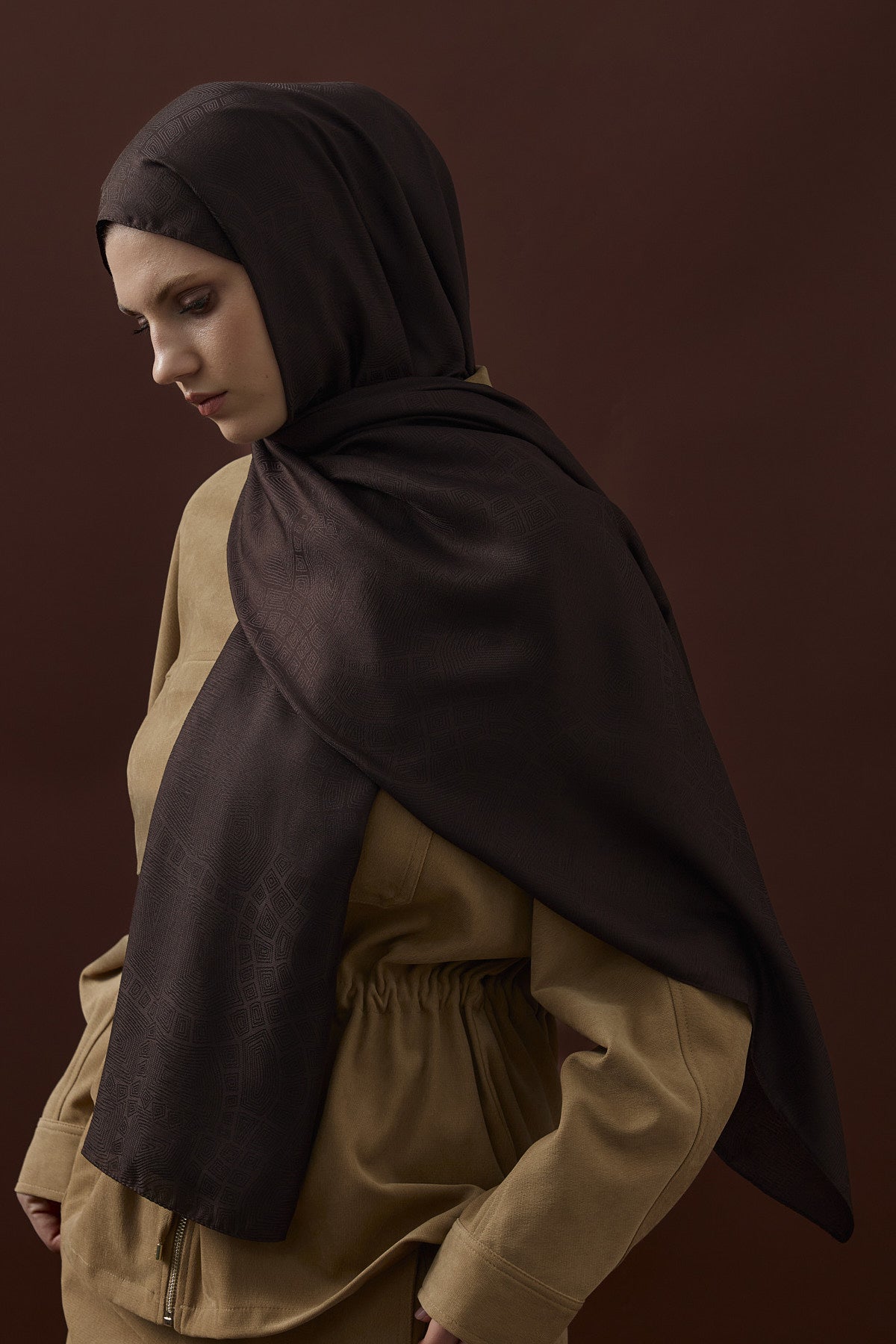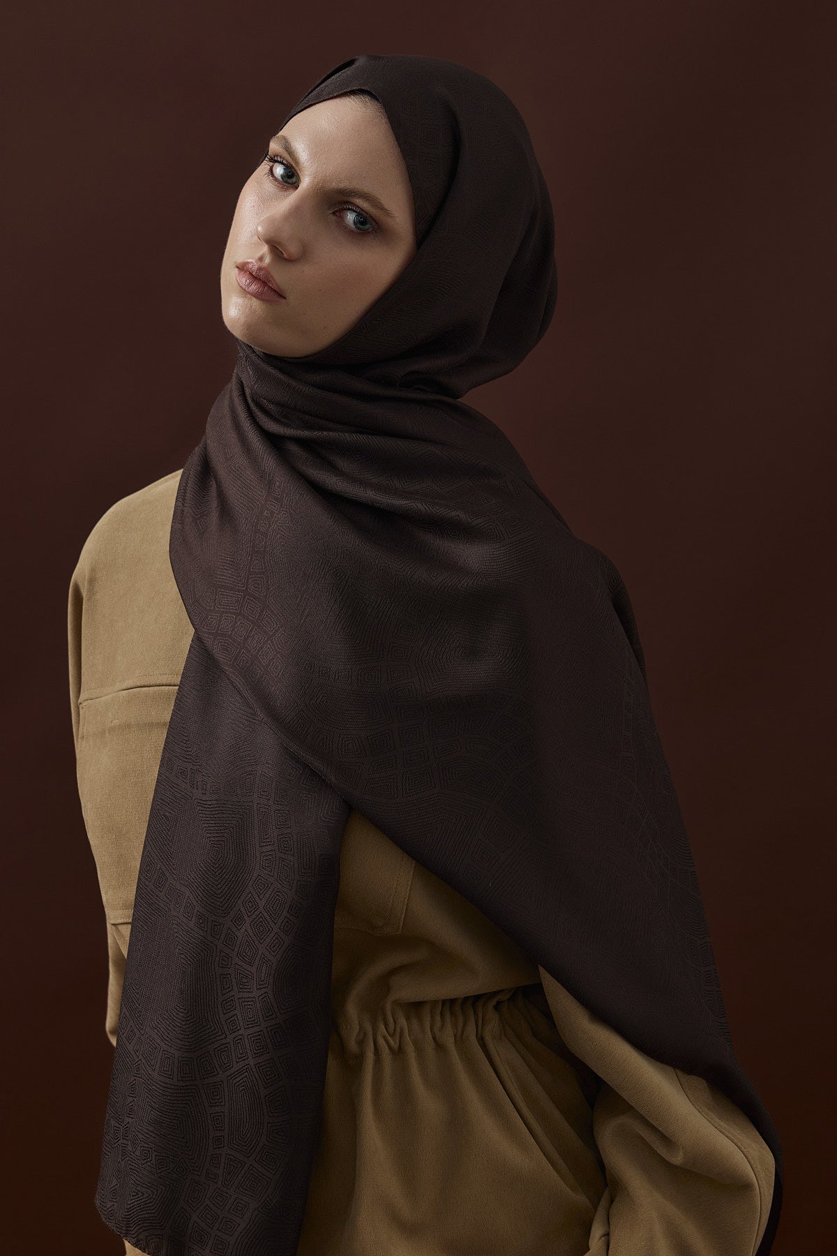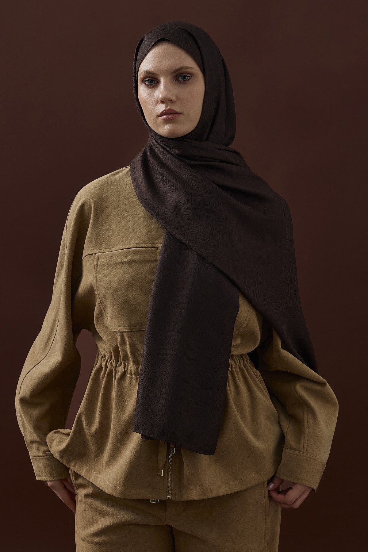 Nihavend Monogram Desen Şal Acı Kahve Nihavend Monogr...