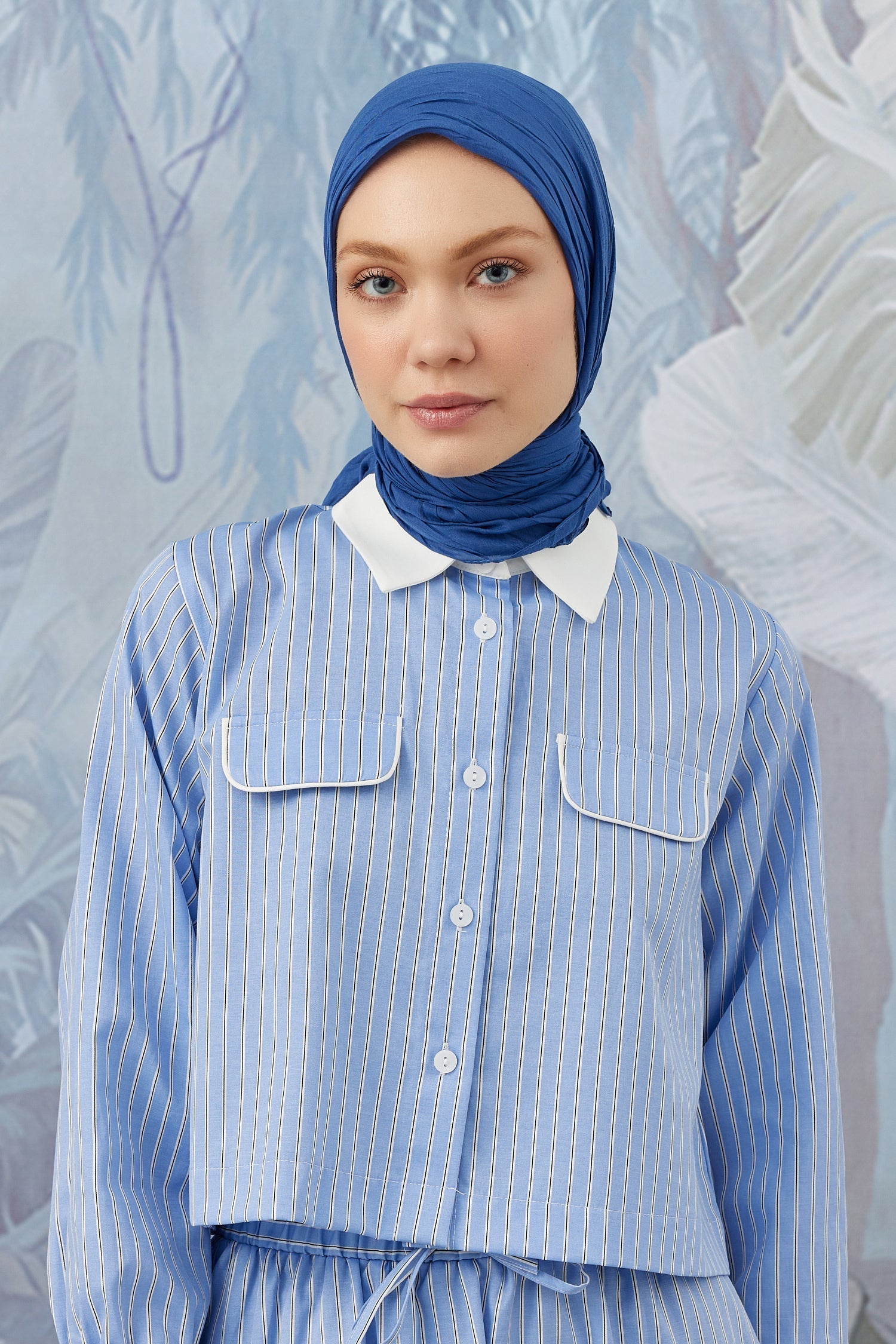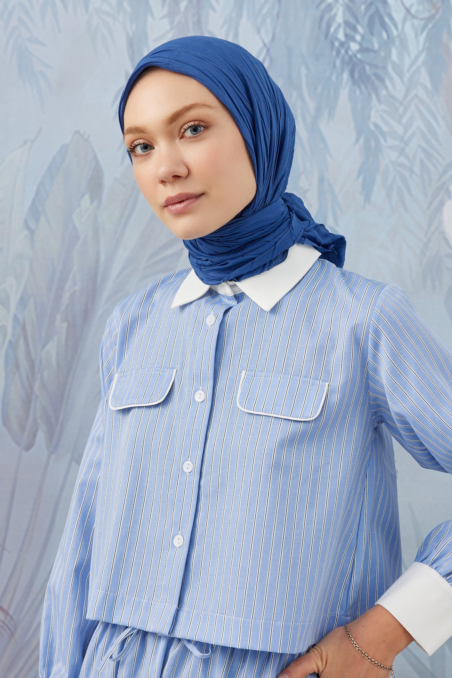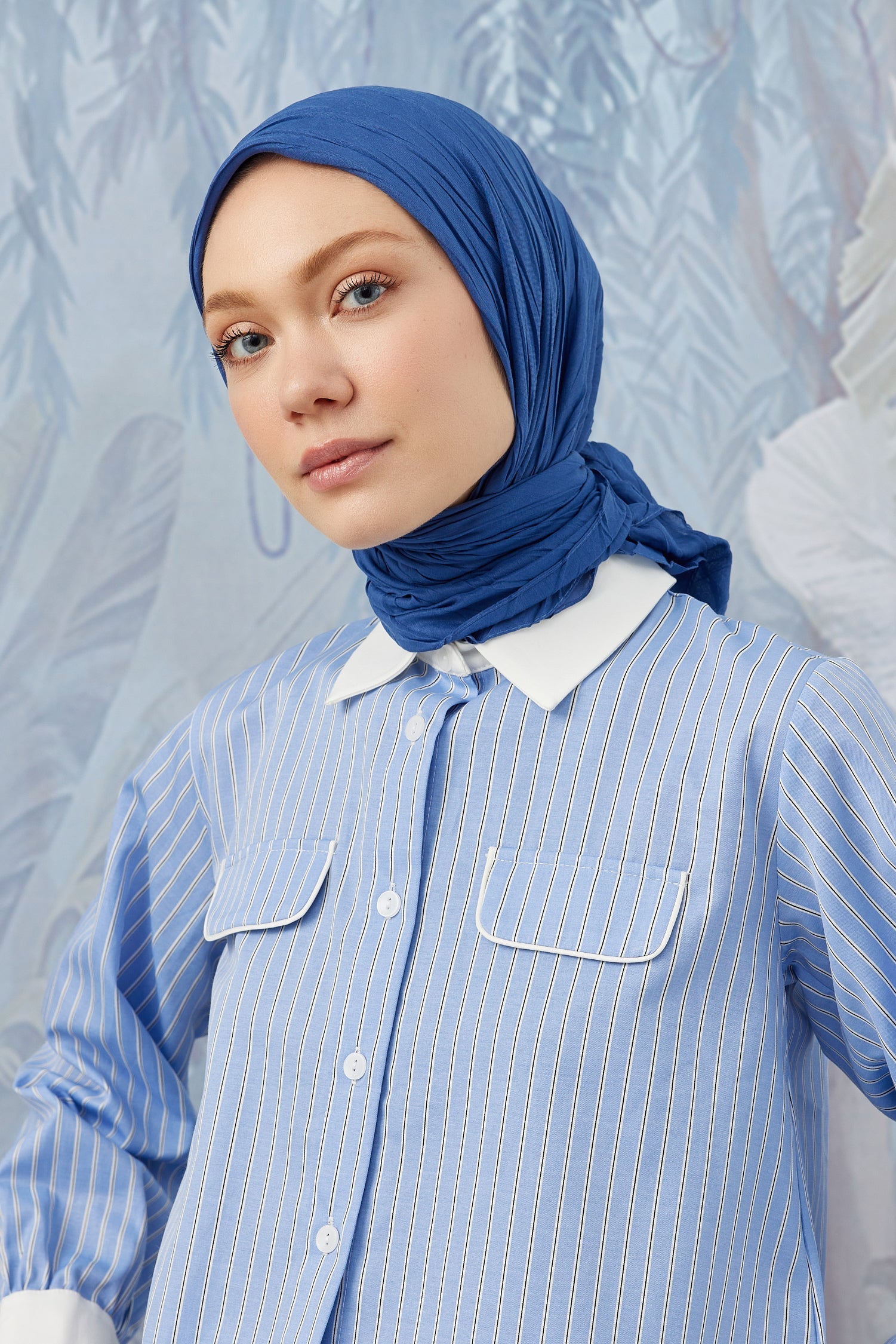 Bambu Piliseli Eşarp Kot Mavi Bambu Piliseli ...