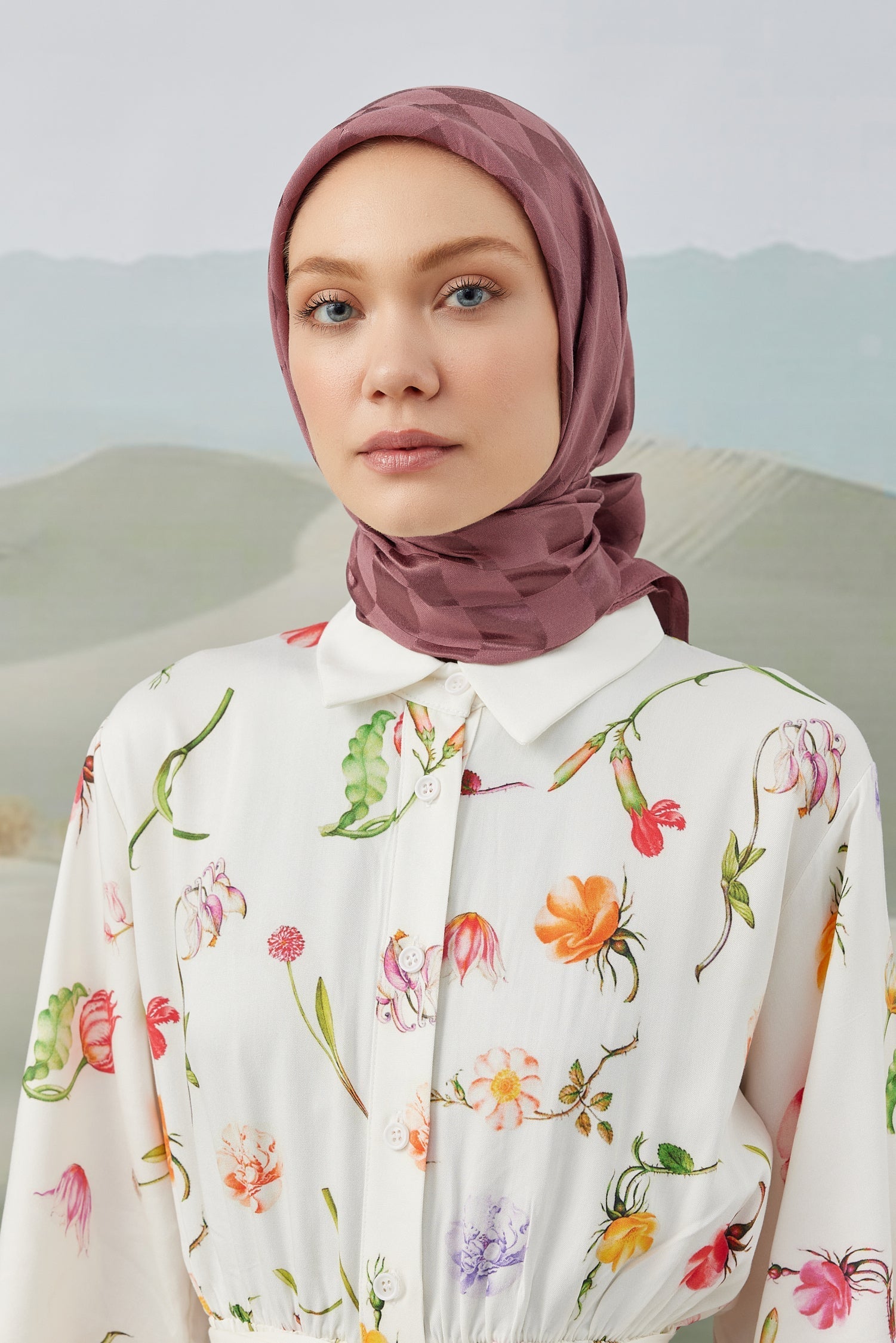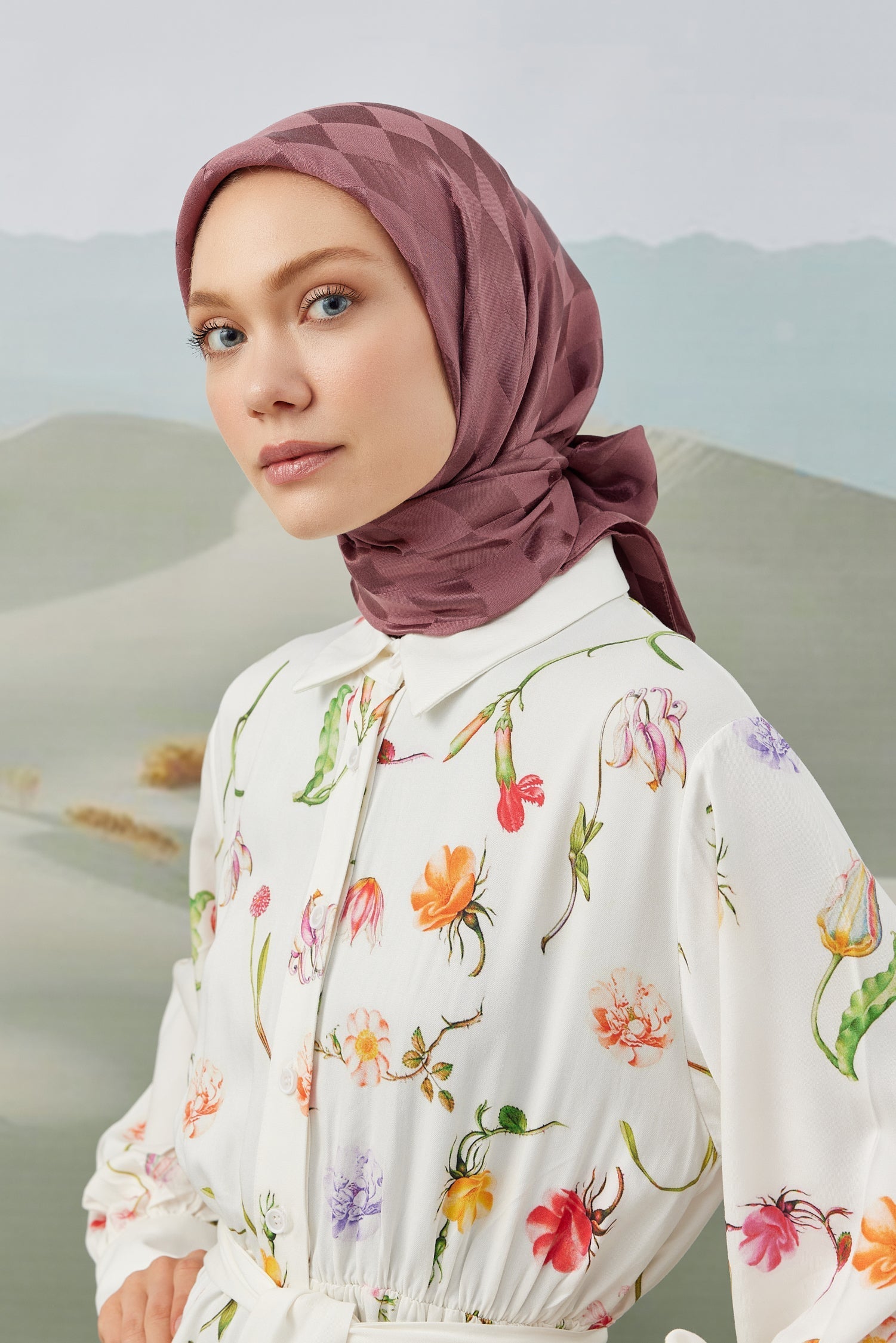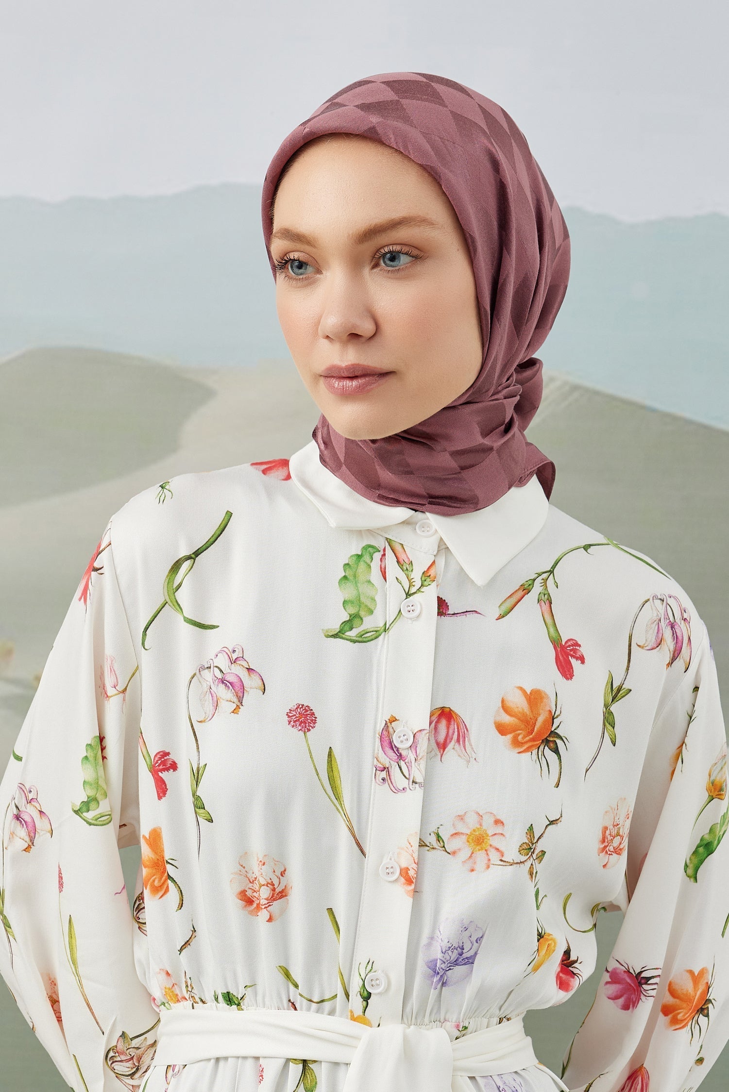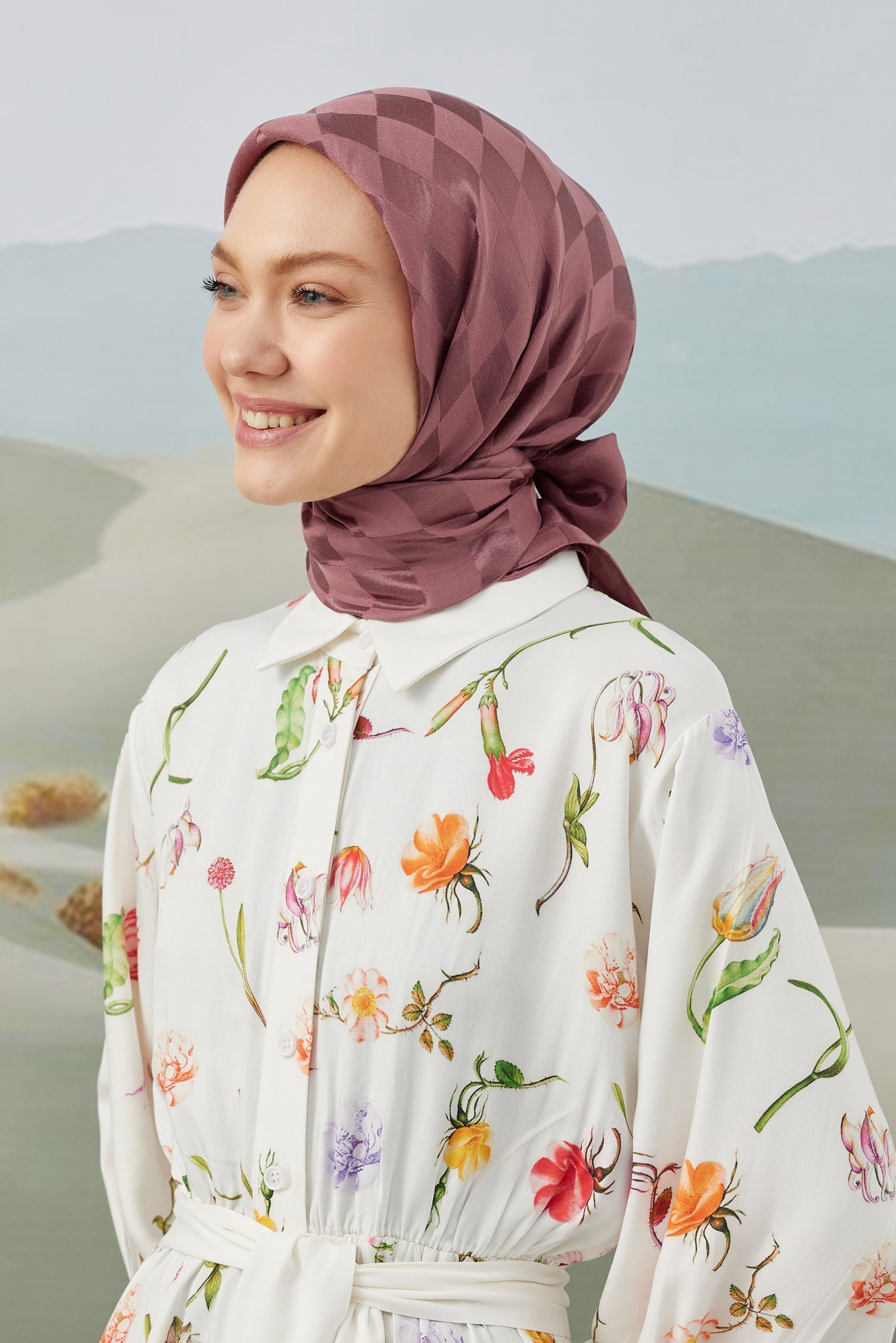 Dama Desen İpeksi Parlak Jakar Eşarp Gülkurusu Dama Desen İpek...