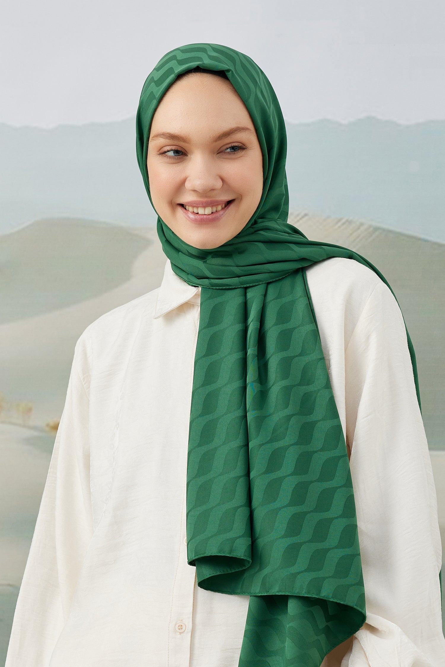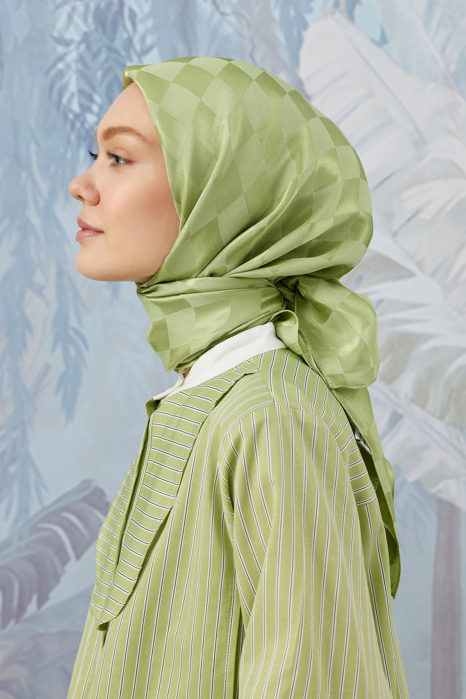 Dama Desen İpeksi Parlak Jakar Eşarp Fıstık... Dama Desen İpek...