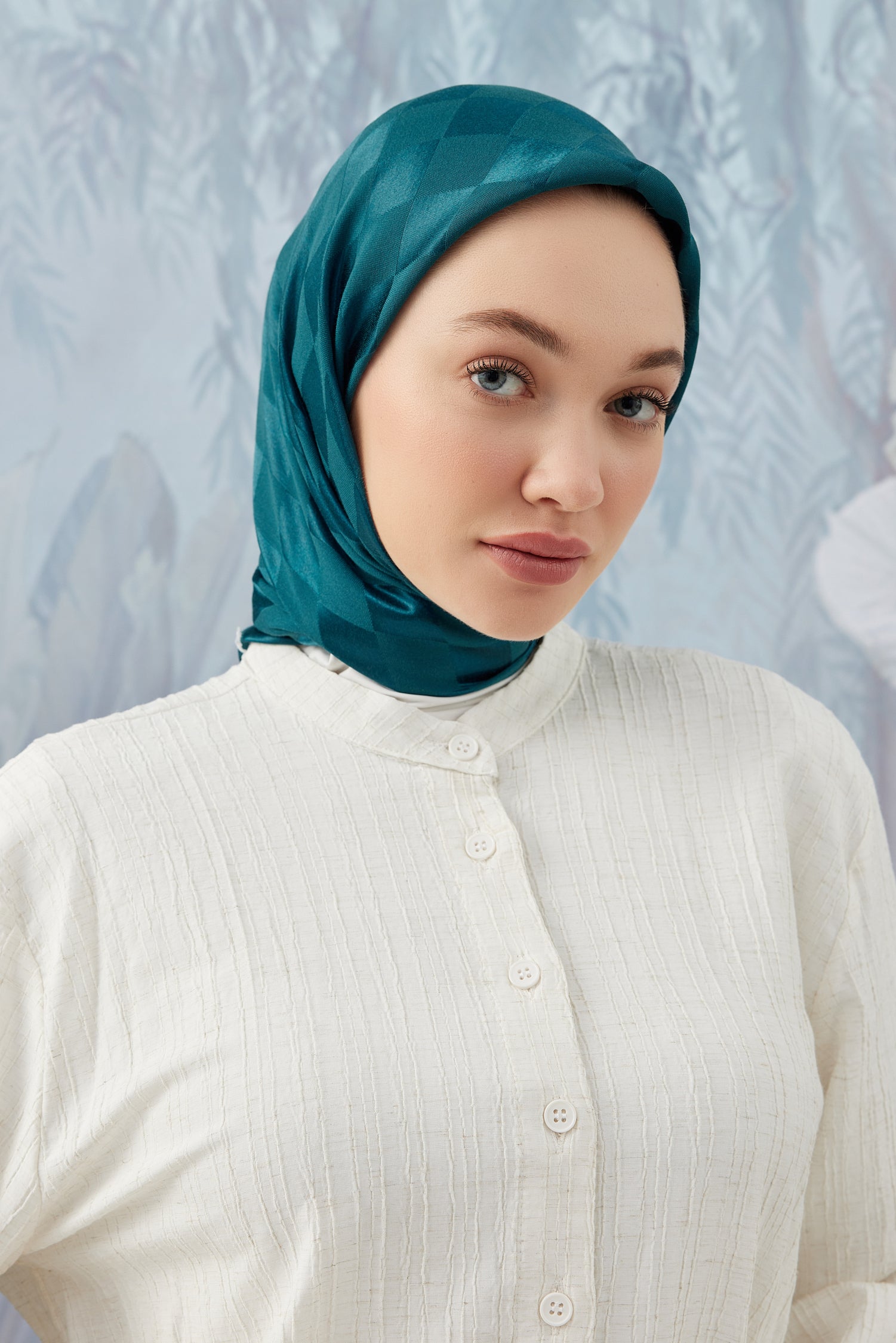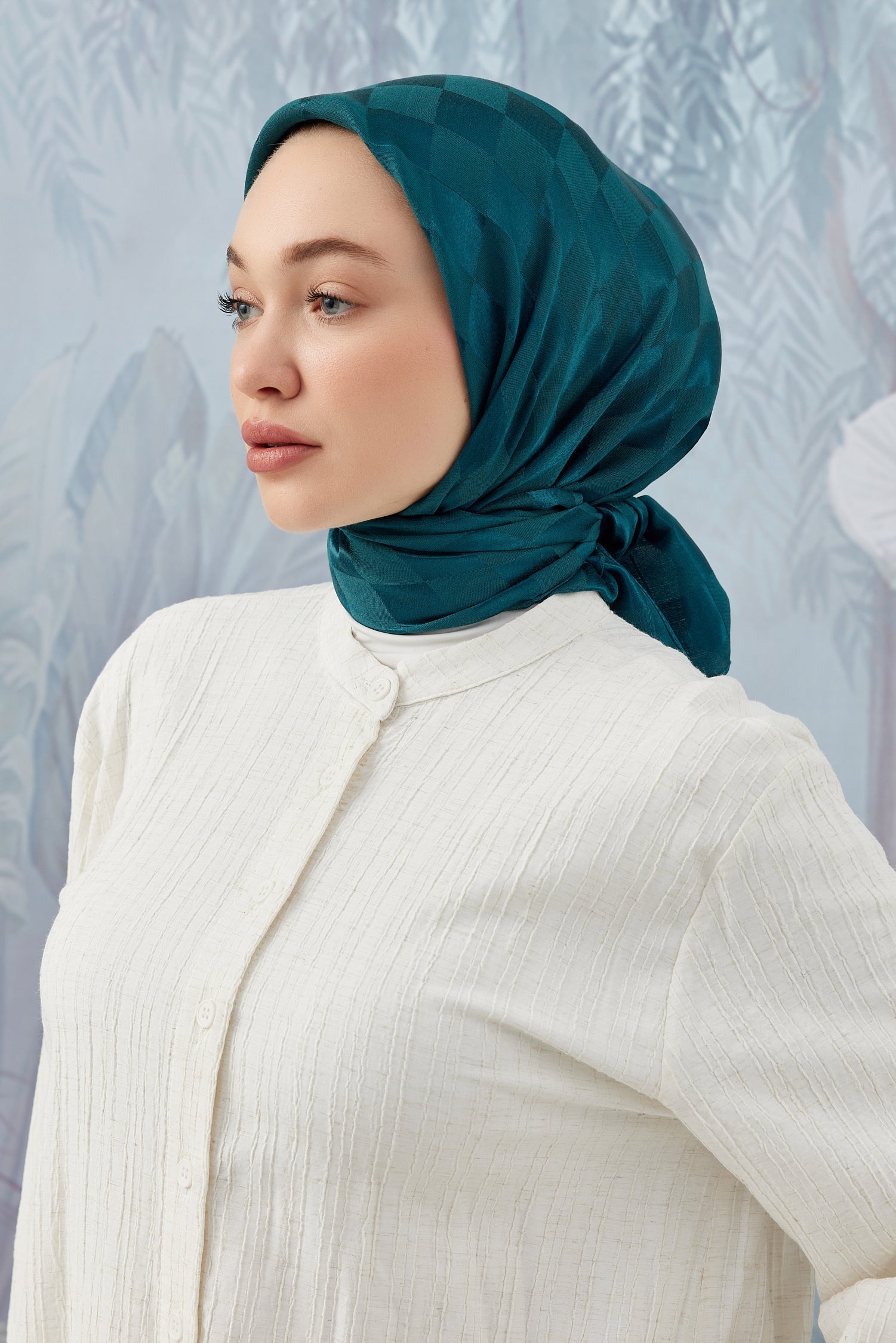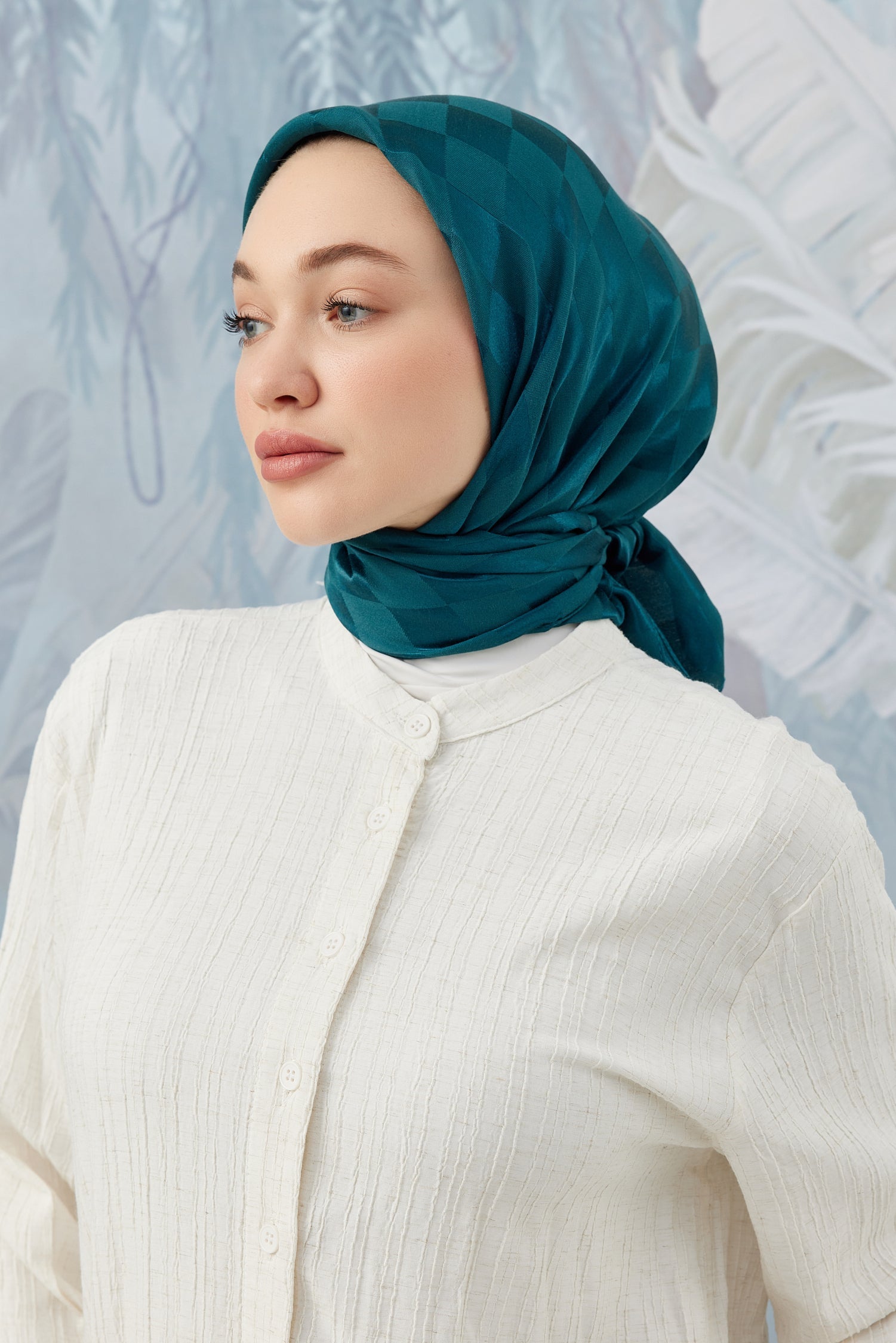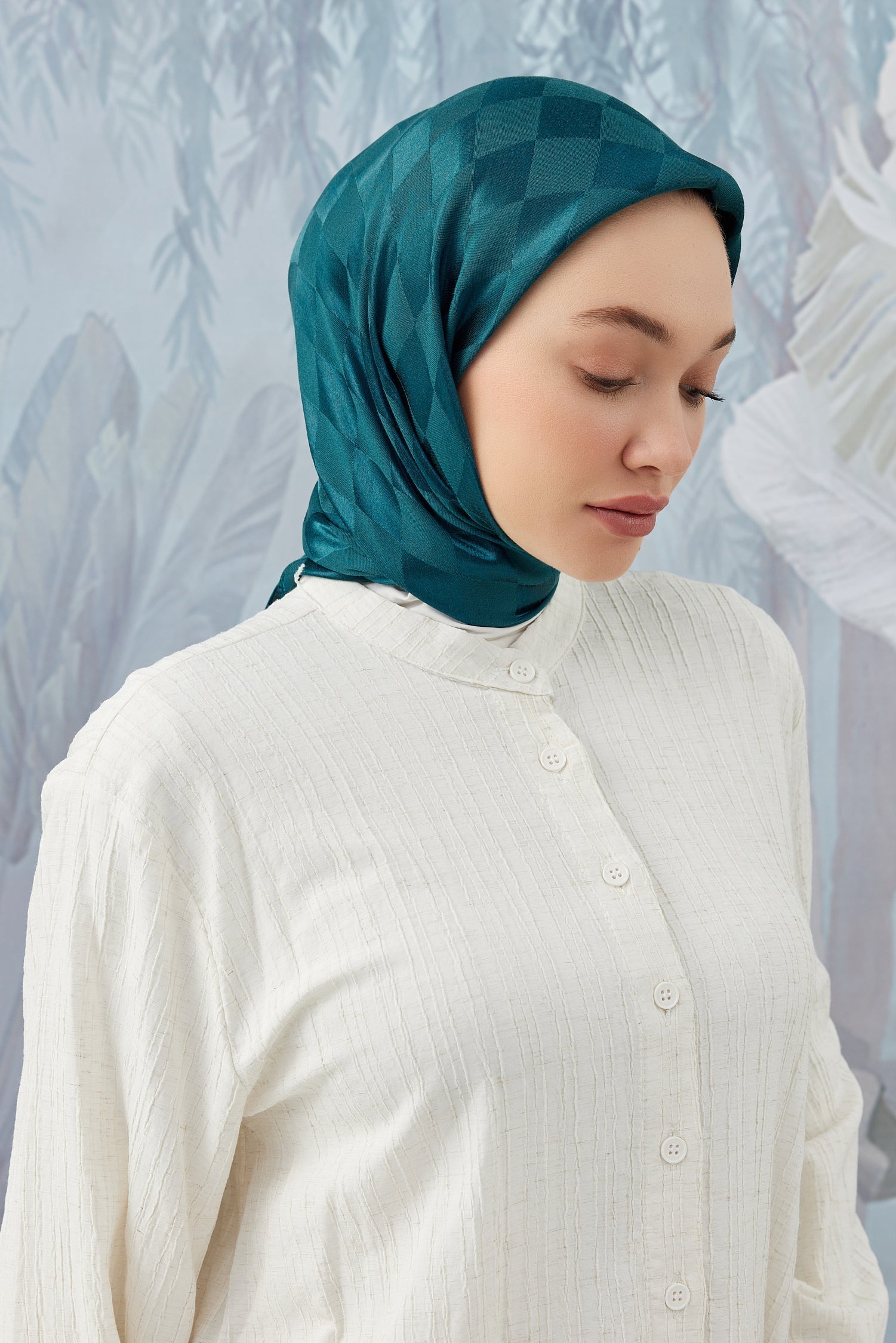 Dama Desen İpeksi Parlak Jakar Eşarp Petrol... Dama Desen İpek...