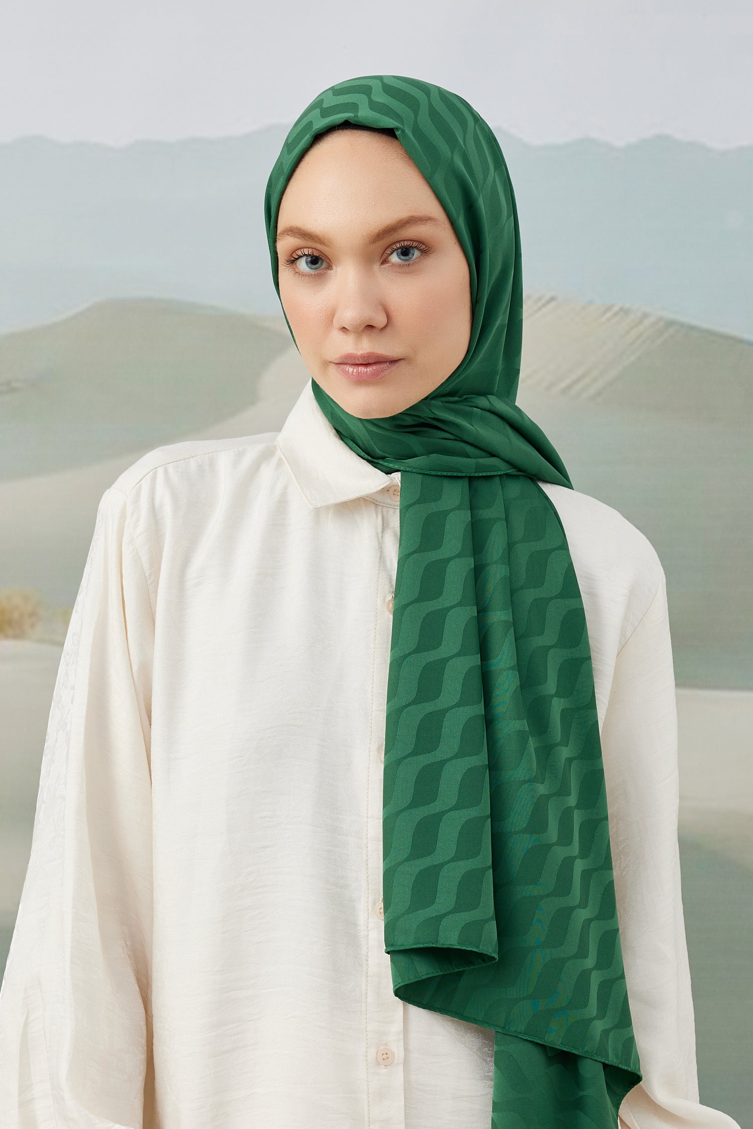 Su Yolu Desen İpeksi Jakar Şal Zümrüt Yeşili Su Yolu Desen İ...