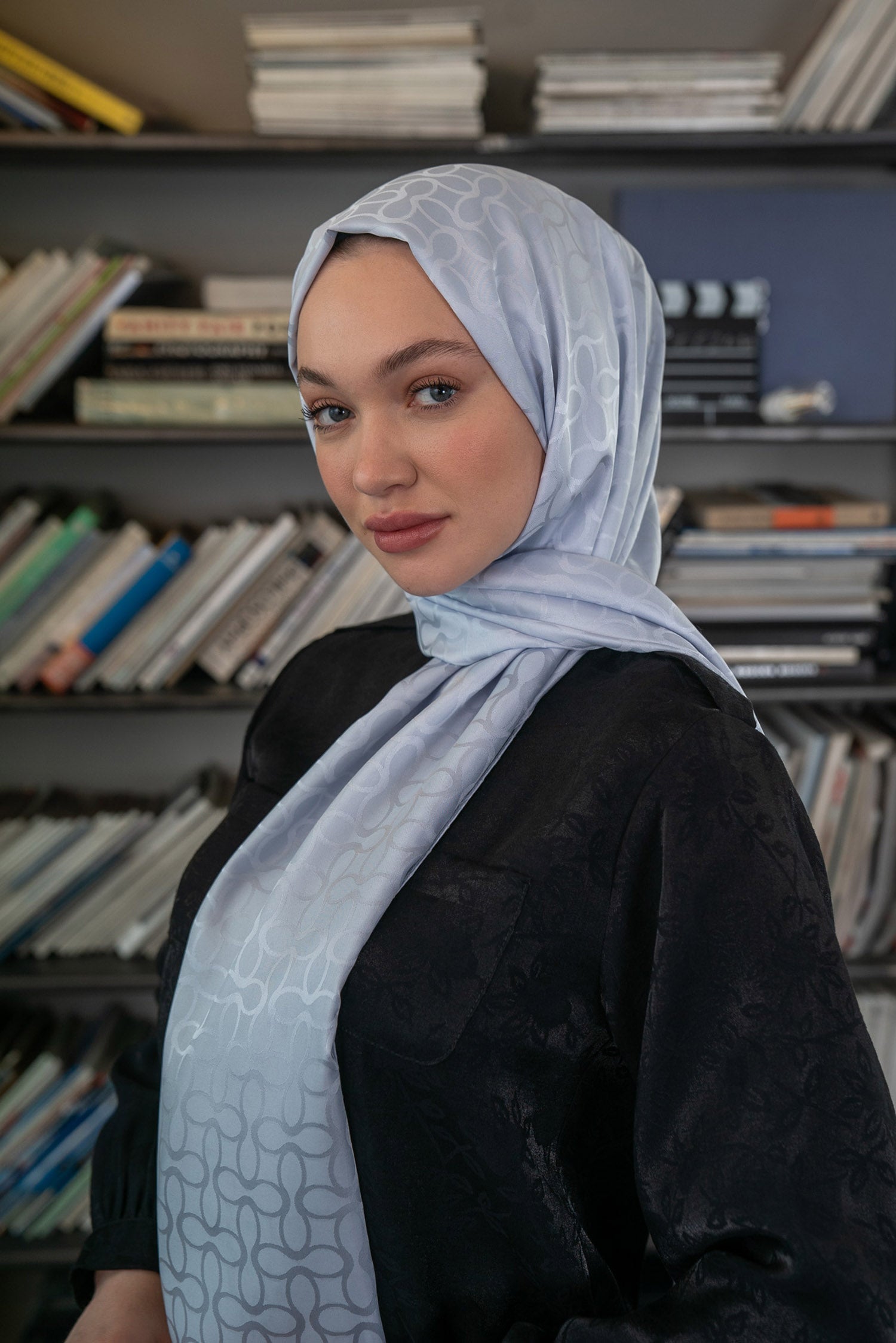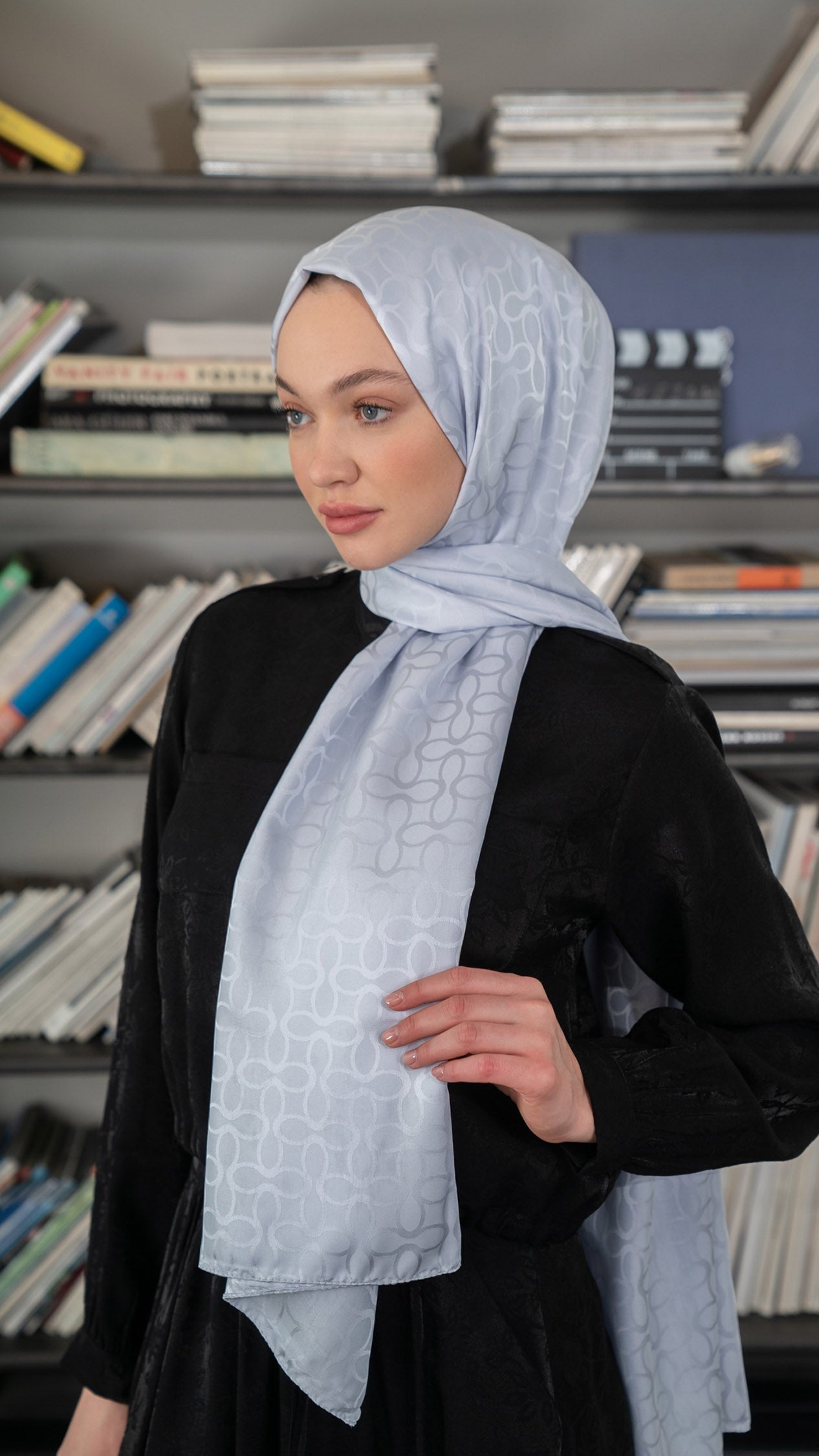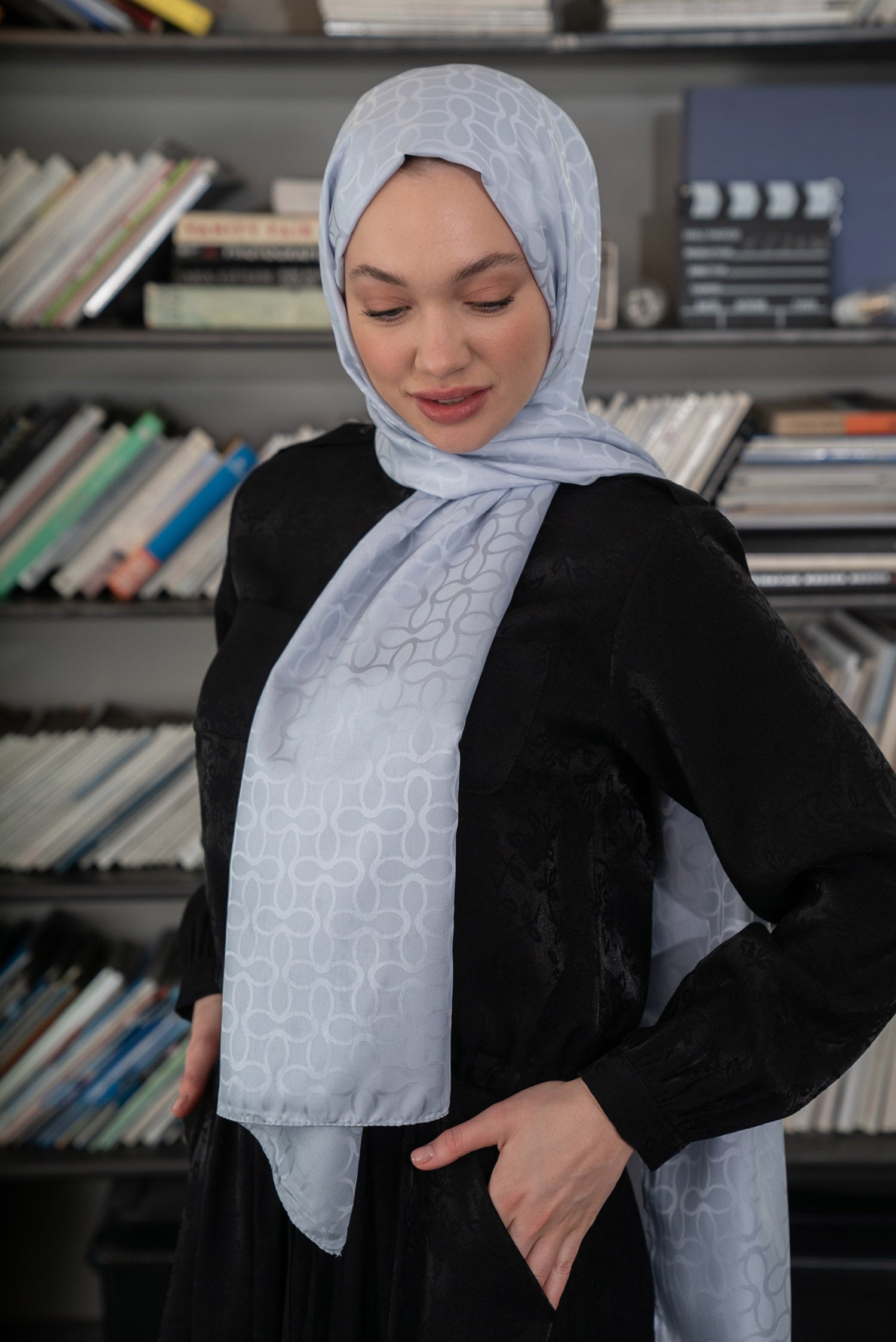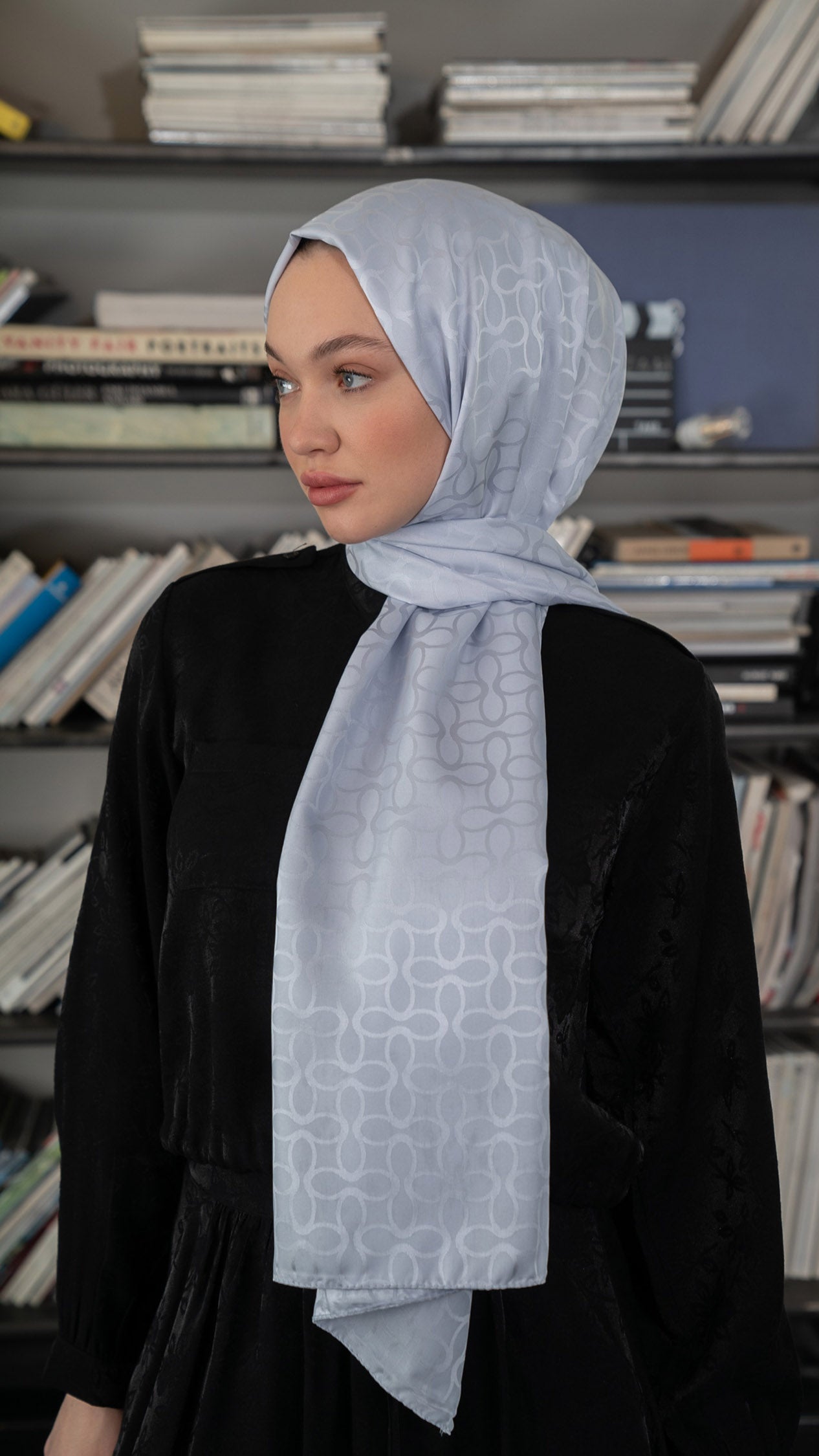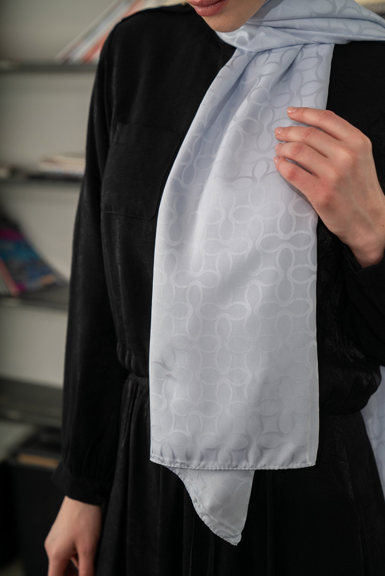 Bloom Desen İpeksi Jakar Şal Gümüş Gri
