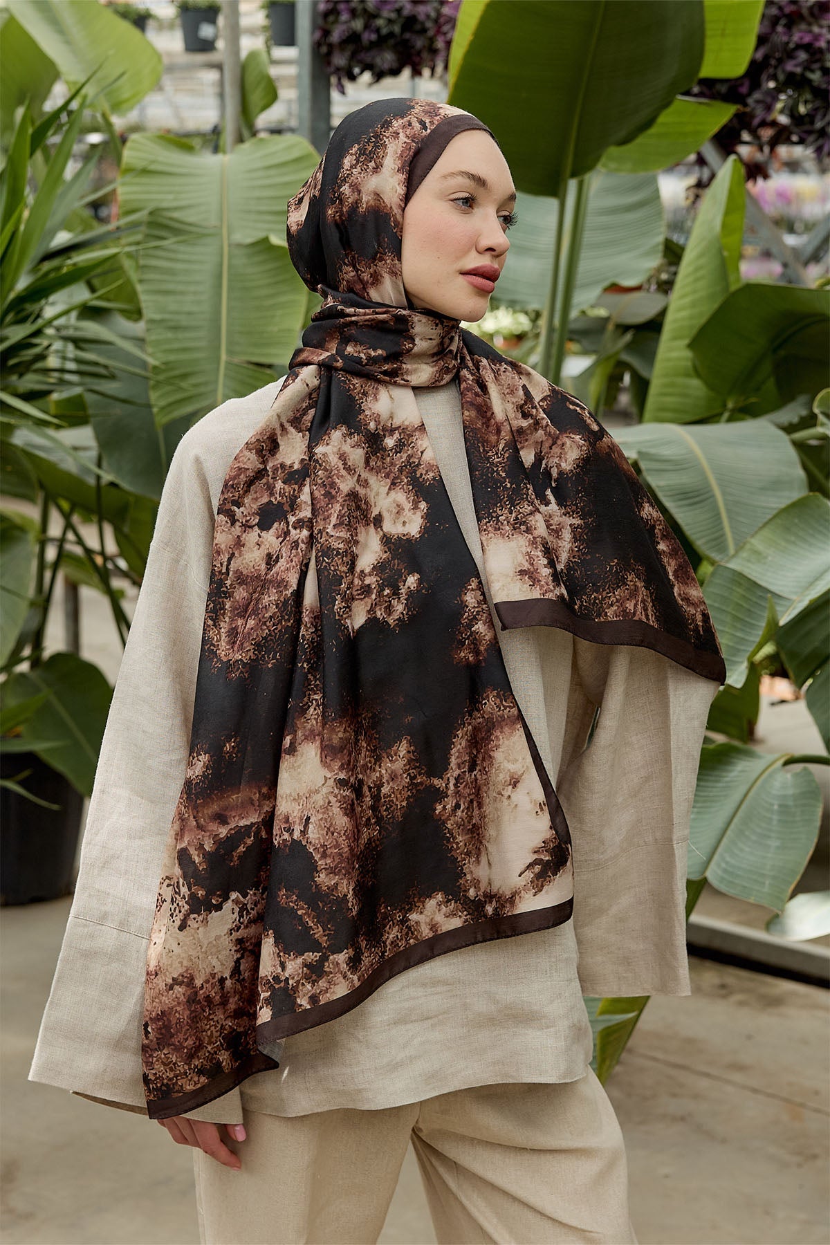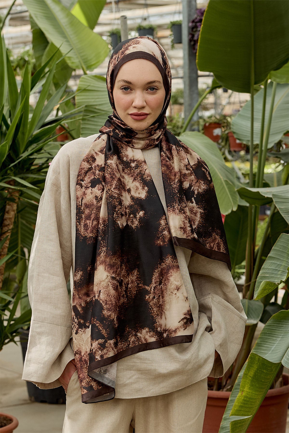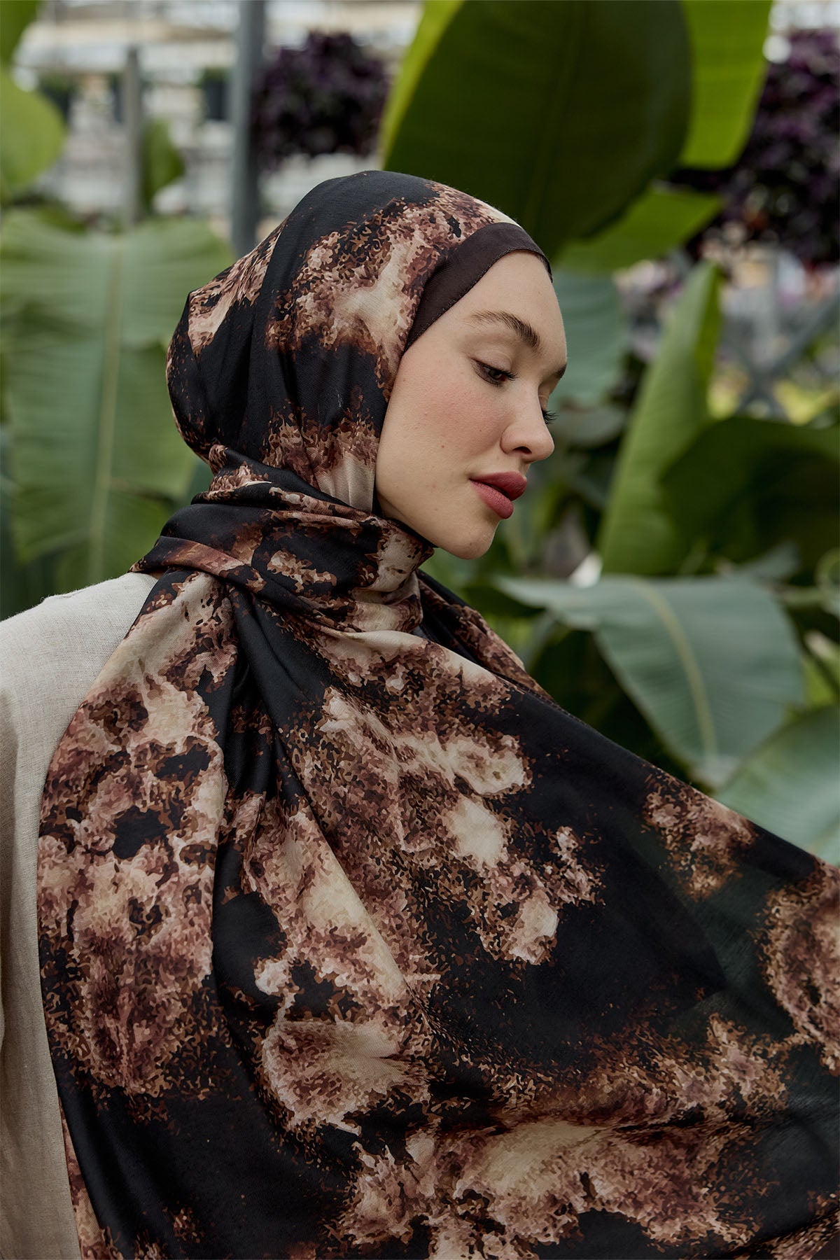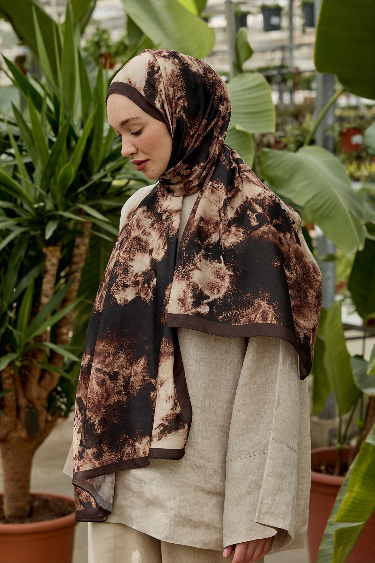 Kahverenginin sofistike tonlarıyla hazırlanan özgün deseni, sade kombinlerinize doğal bir şıklık kazandırırken, günün her anında rahat ve zarif bir görünüm sunar.