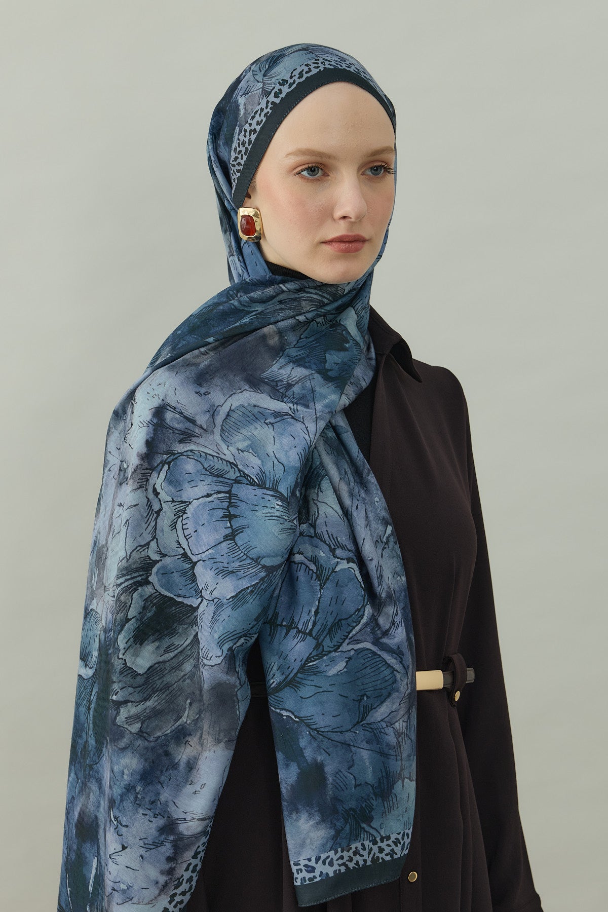 Bowery Draw Flowers Desen Şal İndigo