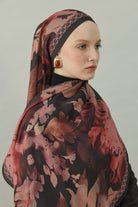 Bir kraliyet sarayının çiçeklerle bezenmiş bahçesinde gün batımının sıcak bordo tonlarıyla dans ettiği o büyülü manzarayı stilinize taşıyan bu şal, “Royal View” koleksiyonunun bordo rengiyle şıklığınıza aristokrat bir dokunuş kazandırıyor.