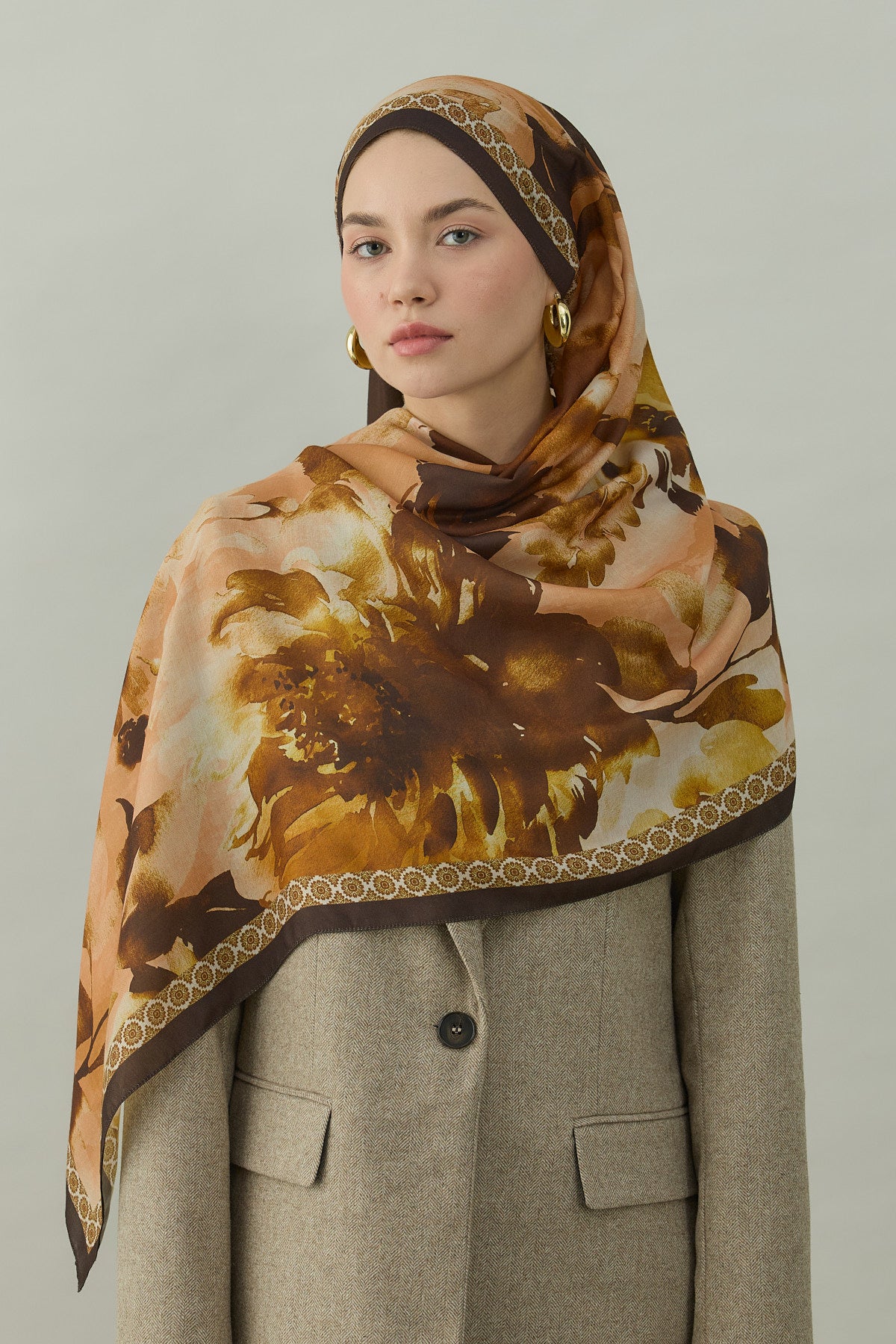 Bu şal, sadece bir aksesuar değil; kraliyet sarayının bahçesinde yükselen toprak tonundaki çiçeklerin zarif duruşu, premium kumaş karışımının sunduğu konfor, ve stilinizde yarattığı seçkin karakter ile birlikte geliyor. Camel tonu ile kombinlerinize rustik bir sıcaklık, zamansız bir şıklık ve doğal bir duruş kazandırın.