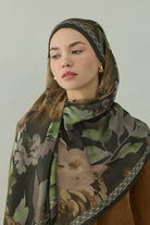 Bu şal, yalnızca bir aksesuar değil; kraliyet sarayının çiçekli bahçesinde hafifçe yükselen haki tonlu yaprakların zarafeti, premium kumaşın sunduğu kullanım kolaylığı ve şık stilinize kattığı özel dokunuş ile stilinize değer katıyor. Haki tonuyla kombinlerinize doğallık, sakin şıklık ve zamansız bir duruş kazandırmak isteyenler için ideal bir tercih.