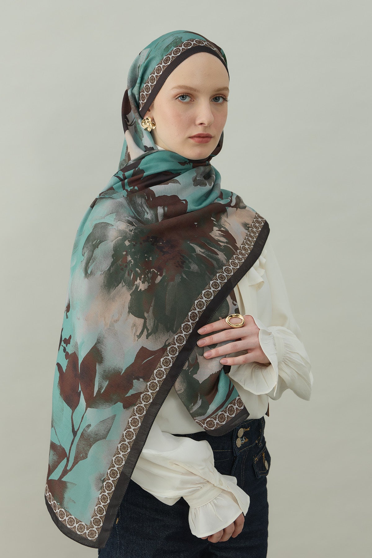 Tok, dökümlü ve hafif duruş, şalın hem estetik hem kullanım açısından şık kalmasını sağlar.