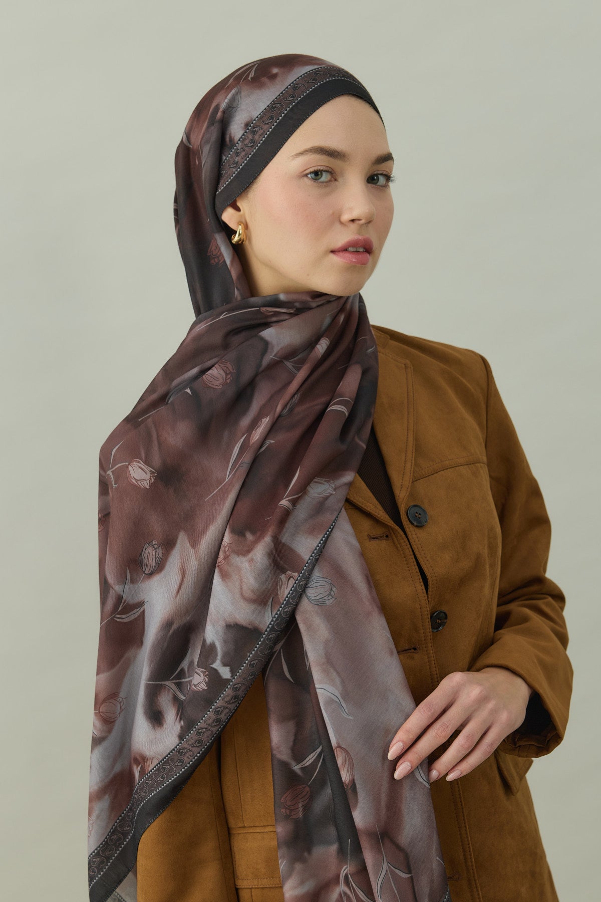 Bowery Tulip Era Desen Şal Kahverengi