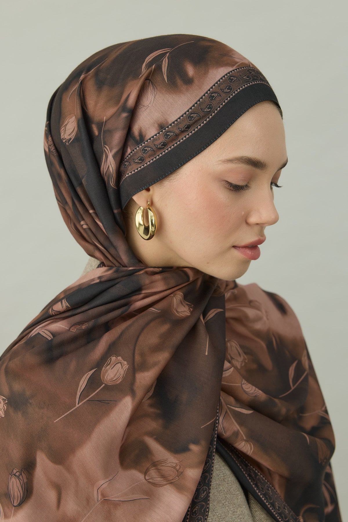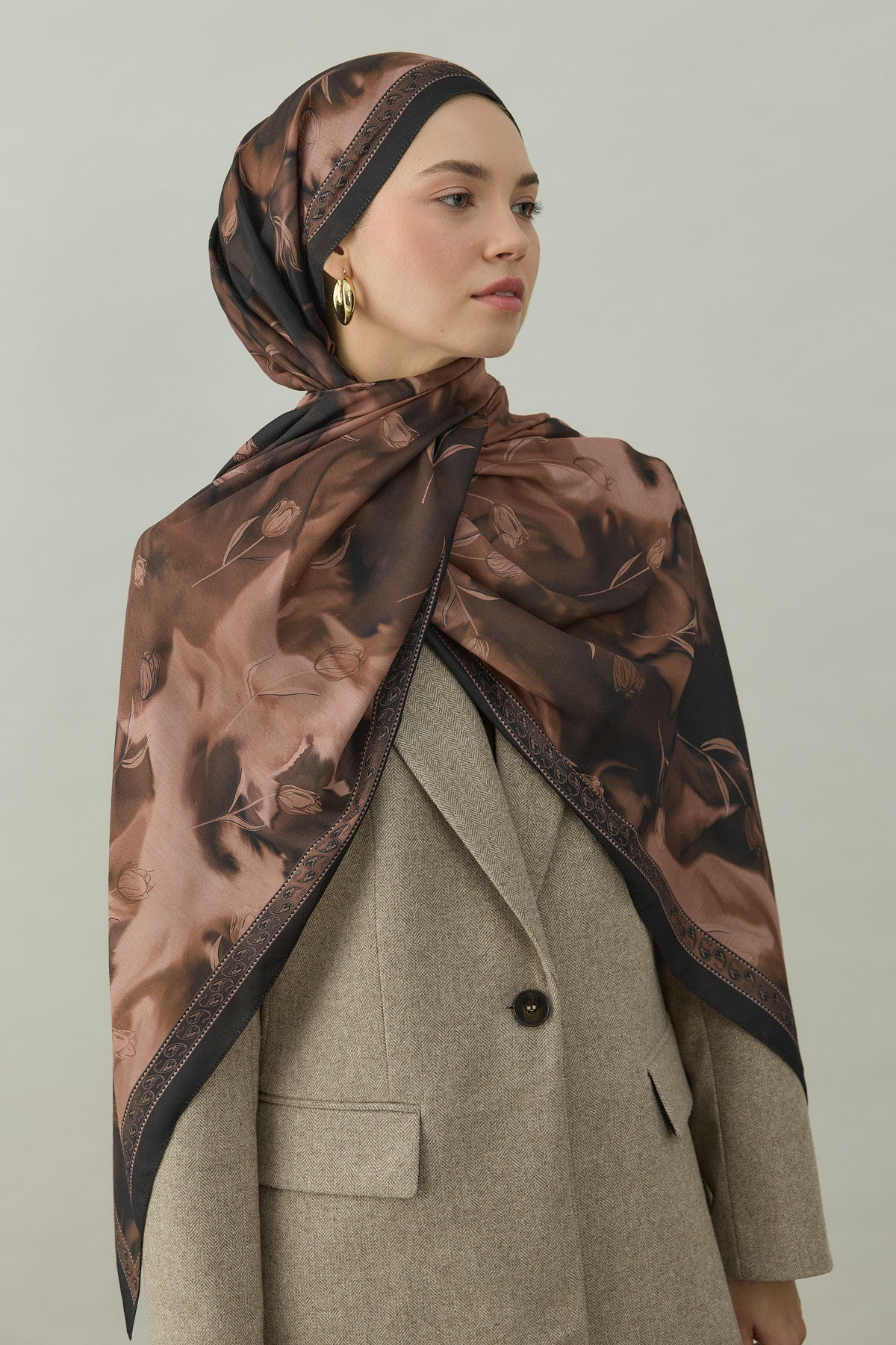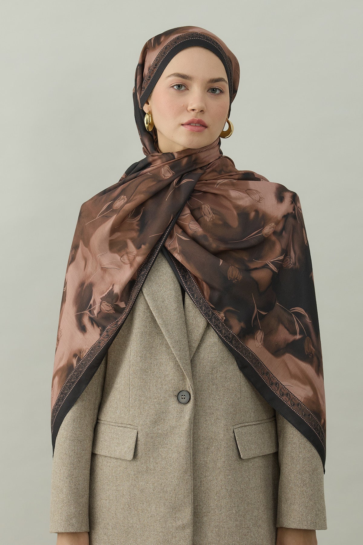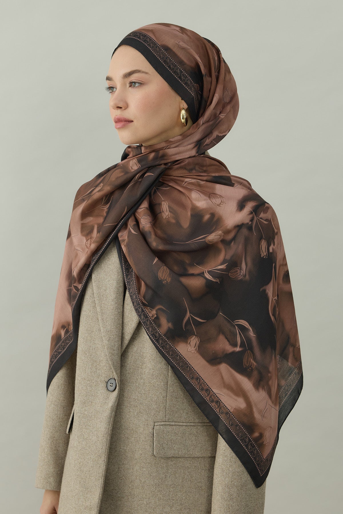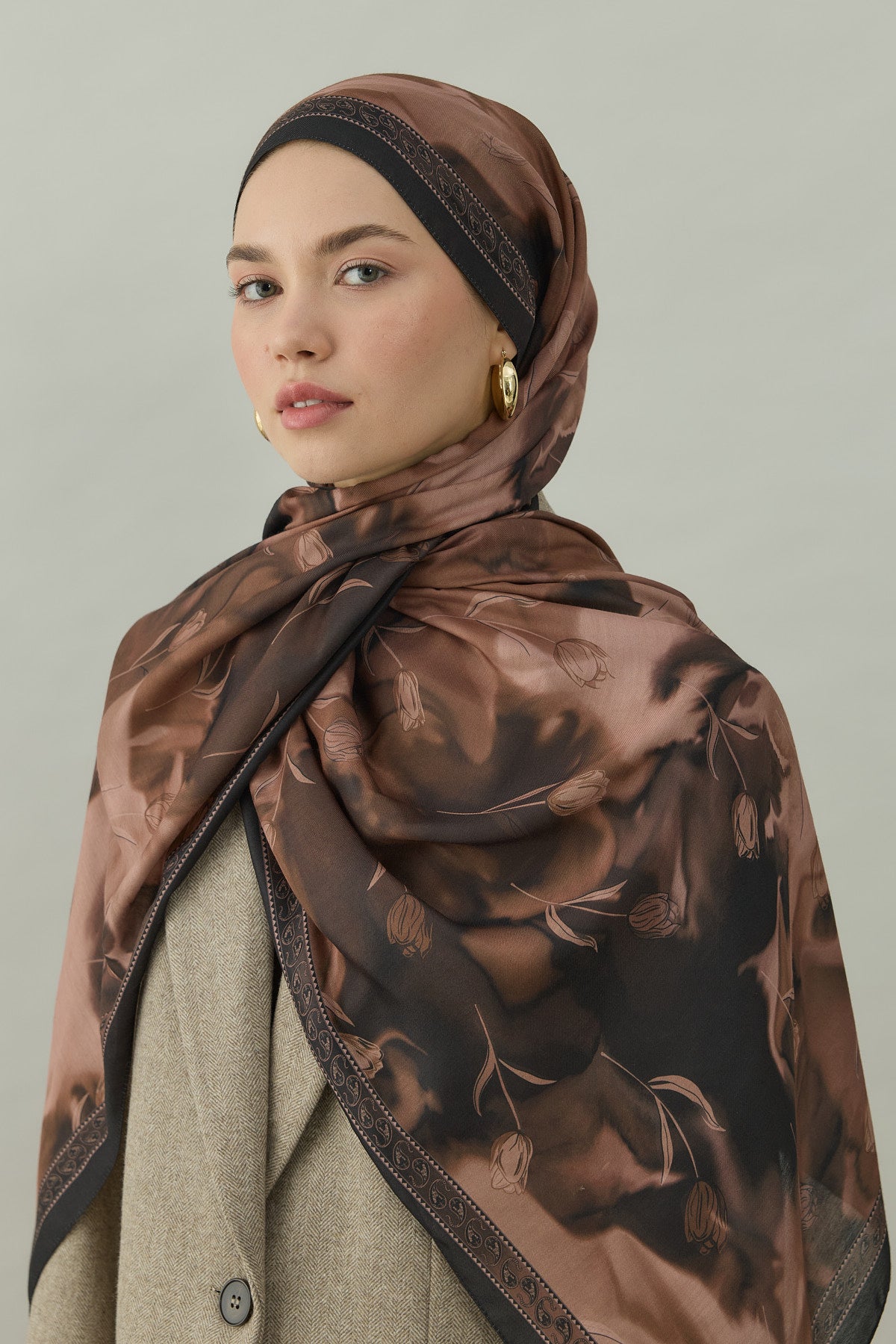 Bowery Tulip Era Desen Şal – Kızıl Kahve, lalenin zarif motifleriyle koyu kahverengi tonlarının sofistike dokusunu bir araya getiriyor. “Tulip Era” isminin de ilham kaynağı olan bu desen serisi, stilinize klasik bir duruş ve sade ama etkili bir detay kazandırıyor.