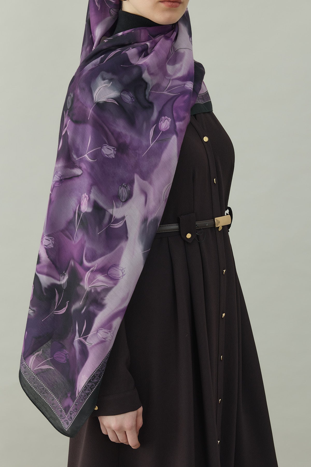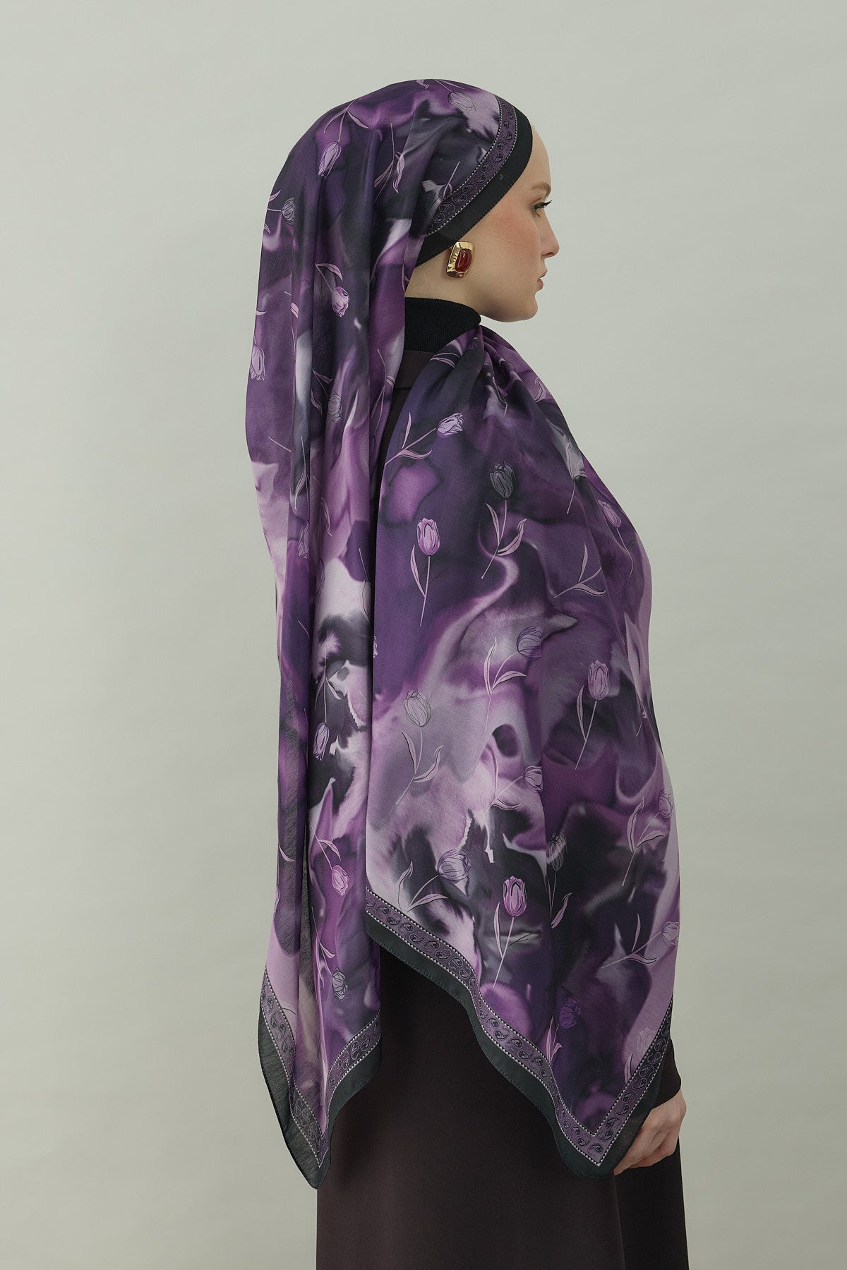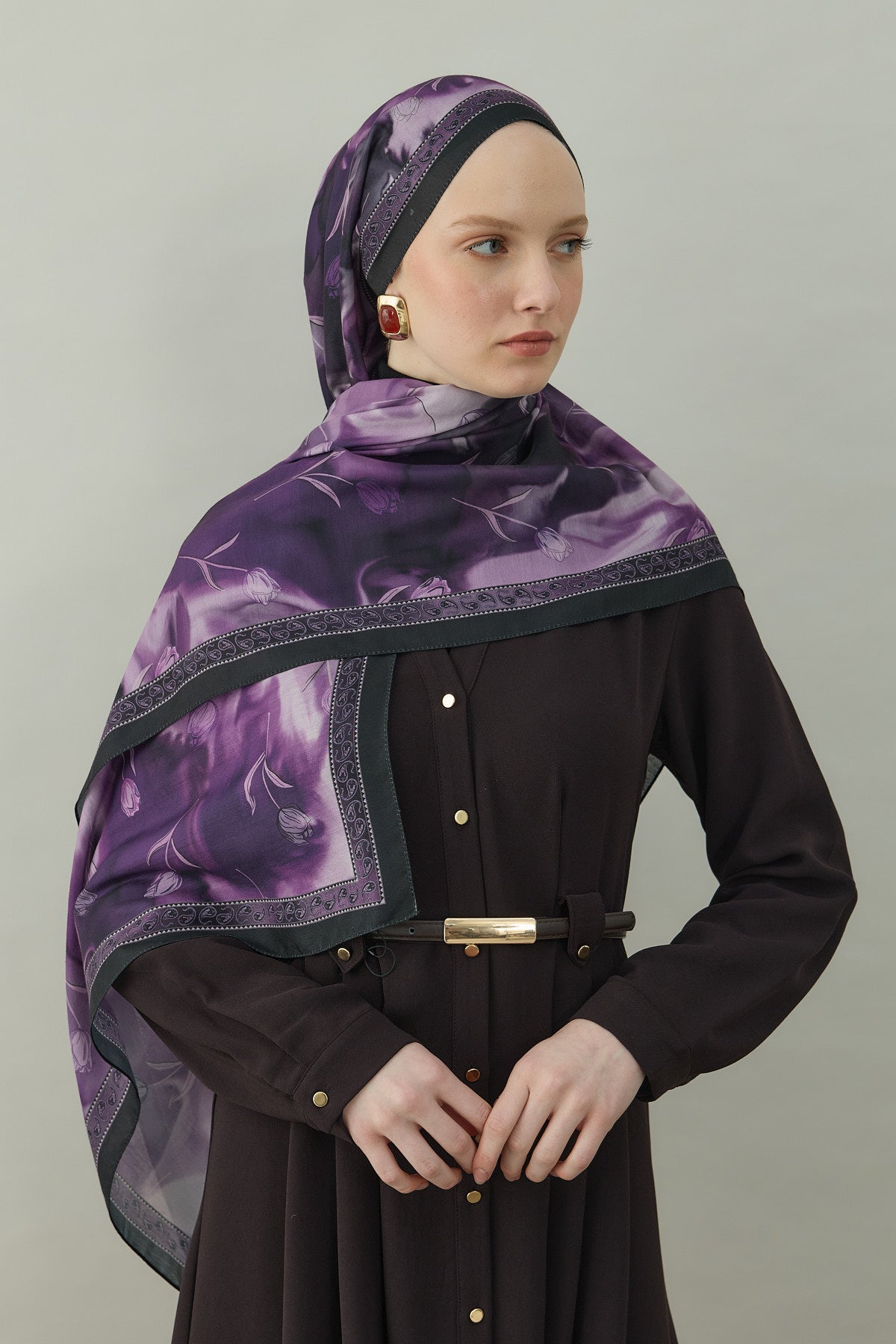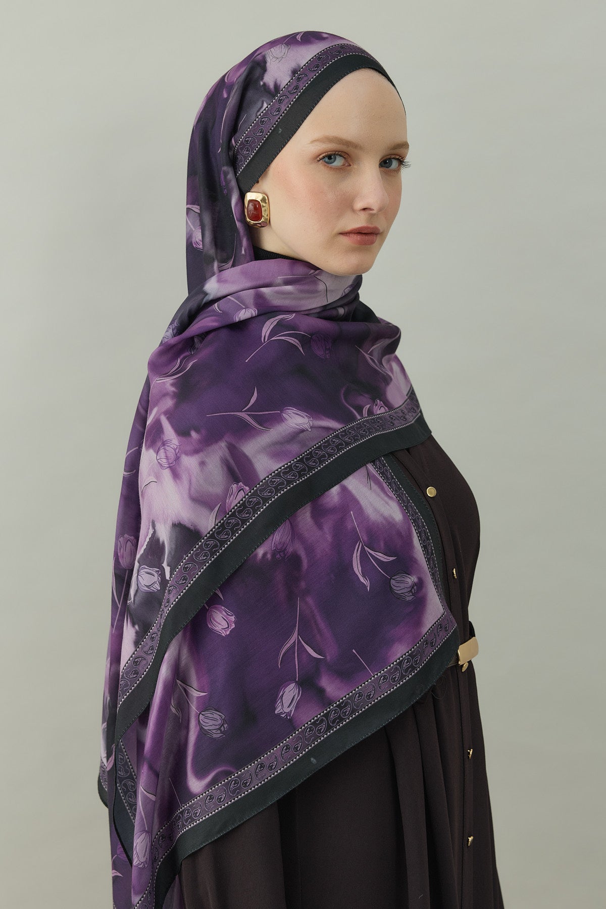 Bowery Tulip Era Desen Şal – Mor, sadece bir şal değil; mor rengin derin ifadesi, lale motiflerin zarif dokusu ve kumaşın konforlu karışımı ile stilinize karakter kazandırır.