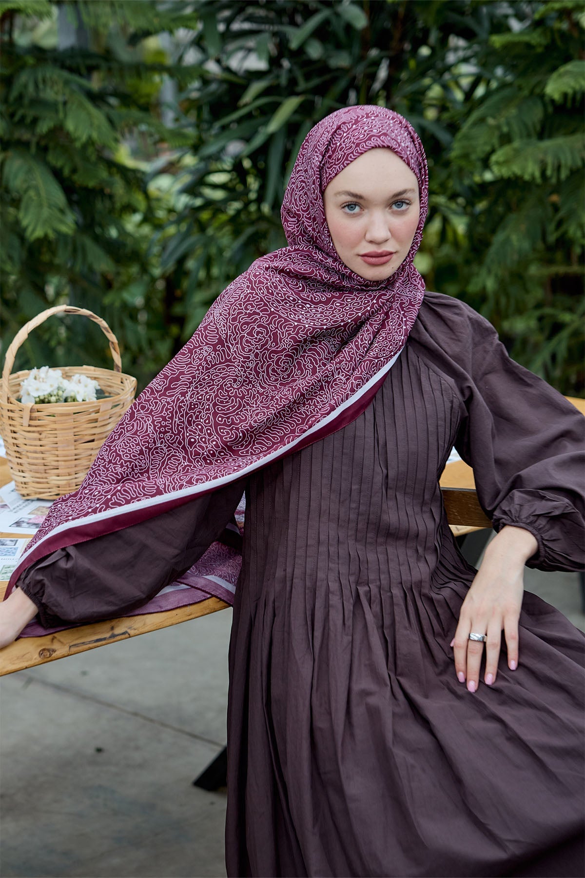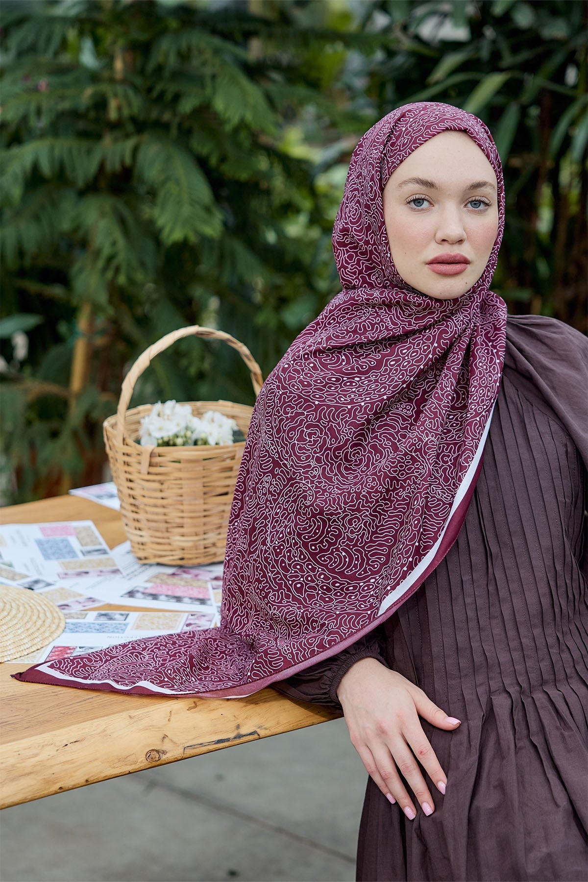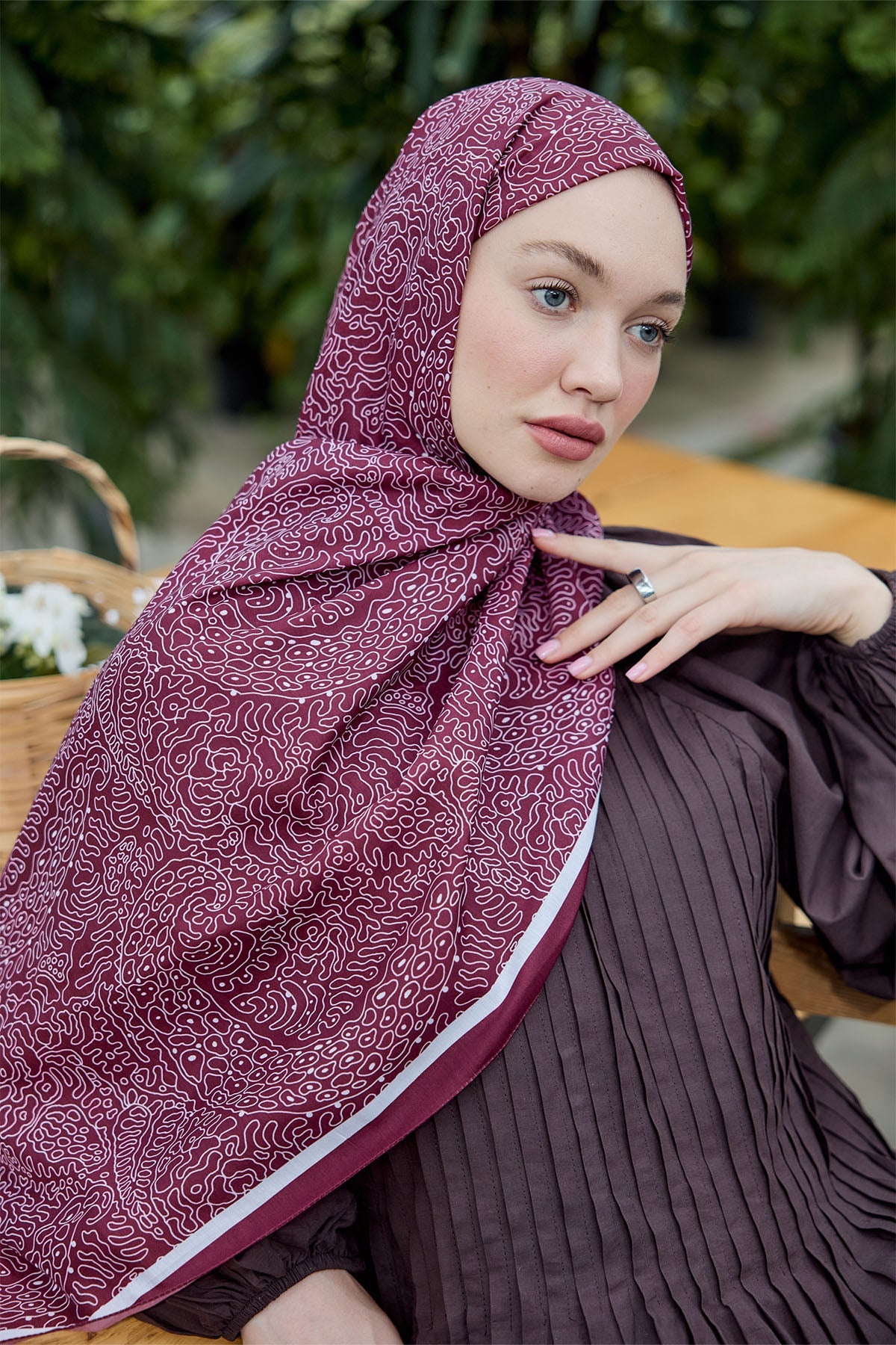 Confor Desen Şal – Bordo, sadece bir şal değil; bordo rengin derinliği, desenin dinamizmi ve kumaşın konforuyla birleşen zarif bir ifade sunar.