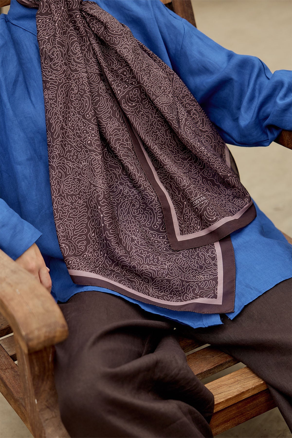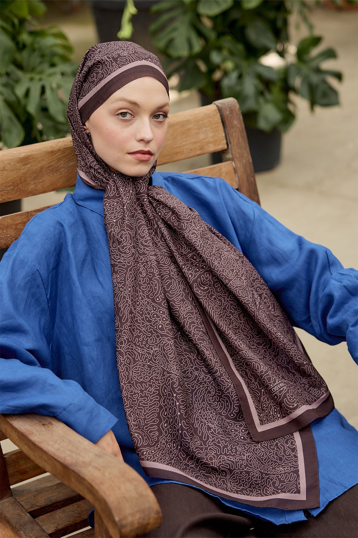 Confor Desen Şal – Kahverengi, sadece bir aksesuar değil; toprak tonlarının sıcaklığı, desenin canlılığı ve kumaşının rahatlığıyla bir bütün oluşturur.