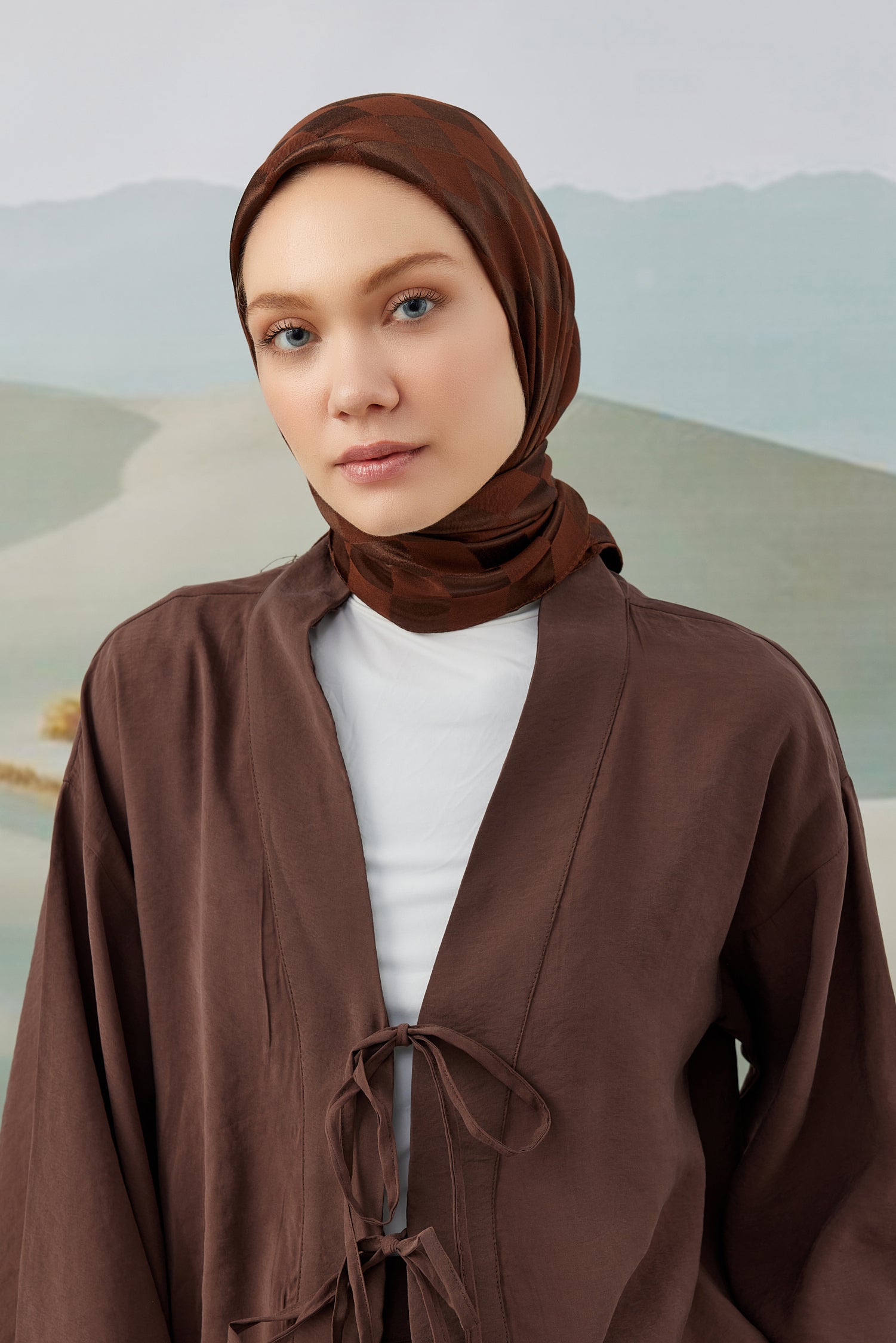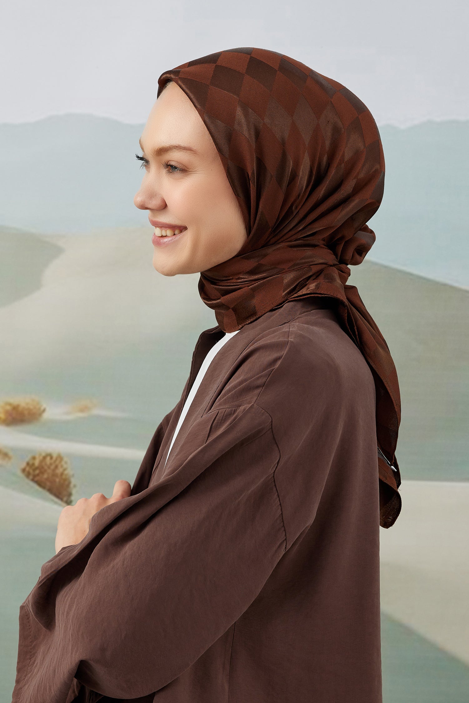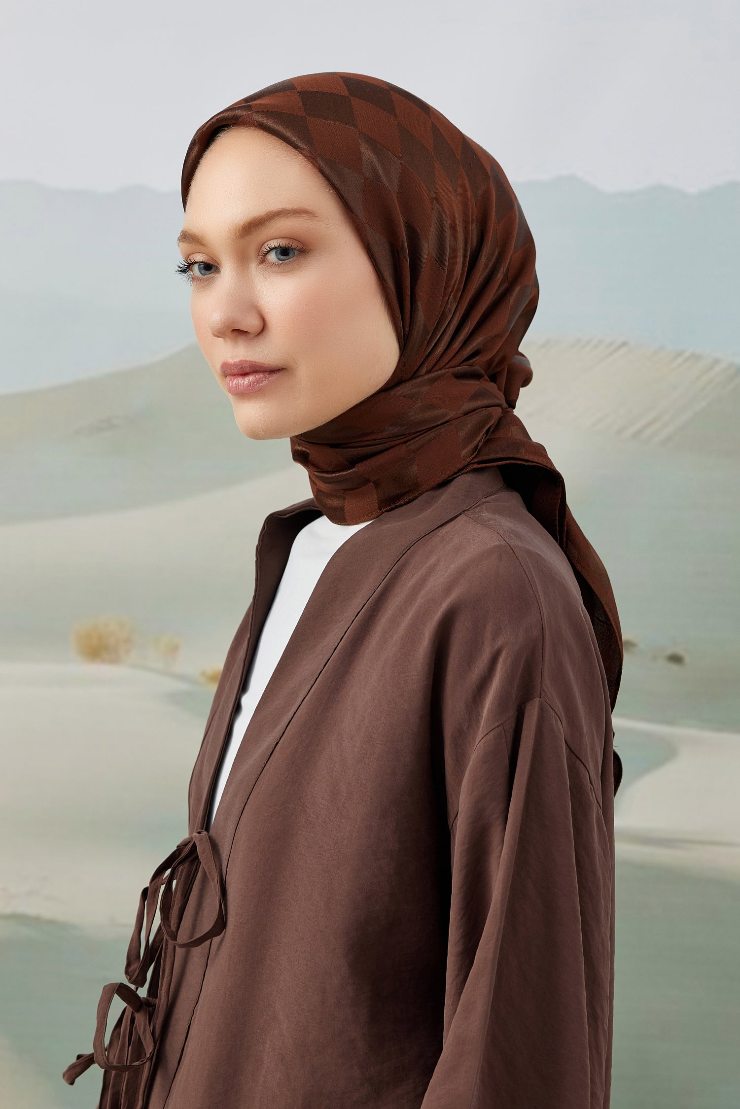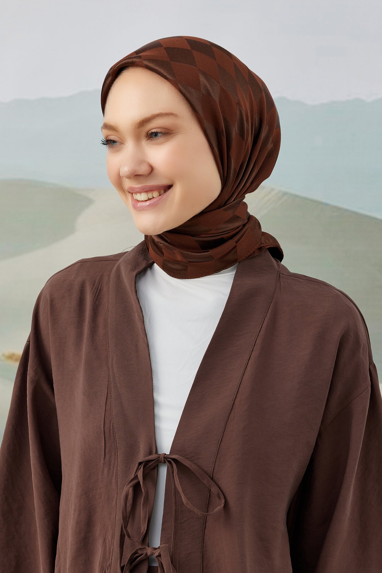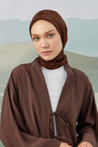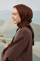 Dama Desen İpeksi Parlak Jakar Eşarp Acı Kahve