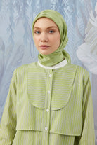 Dama Desen İpeksi Parlak Jakar Eşarp Fıstık Yeşili