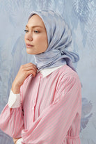 Dama Desen İpeksi Parlak Jakar Eşarp Gümüş Gri