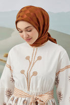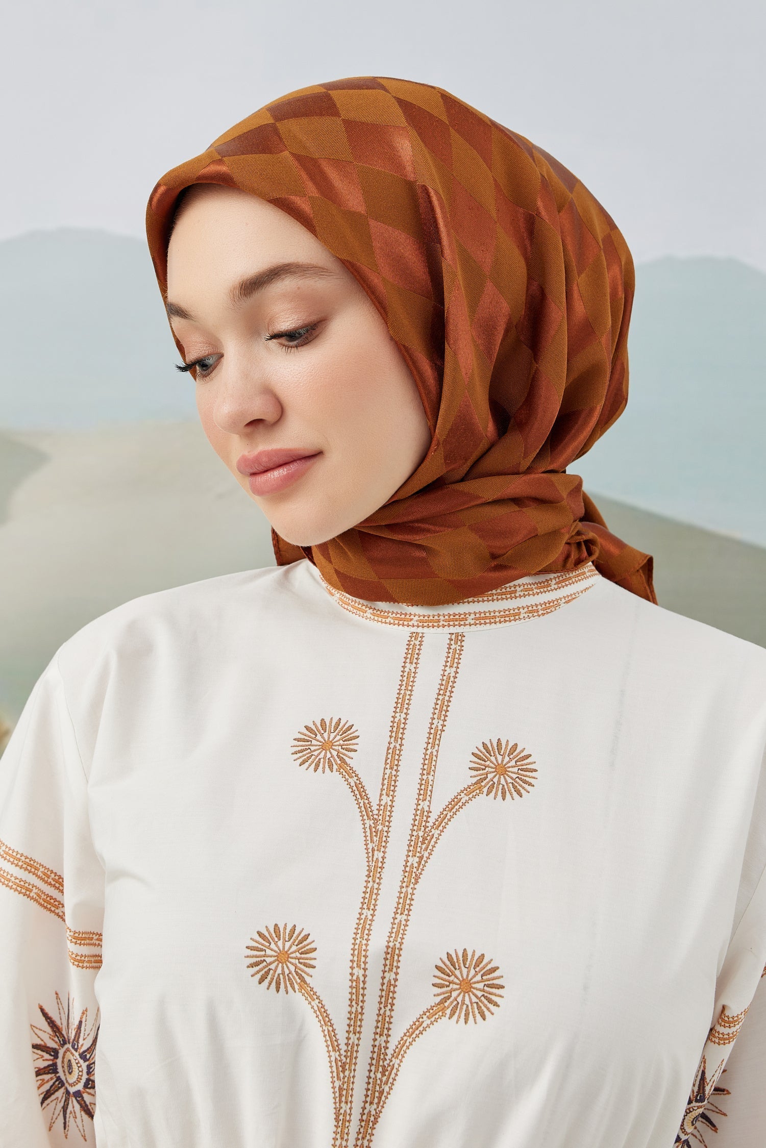 Dama Desen İpeksi Parlak Jakar Eşarp Kiremit