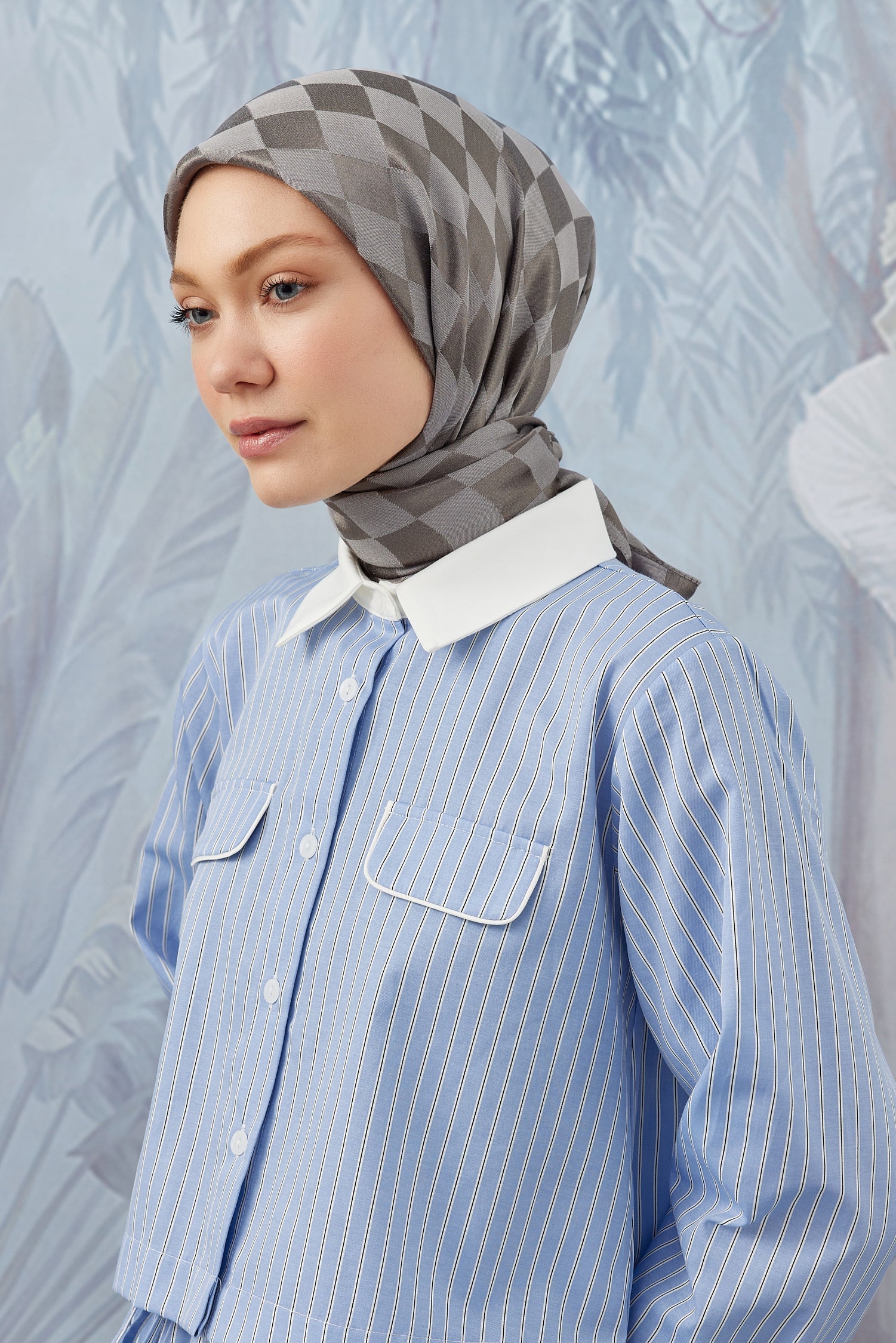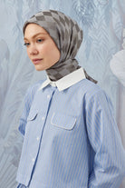 Dama Desen İpeksi Parlak Jakar Eşarp Koyu Gri