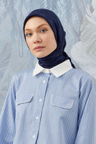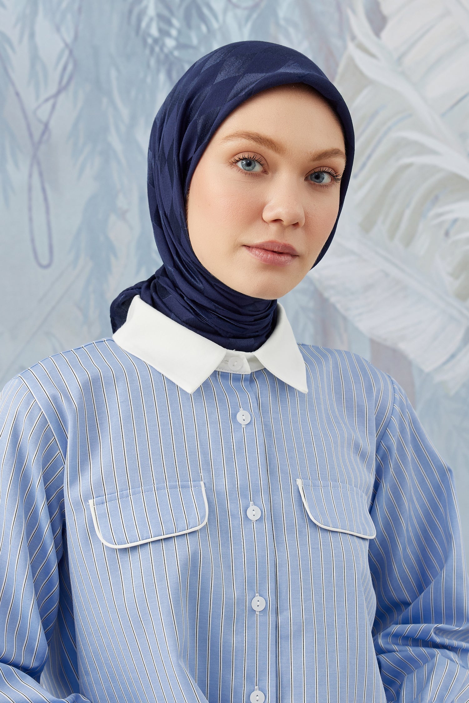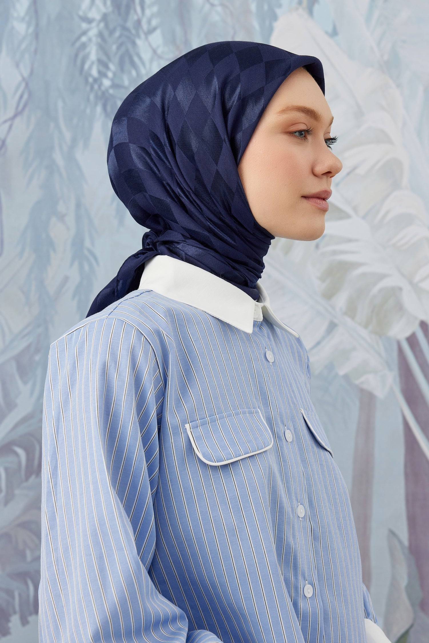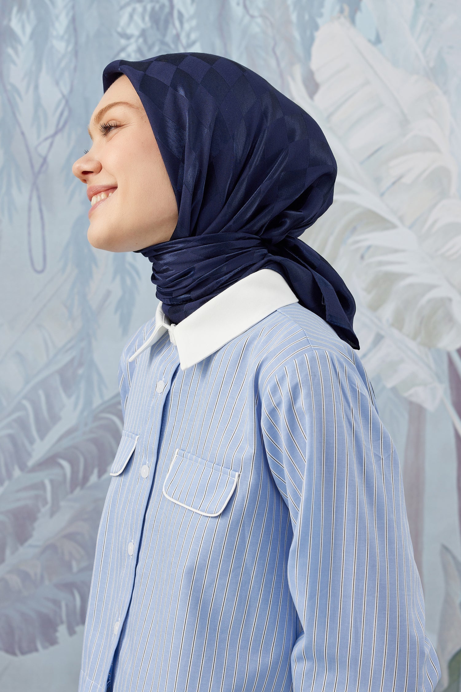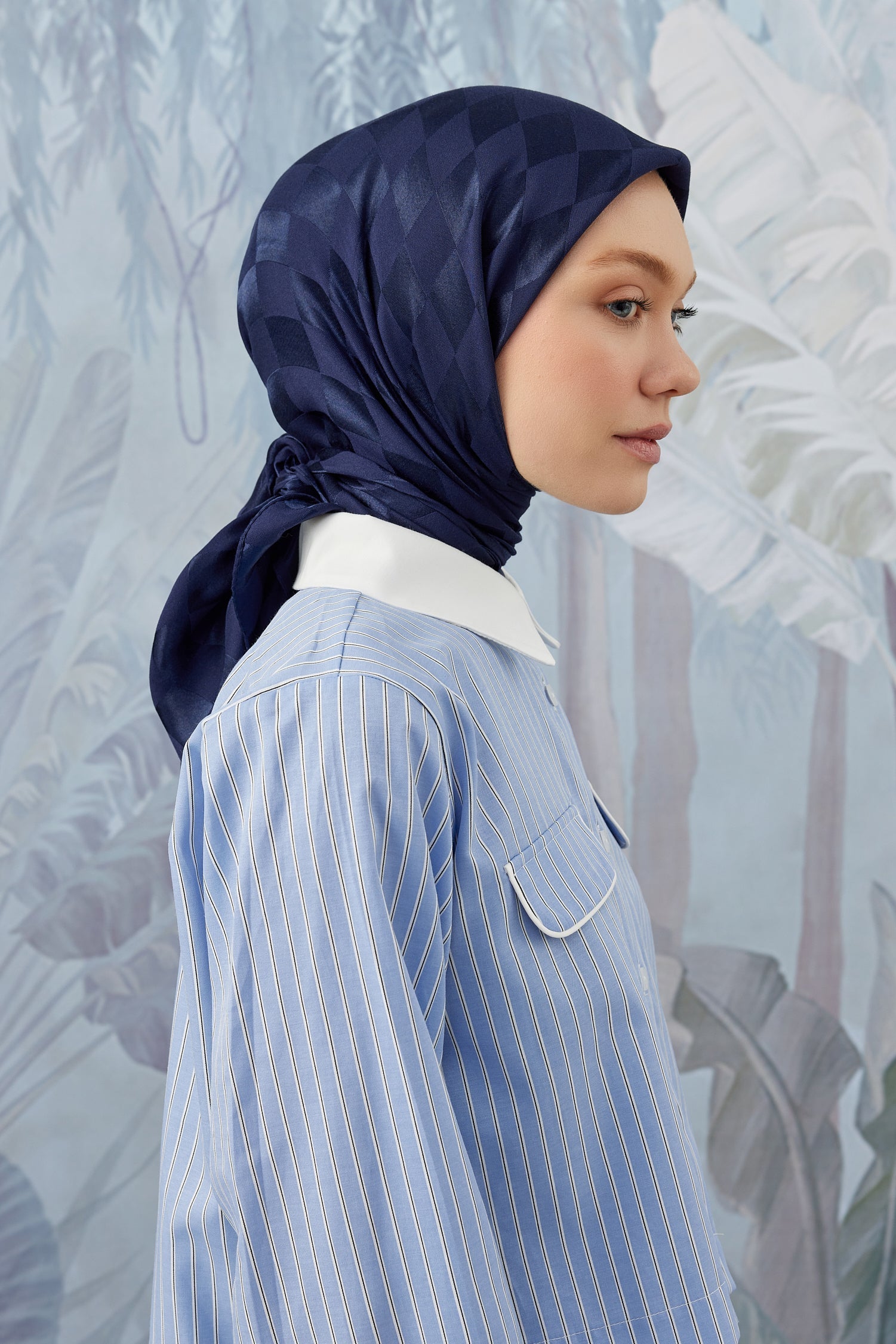 Dama Desen İpeksi Parlak Jakar Eşarp Lacivert