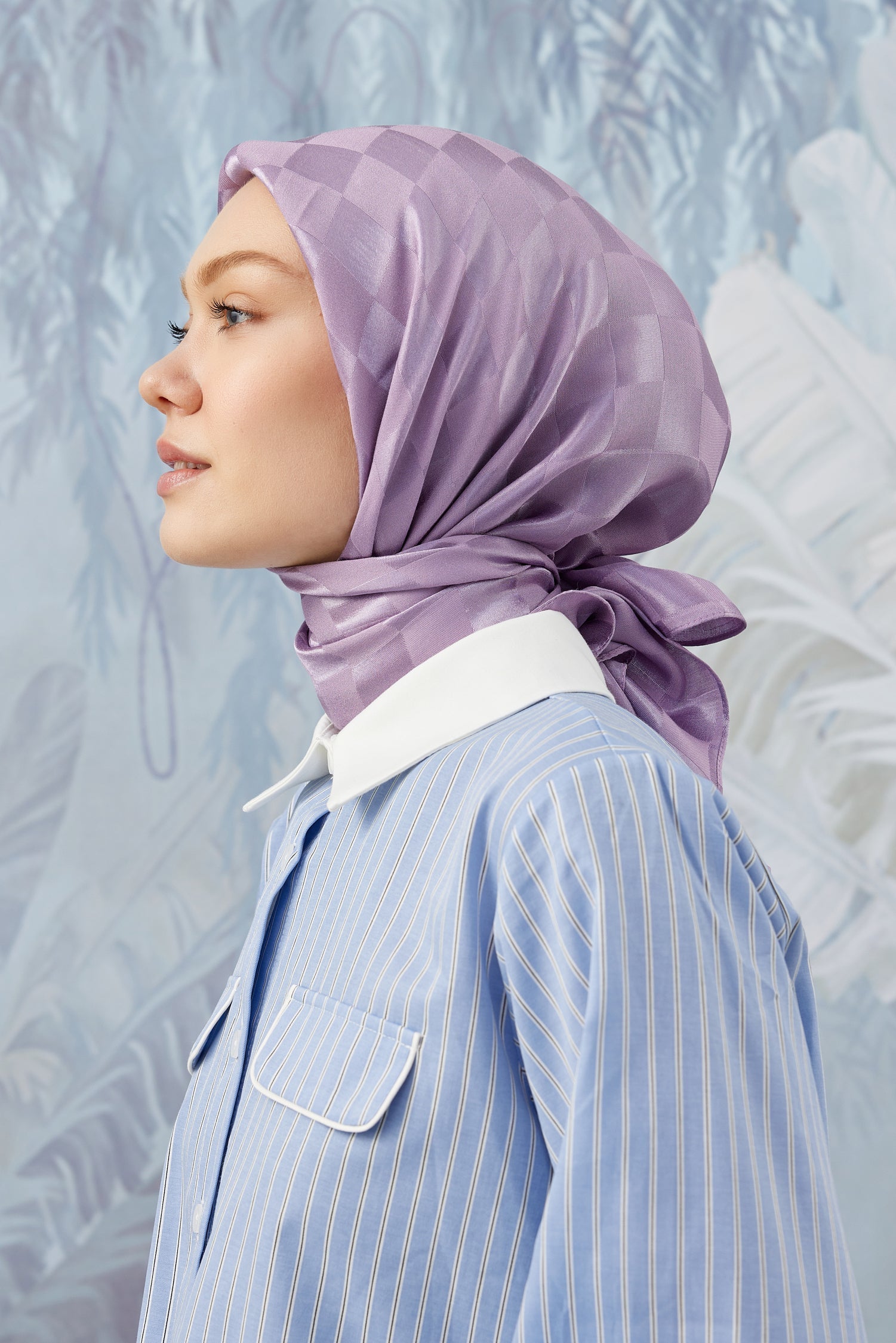Dama Desen İpeksi Parlak Jakar Eşarp Lavanta