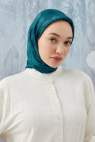 Dama Desen İpeksi Parlak Jakar Eşarp Petrol Yeşili