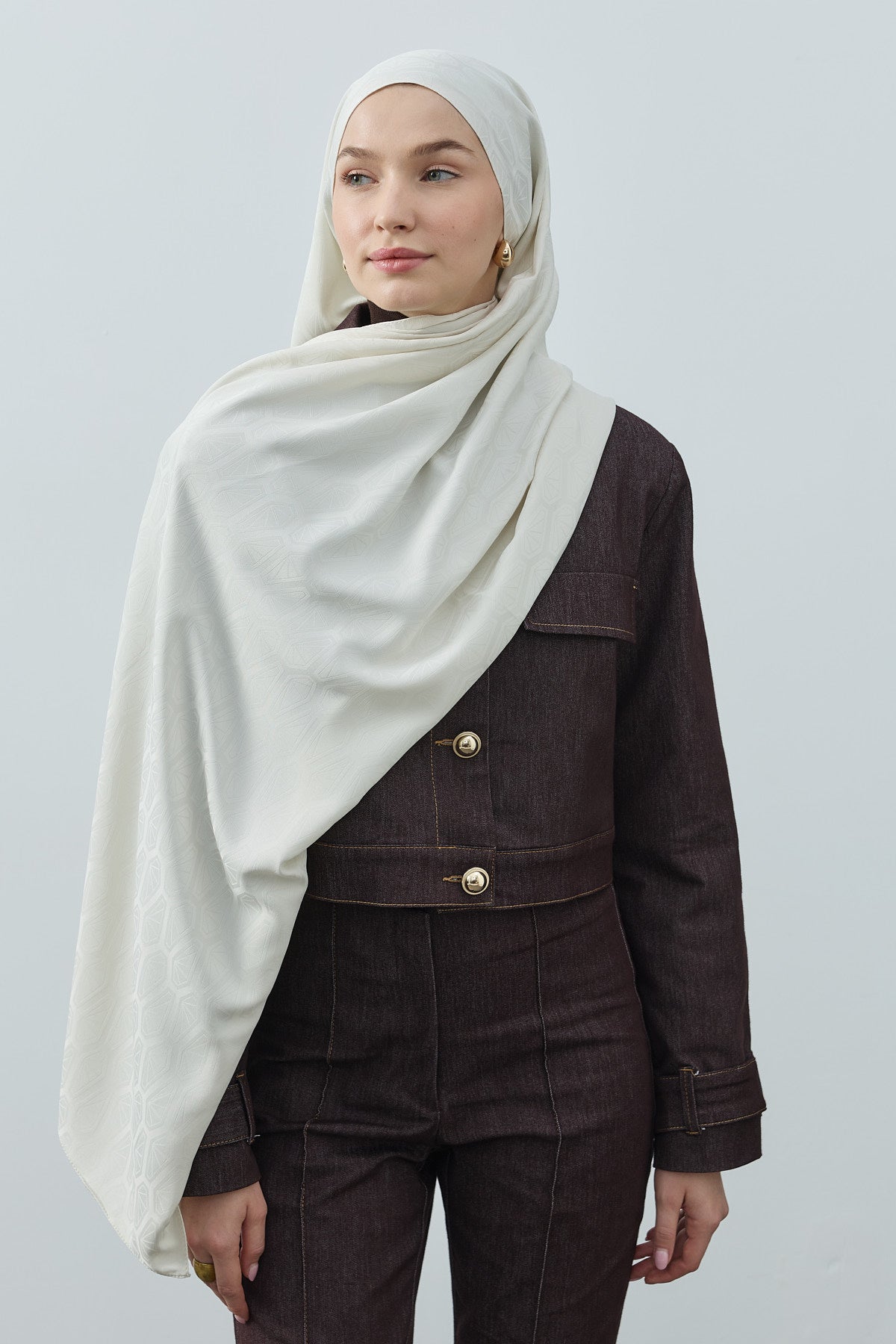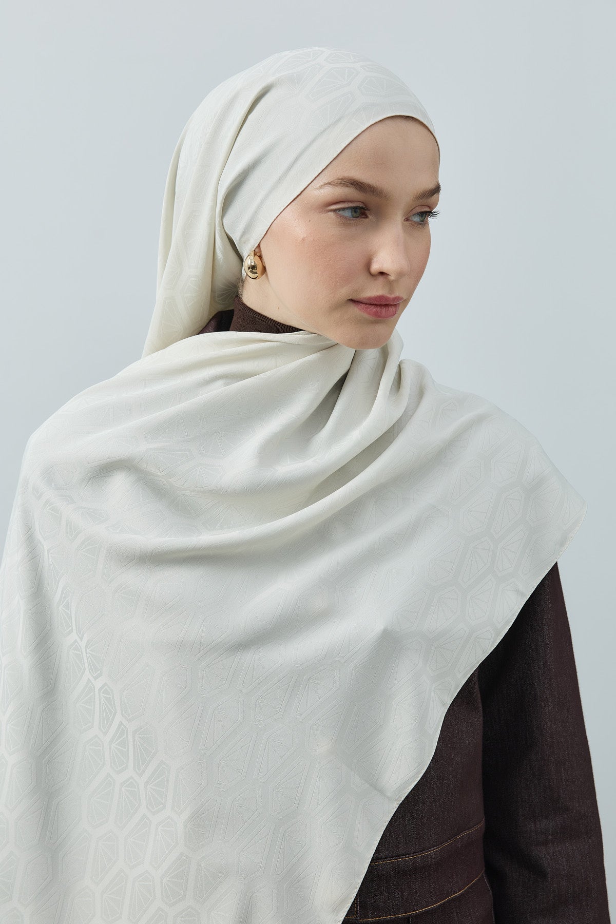 Elmas Desen İpeksi Jakar Şal Ekru
