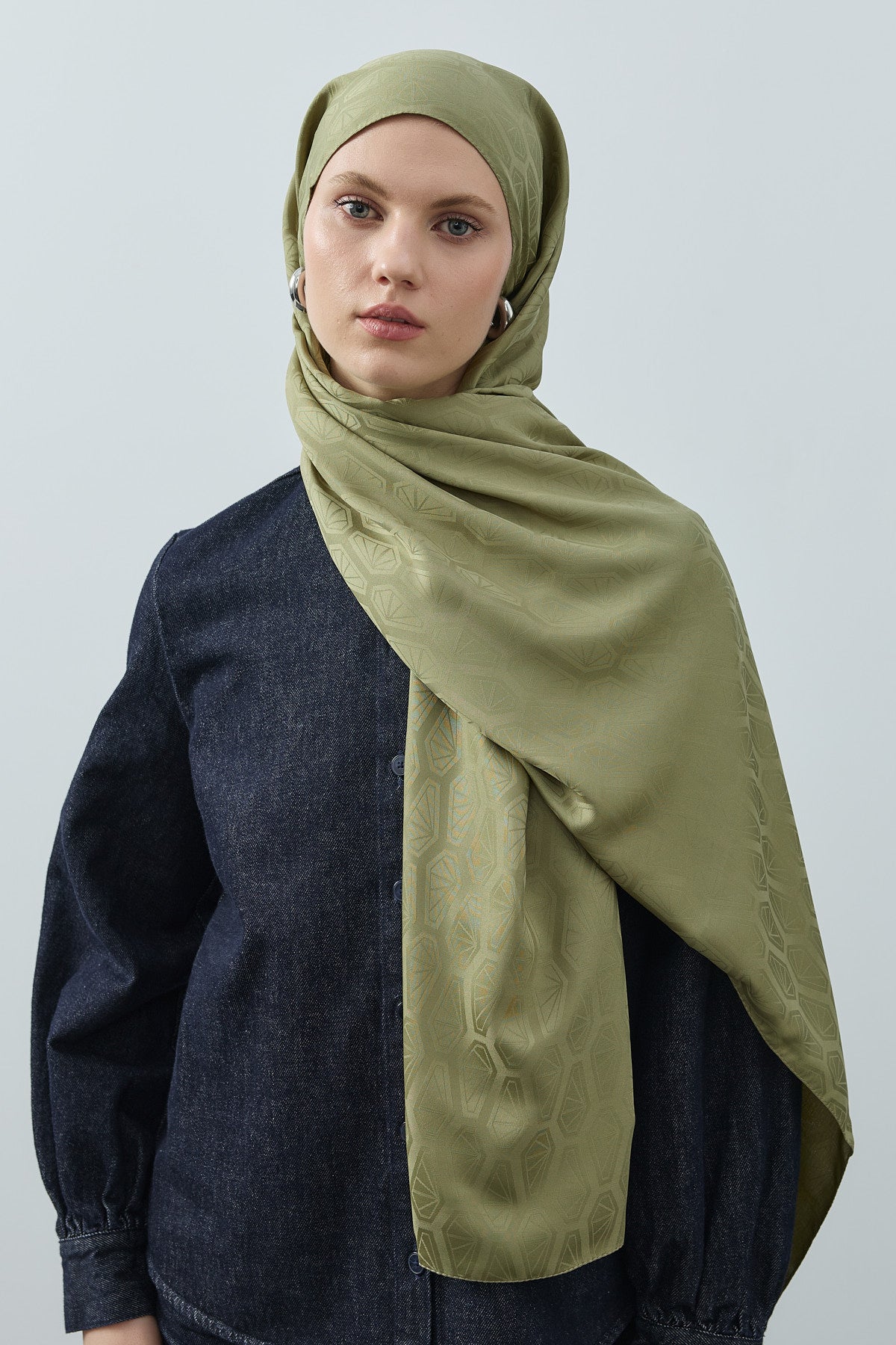 Elmas Desen İpeksi Jakar Şal Yağ Yeşili