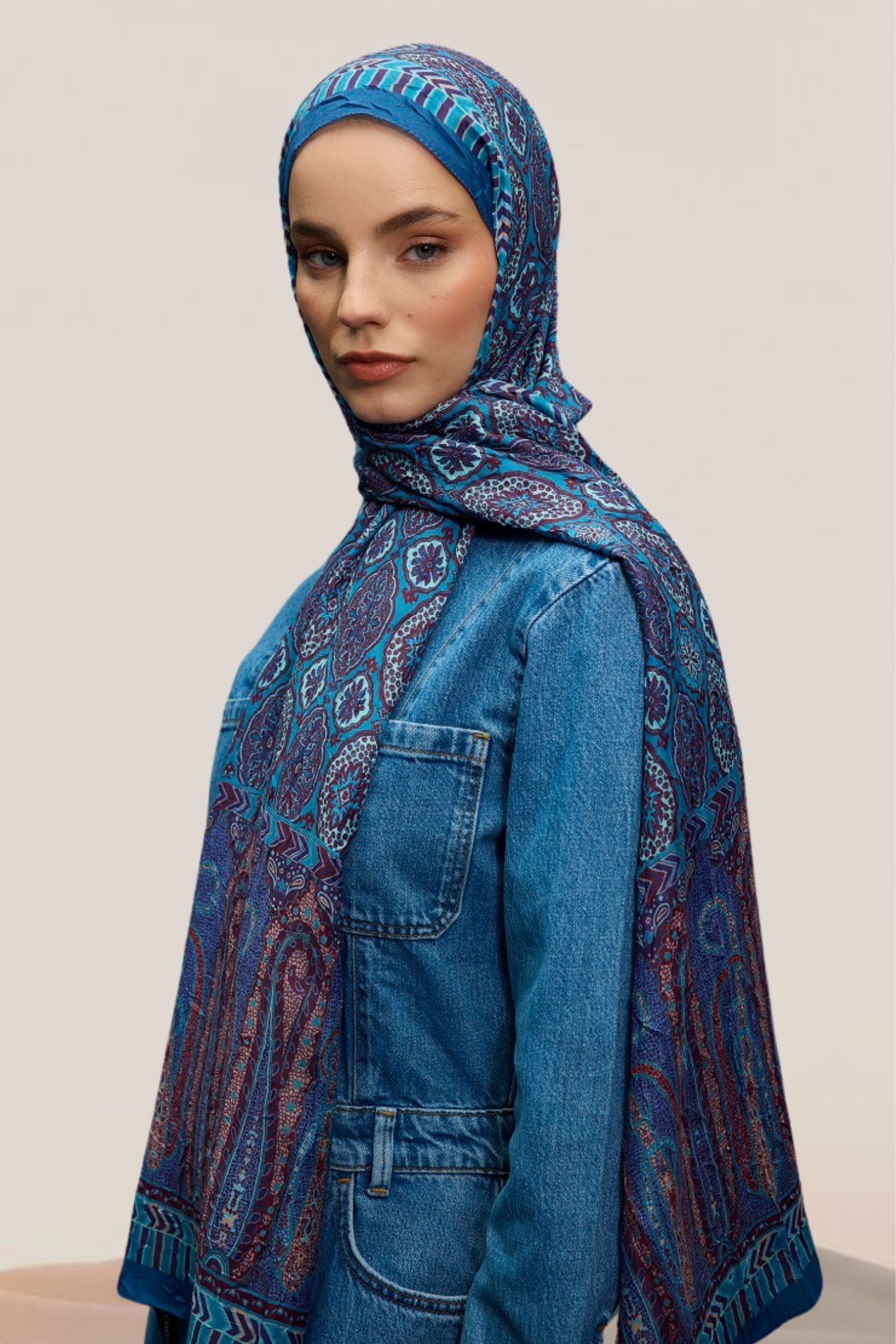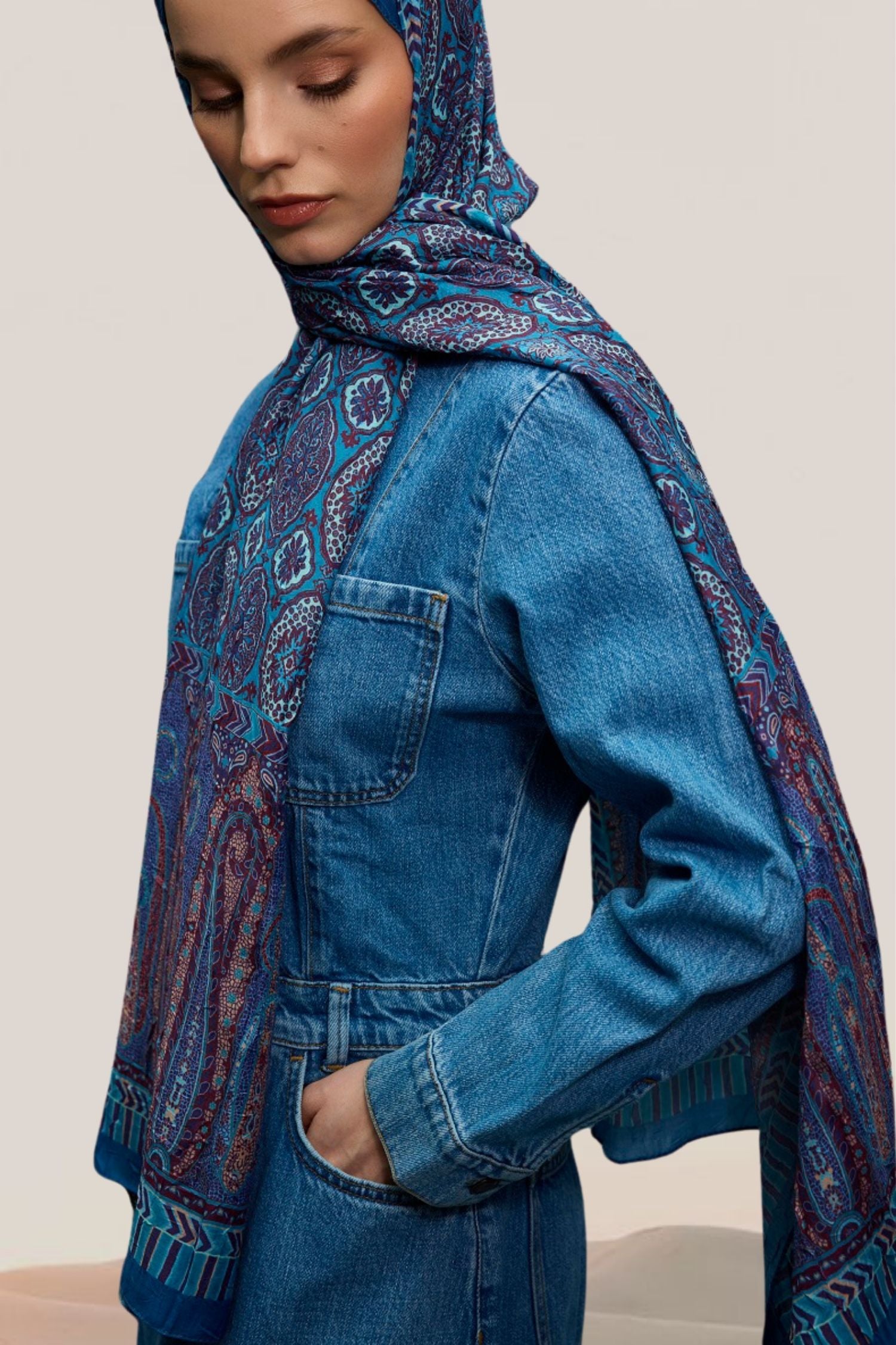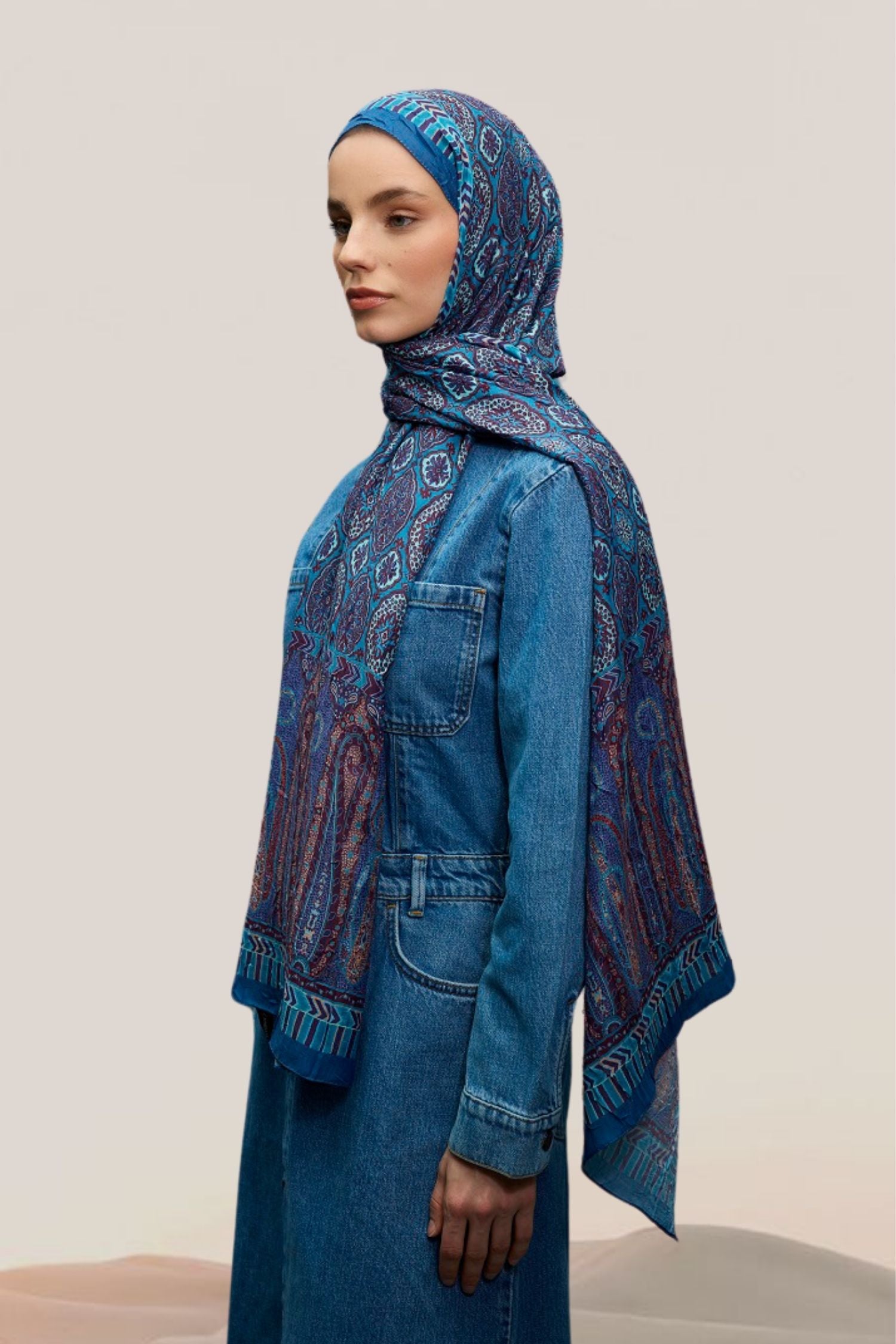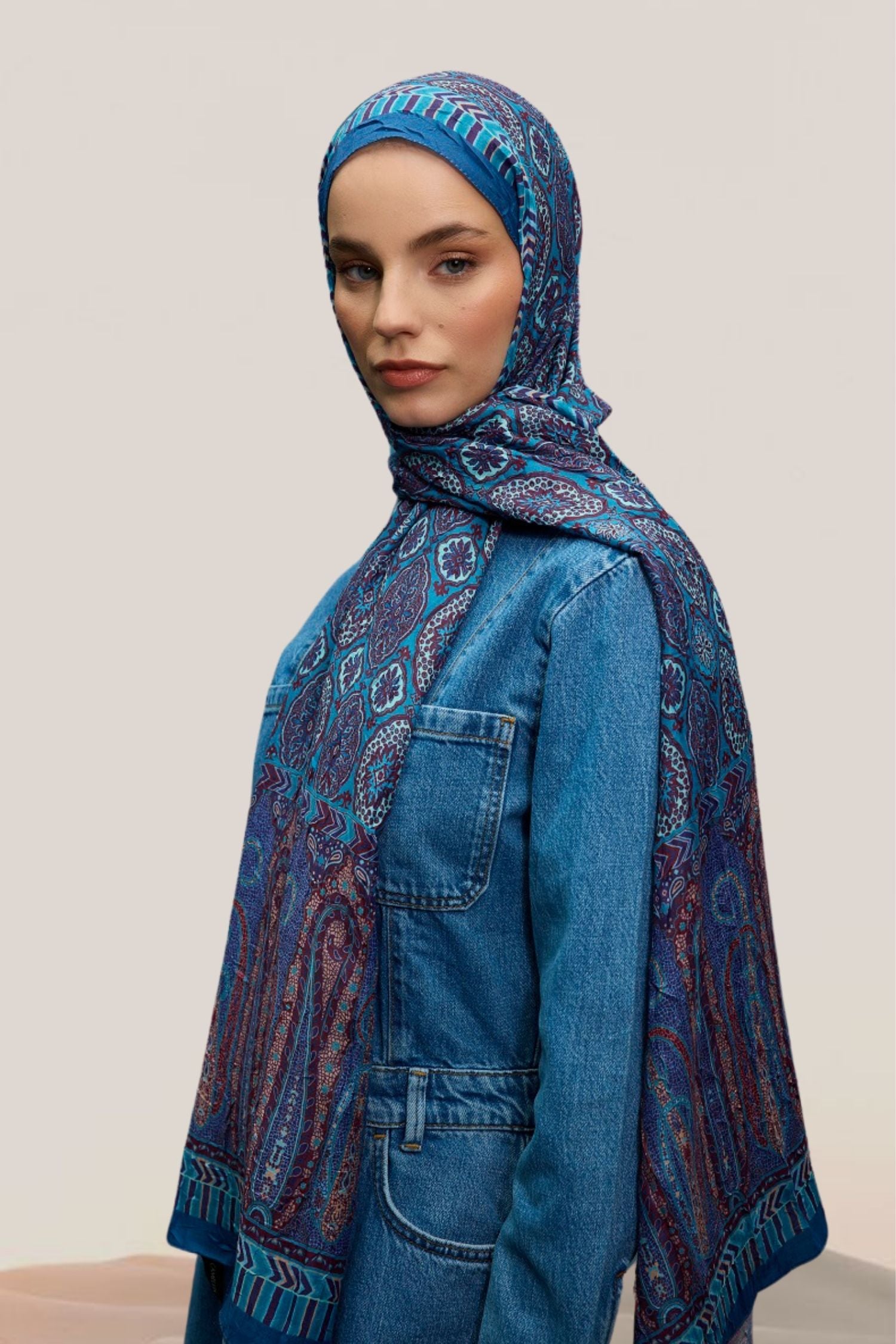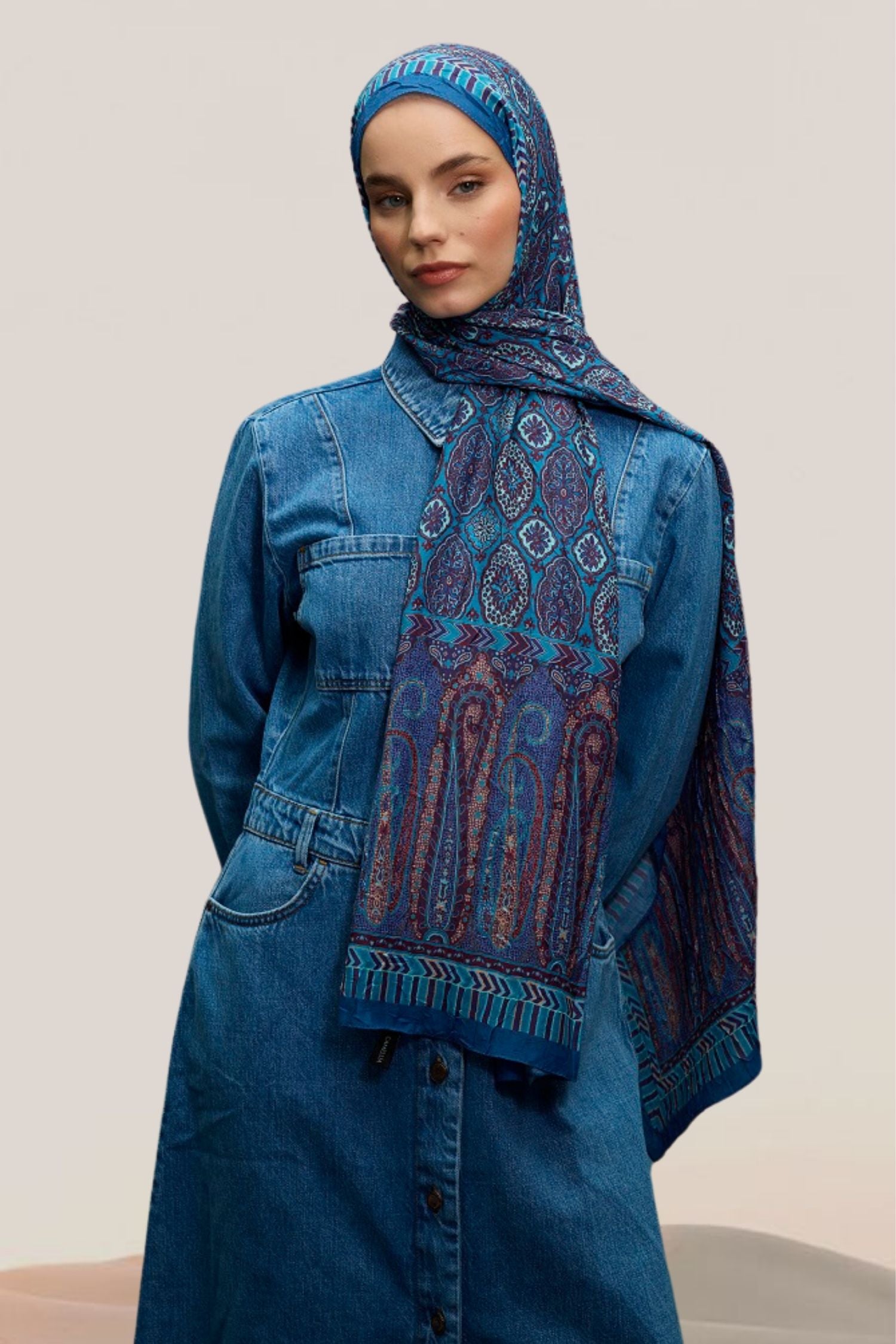 Etnik Desen Bambu Crash Şal Mavi