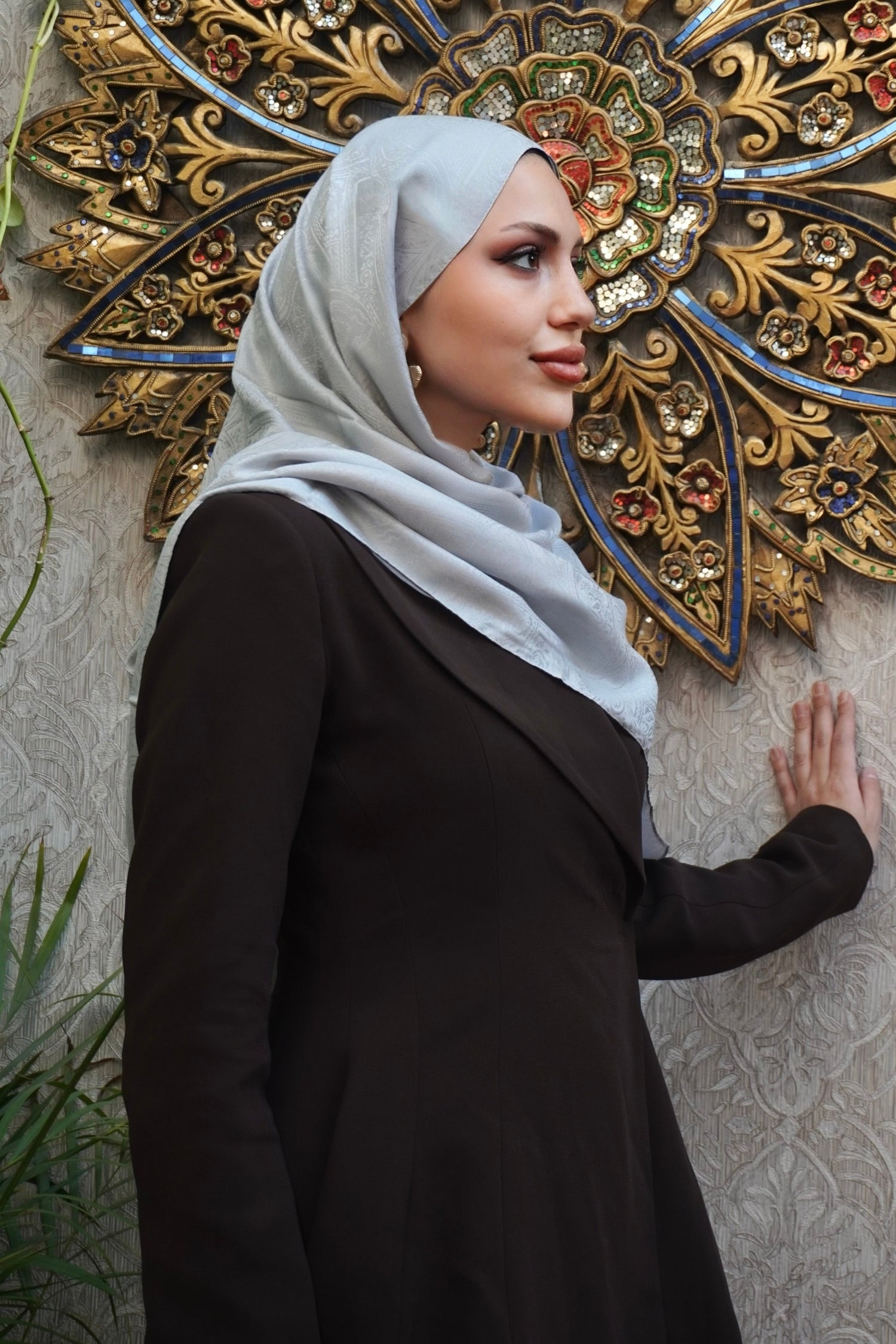 %50 floş %50 viskon (doğal elyaf) içeriği sayesinde yumuşak, dökümlü ve tok bir yapıya sahiptir; cildi rahatsız etmeden, kayma ve terletme yapmadan gün boyu konforlu kullanım sunar. 70x190 cm ölçüleri, tesettür kullanımında ideal örtücülük sağlarken, boyunda aksesuar olarak kullanıldığında da dengeli ve şık bir duruş verir. Dört kenarı İtalyan dikişli olan bu model, ince işçiliğiyle daha özenli ve kaliteli bir görünüm kazandırır. Dört mevsim kullanıma uygun ve ütü gerektirmeyen formuyla pratik, şık ve fonksiyonel bir gümüş gri şal alternatifi sunar.