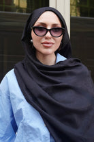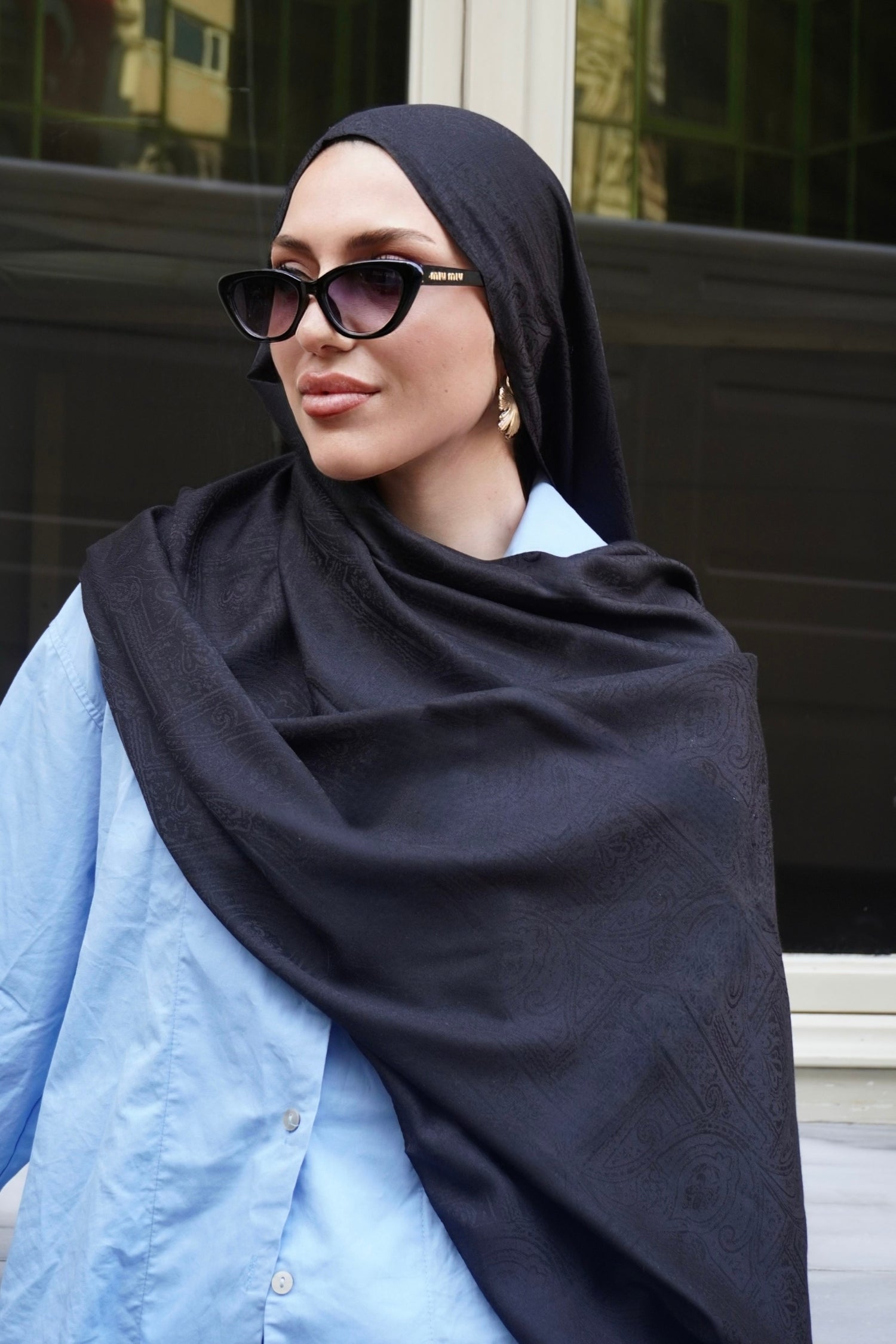 70x190 cm ölçüleriyle baş ve boyun kullanımında ideal boydadır; tesettür kullanımında güzel örtücülük sağlarken, boyunda aksesuar olarak da şık bir tamamlayıcı olur. Dört kenarı İtalyan dikişli olan bu şal, ince işçiliği ve temiz bitişiyle daha özenli ve kaliteli bir görünüm sunar. Dört mevsim kullanıma uygun yapısıyla yaz-kış gardıropta yerini alabilecek zamansız bir siyah şal alternatifi oluşturur.