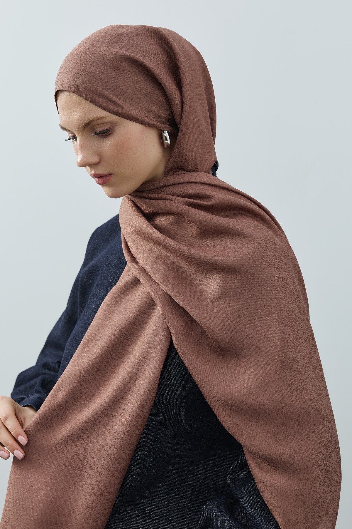 Fern Monogram Desen Şal Çikolata Kahve