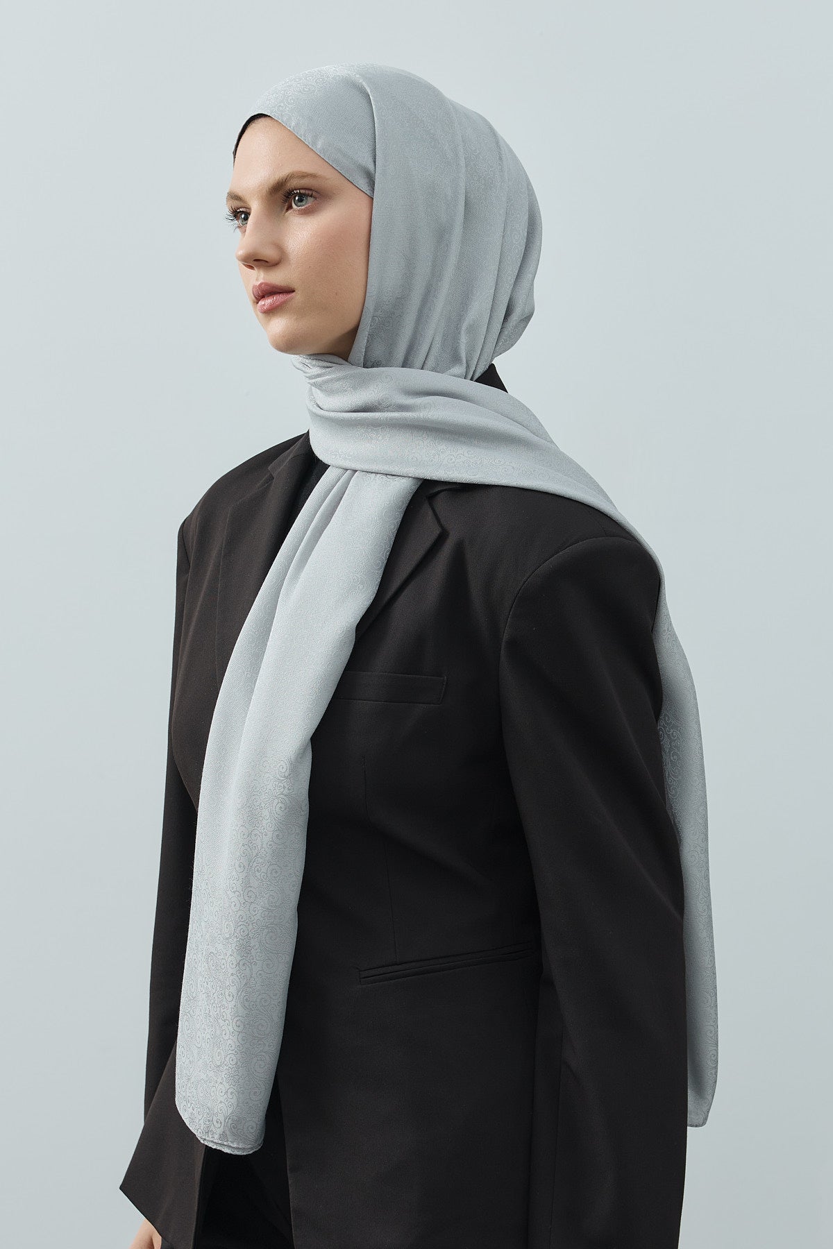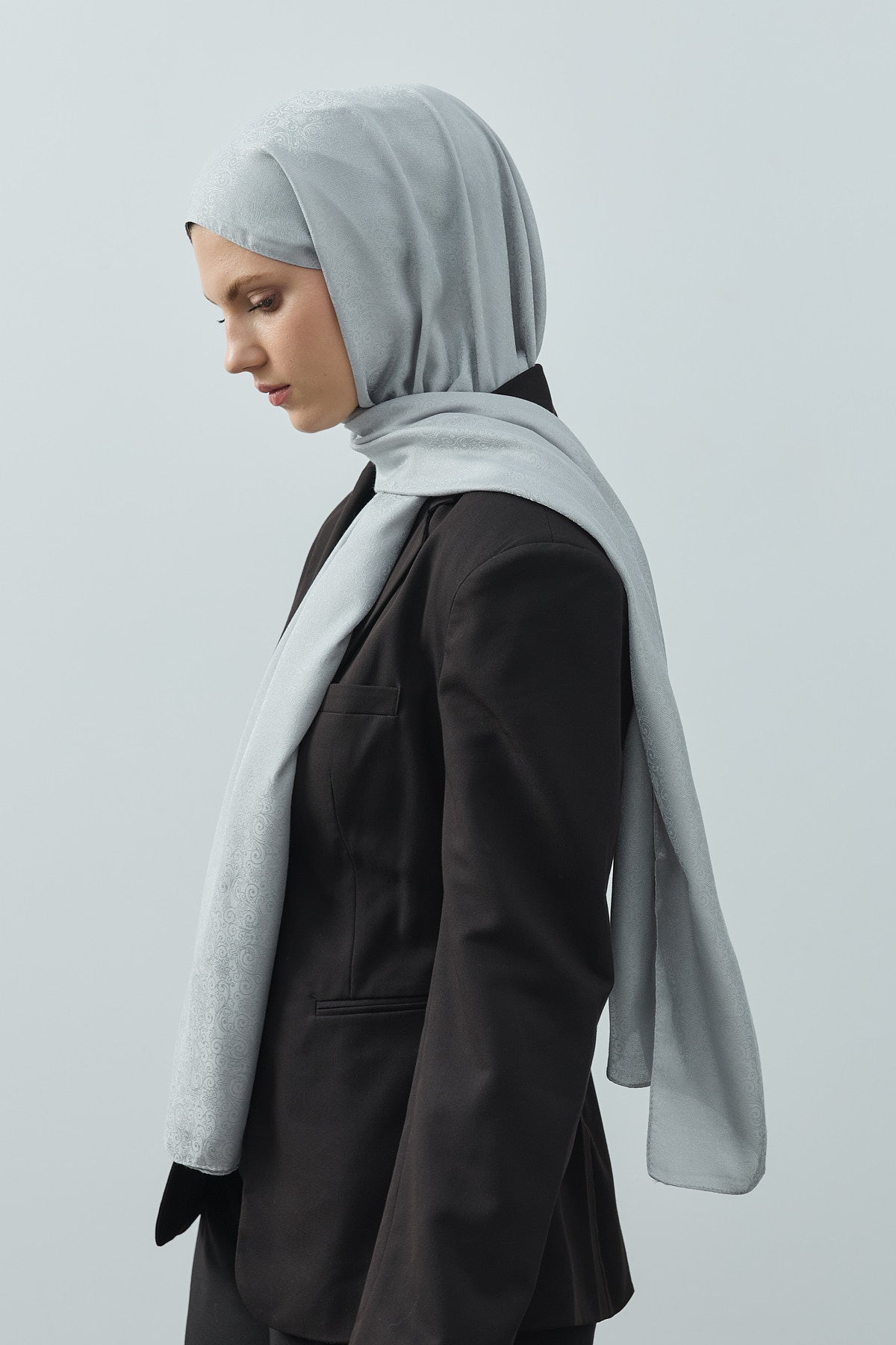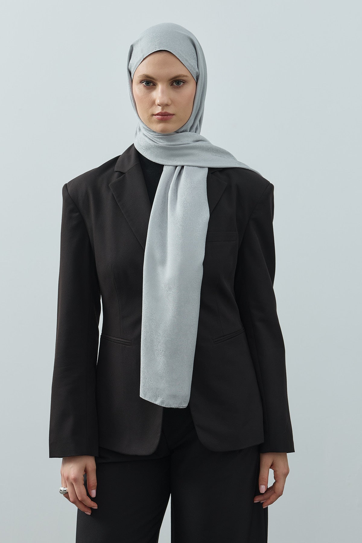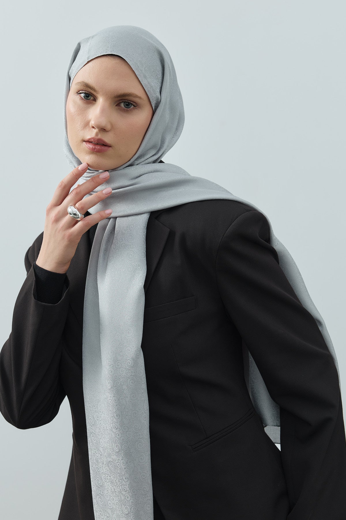 Fern Monogram Desen Şal Gümüş Gri