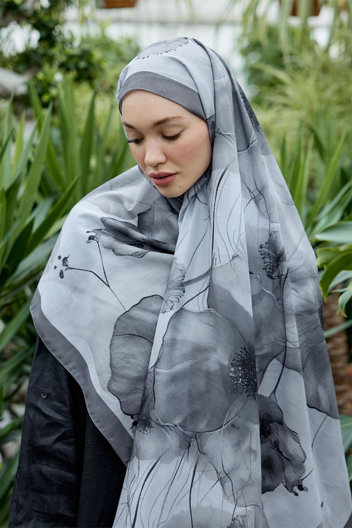 Garden Bloom Desen Şal – Gri, şehirli şıklığın zarif ifadesiyle doğayı birleştiriyor. Gri tonu ve çiçek desenleriyle, bu şal hem minimal hem dikkat çekici bir stil yaratmak isteyenler için ideal.