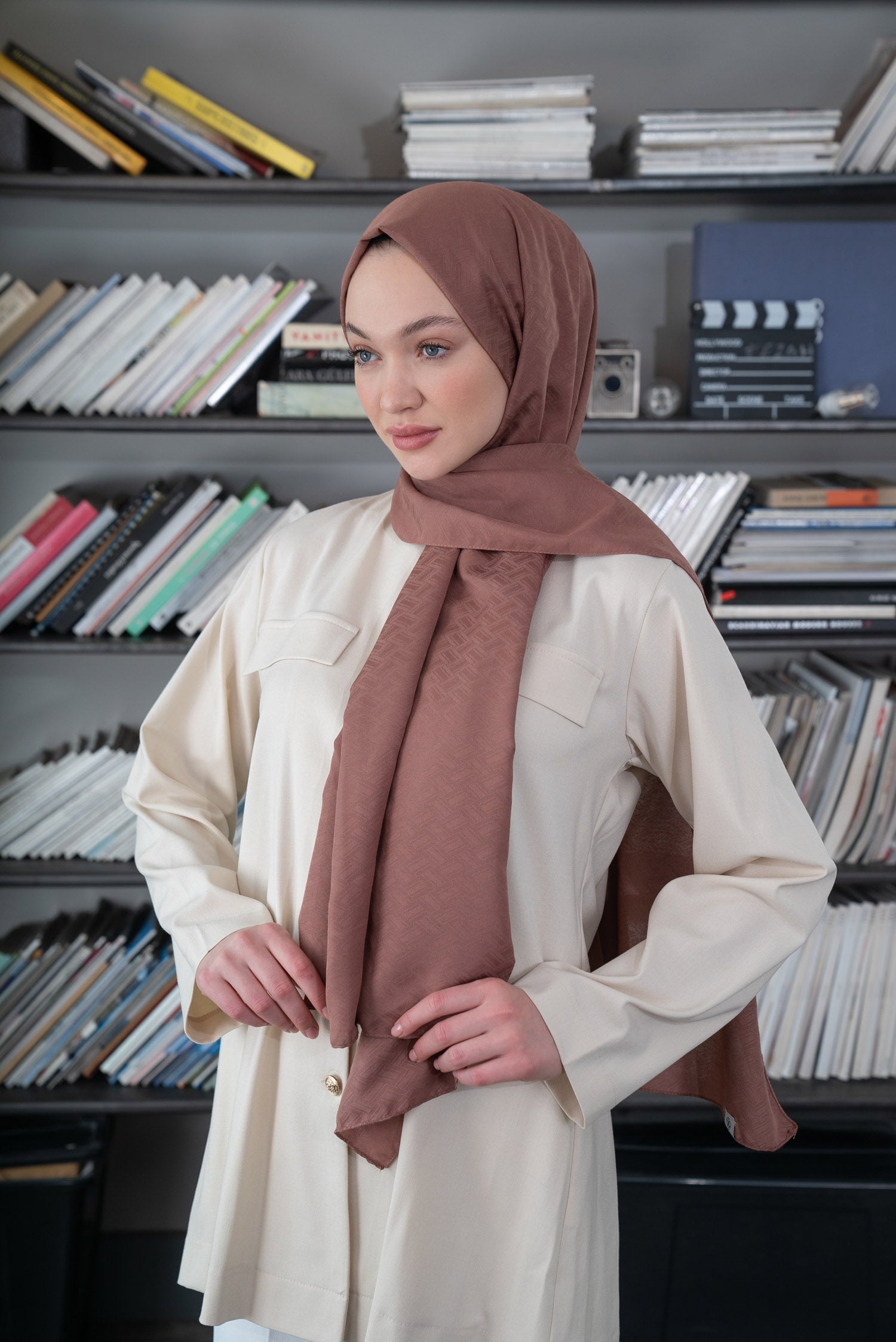 Geometrik Desen Pamuk Jakar Şal Gülkurusu